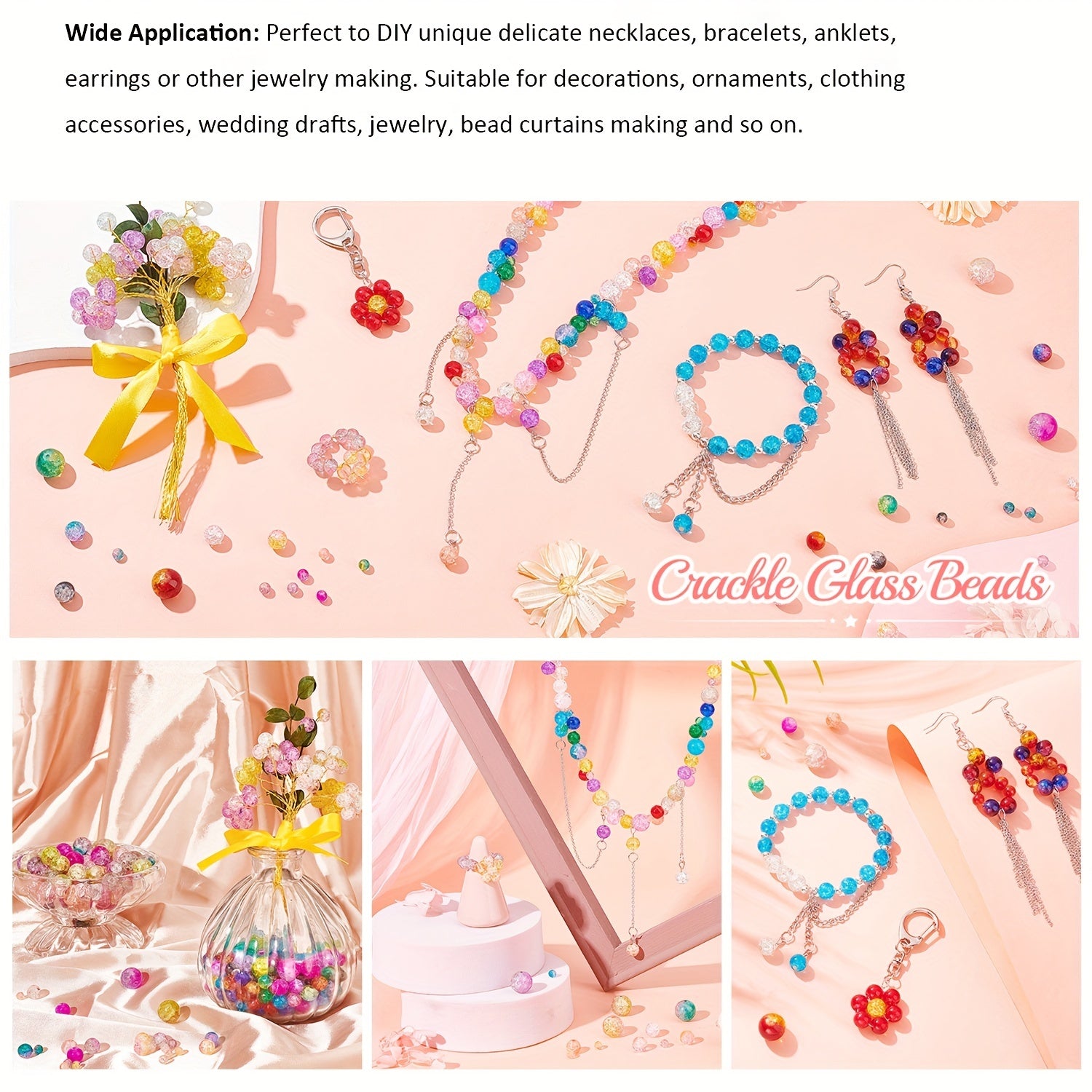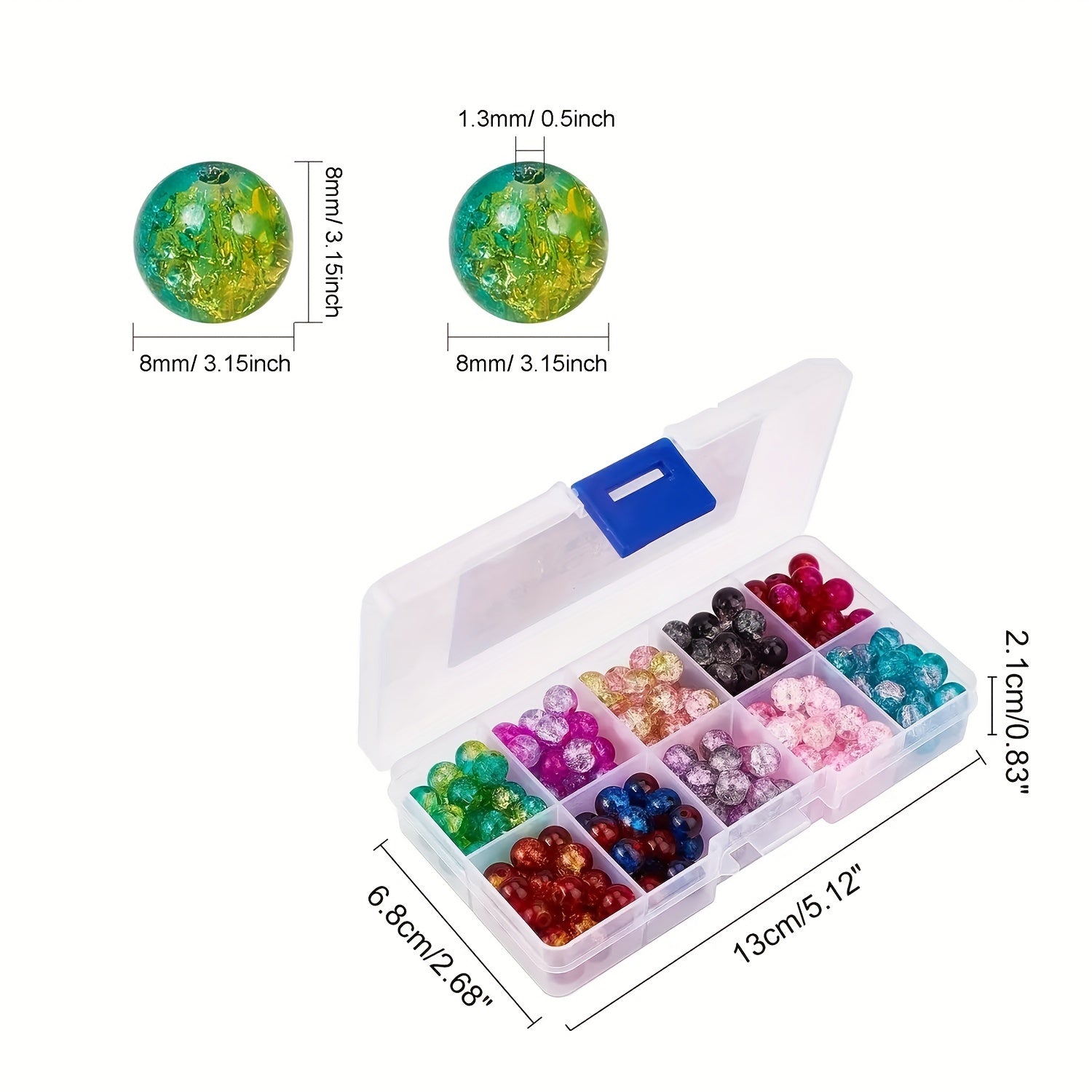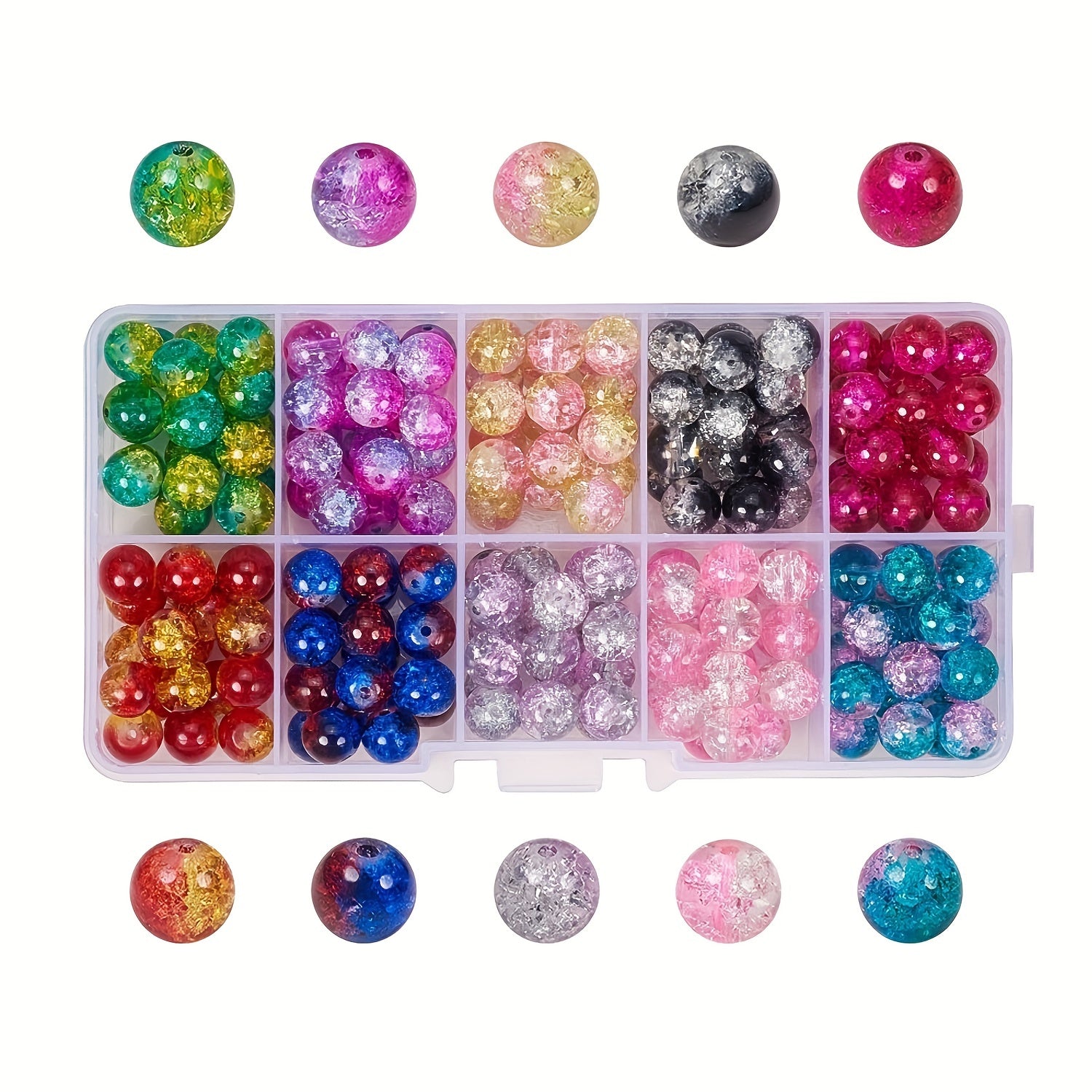 These loose crackle beads are perfect for creating unique jewelry pieces. Each pack contains 200 beads in 8mm size and come in 10 different vibrant colors.