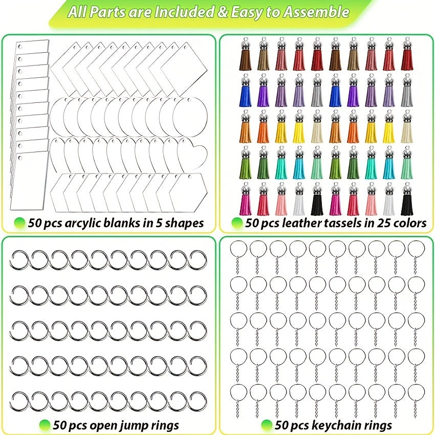 Create your own unique keychains with these acrylic blank keychains. Each keychain comes with a colorful leather tassel for added flair. Perfect for parties and DIY projects!