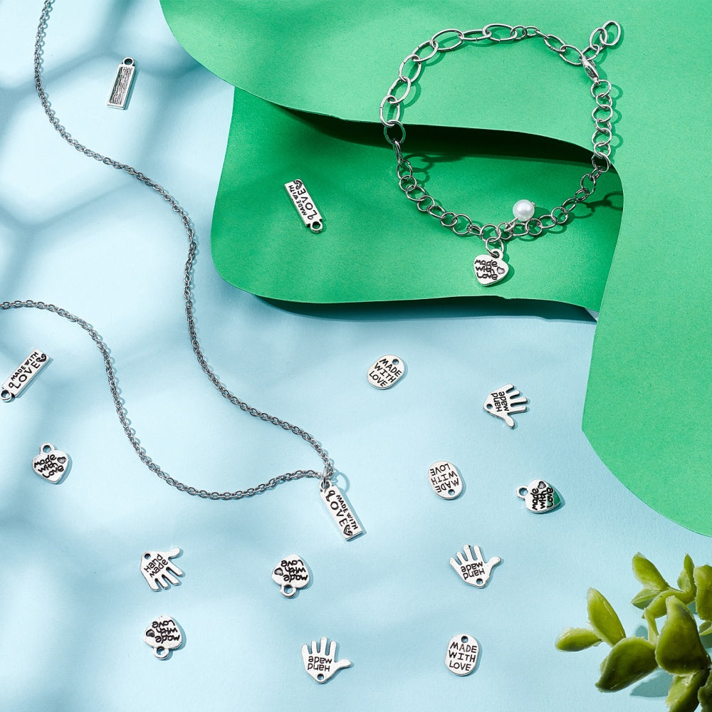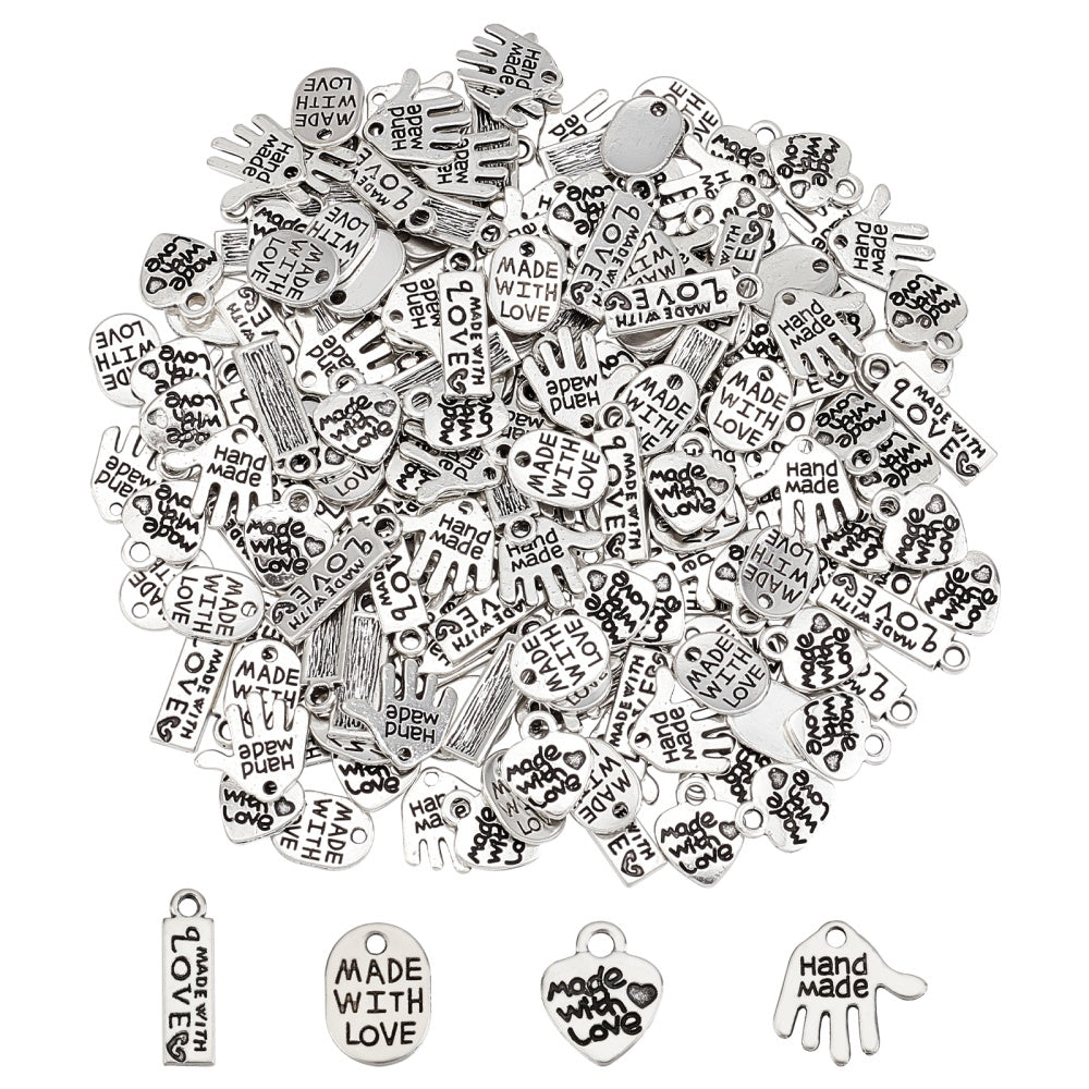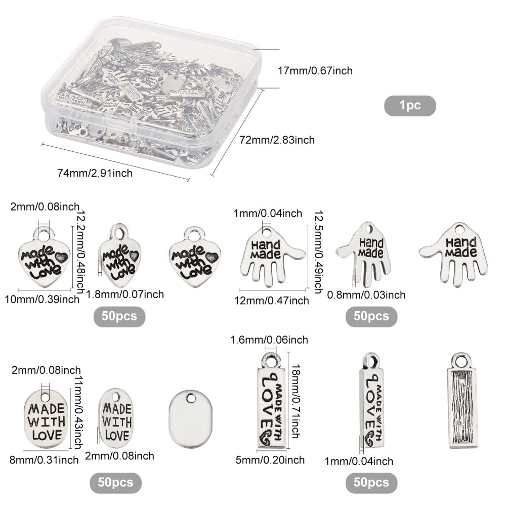 • Includes 200 charms in 4 shapes: Oval, Heart, Rectangle, Hand