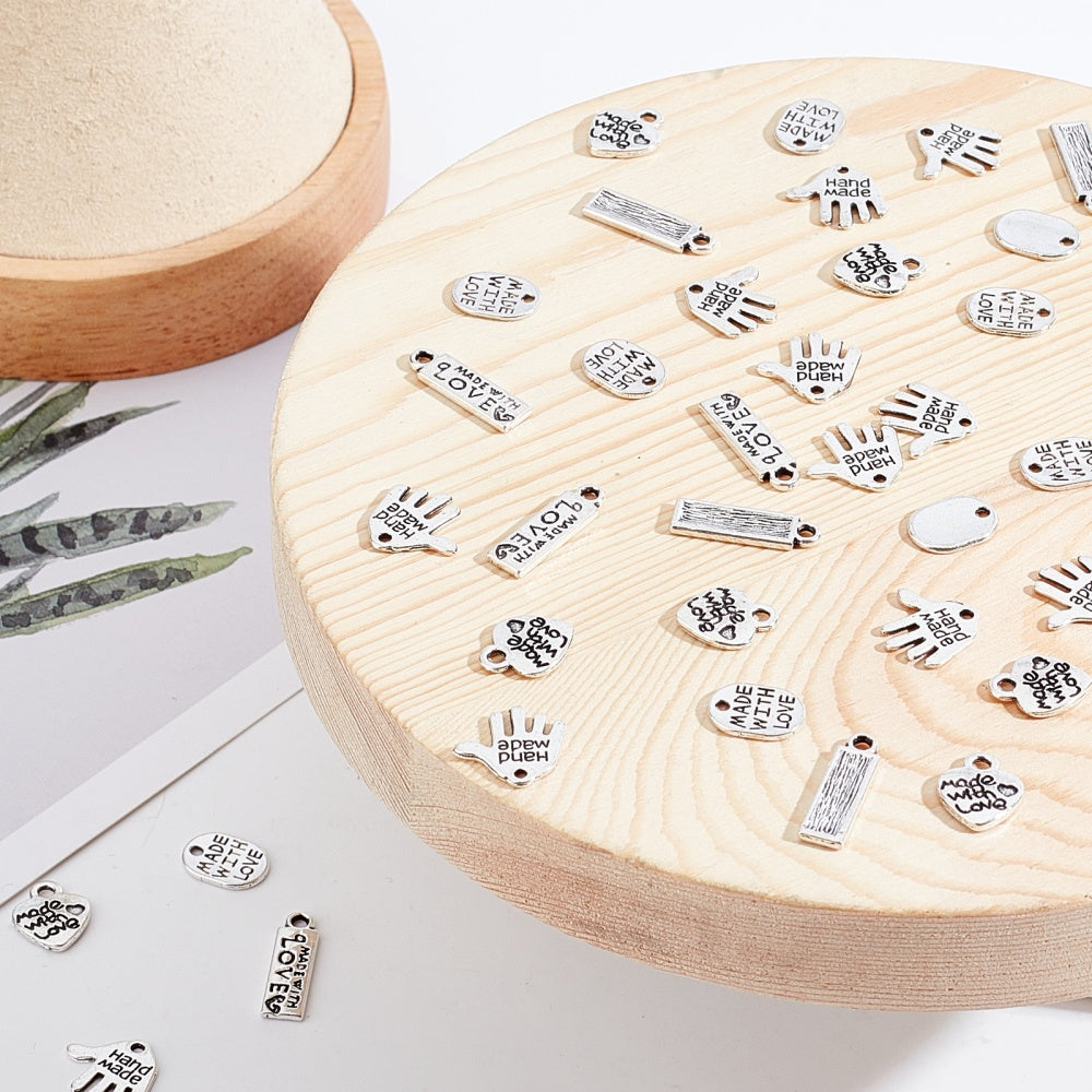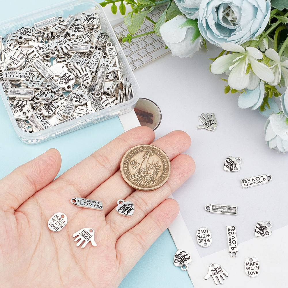 200Pcs Antique Silvery Letters Charms Pendants for DIY Jewelry Making