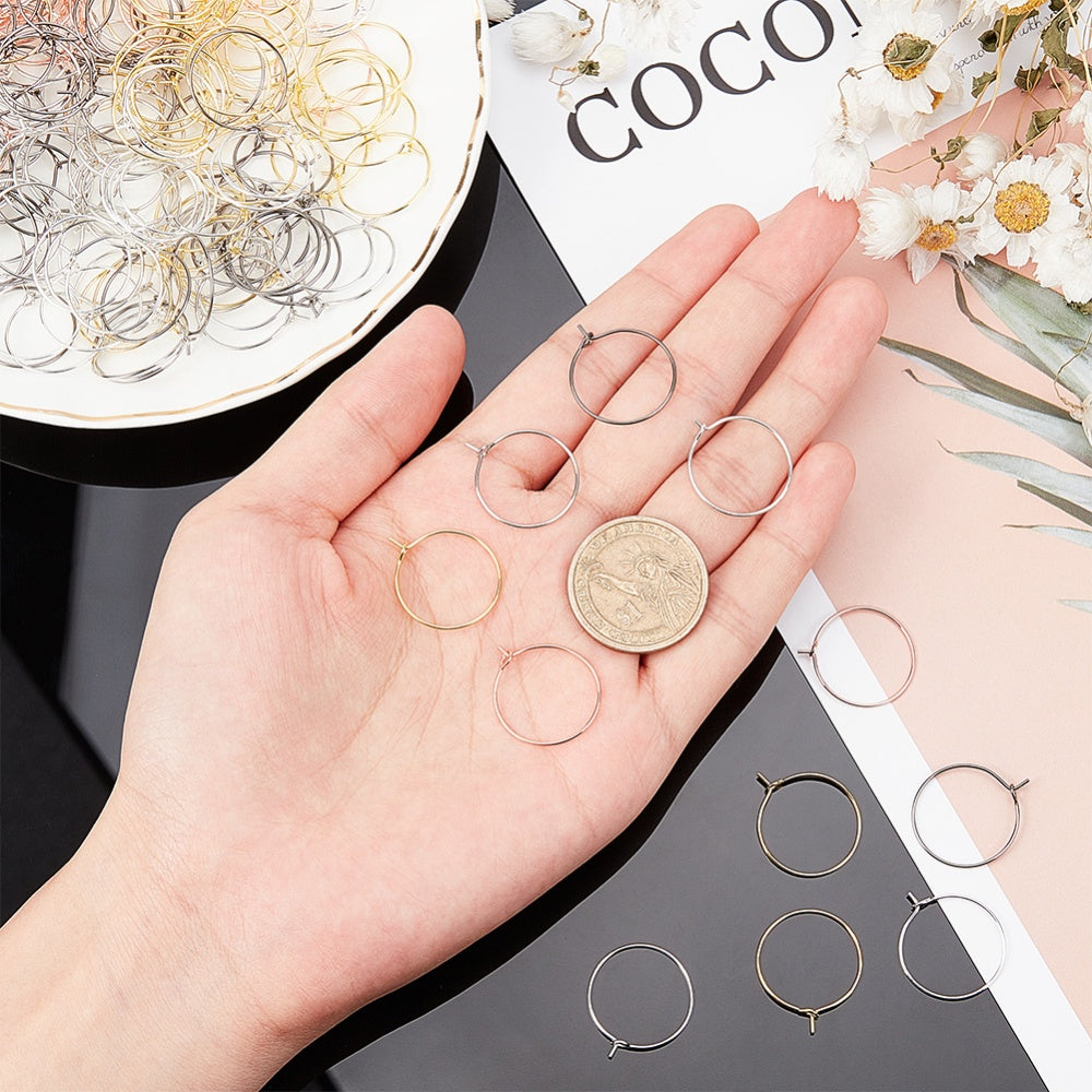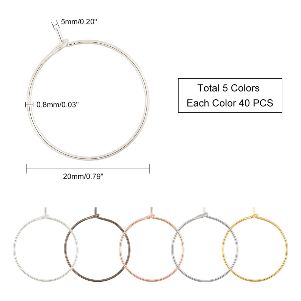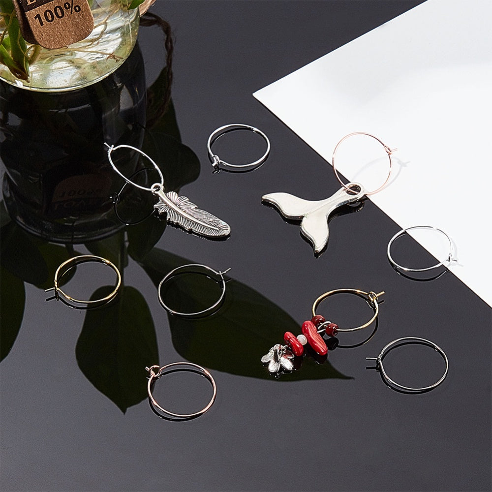 This pack includes 200 pieces of brass wine glass charm rings that can be used as hoop earrings findings. The rings come in assorted plating colors for added variety.