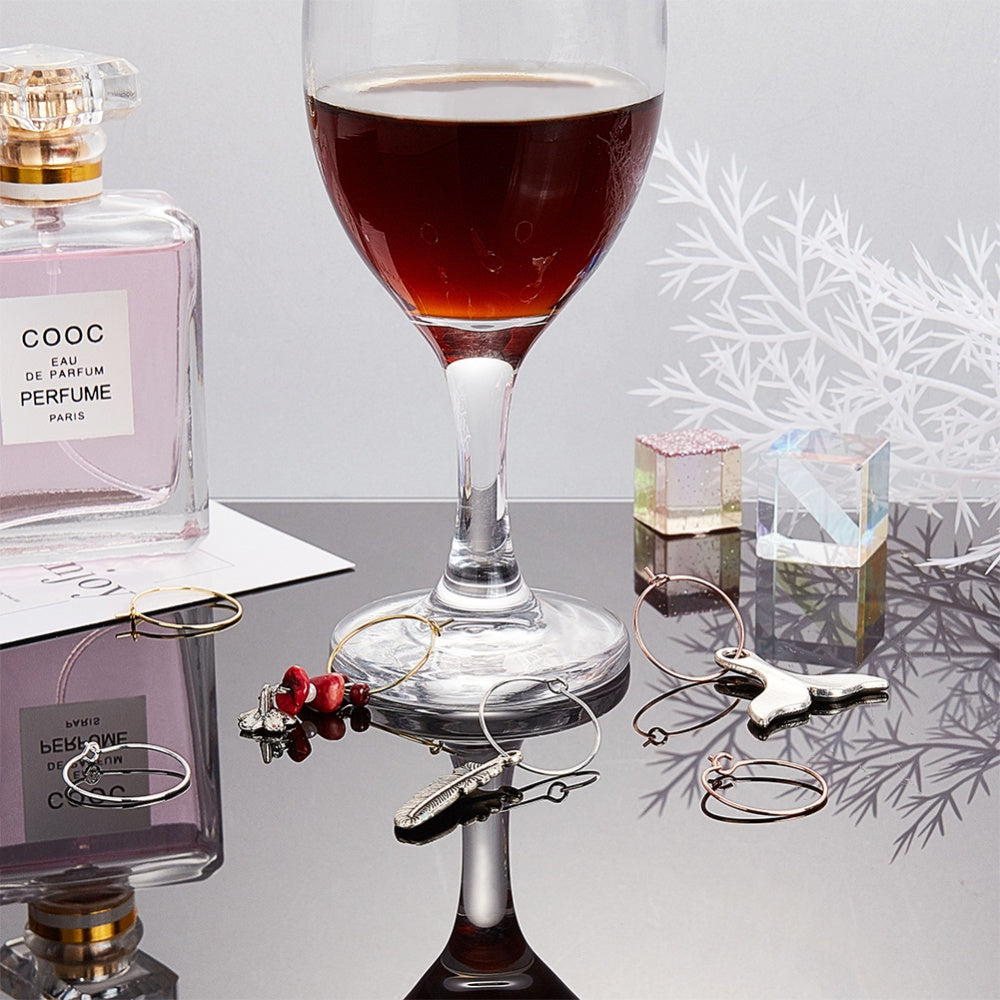 200pcs Brass Wine Glass Charm Rings Hoop Earrings Findings Assorted Plating Bead