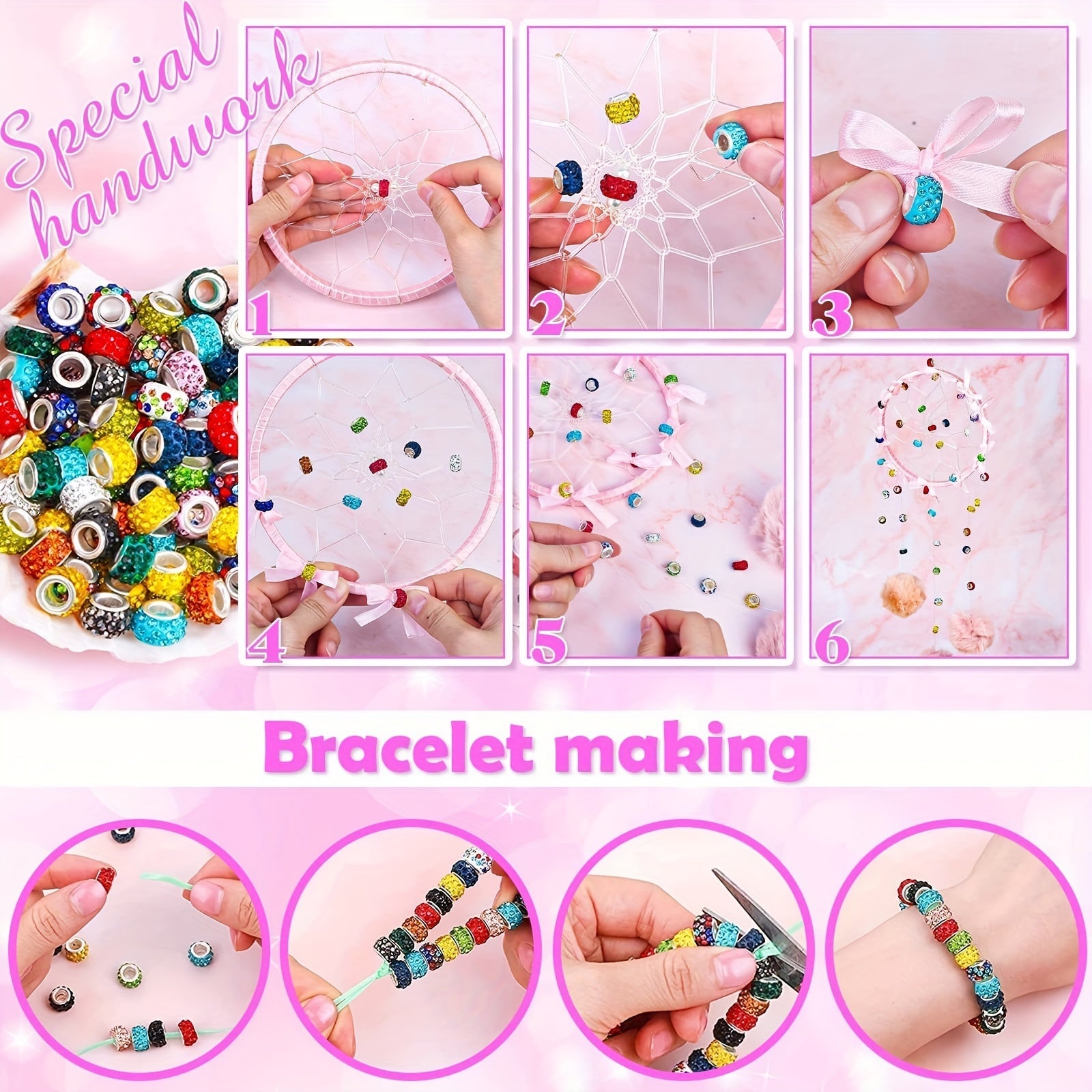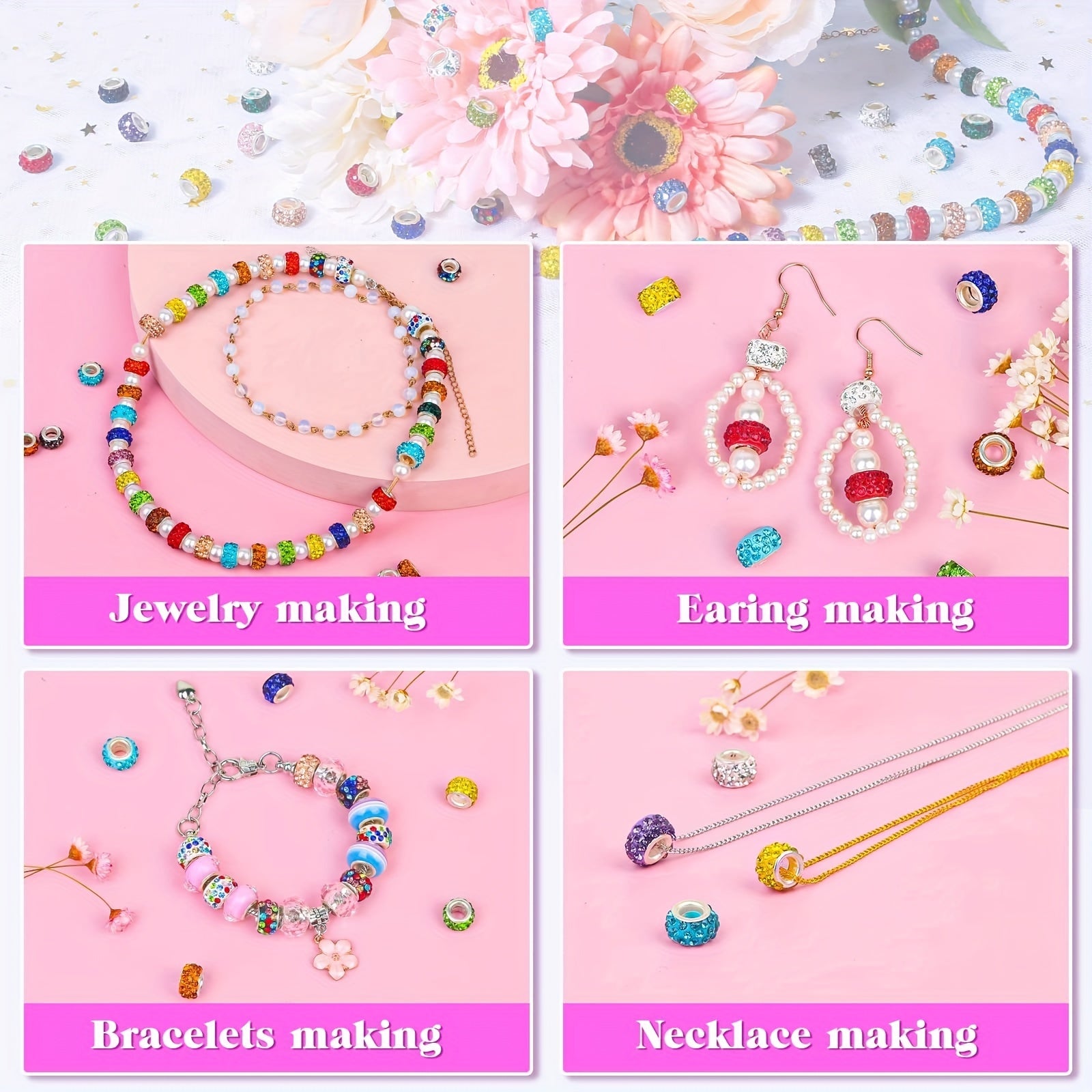 Get this set of 200 large hole beads with mixed rhinestone charms for your DIY jewelry making projects. Perfect for bracelets, necklaces, and earrings.