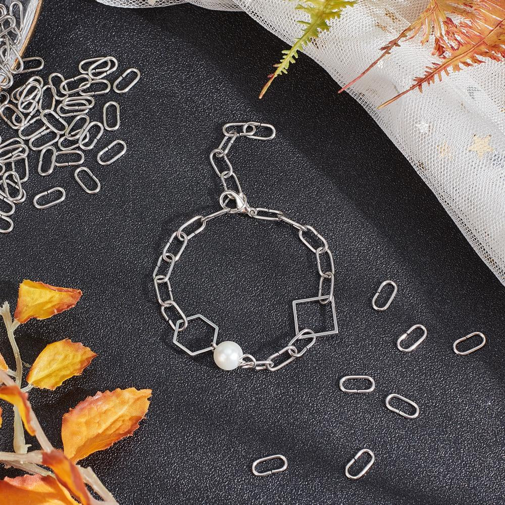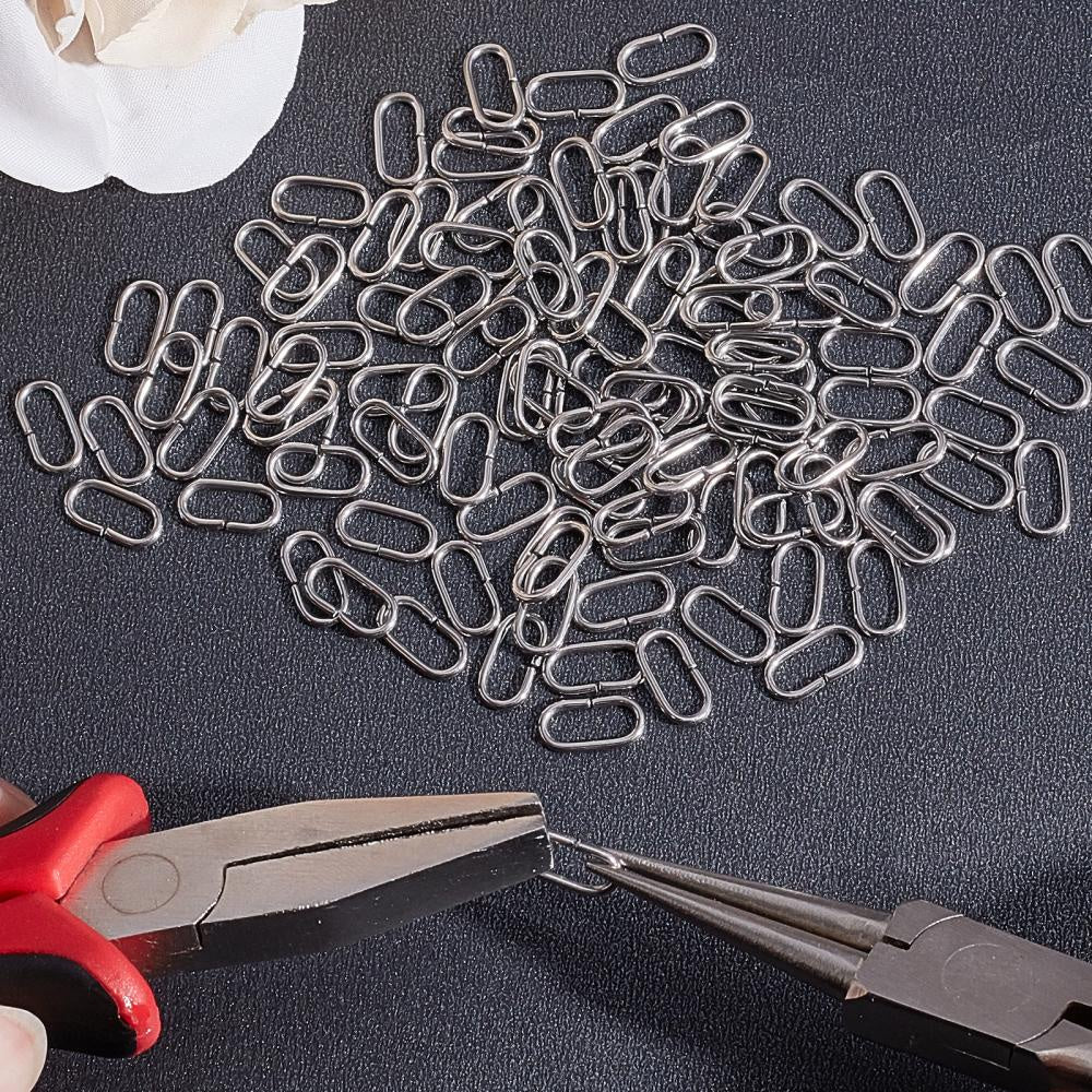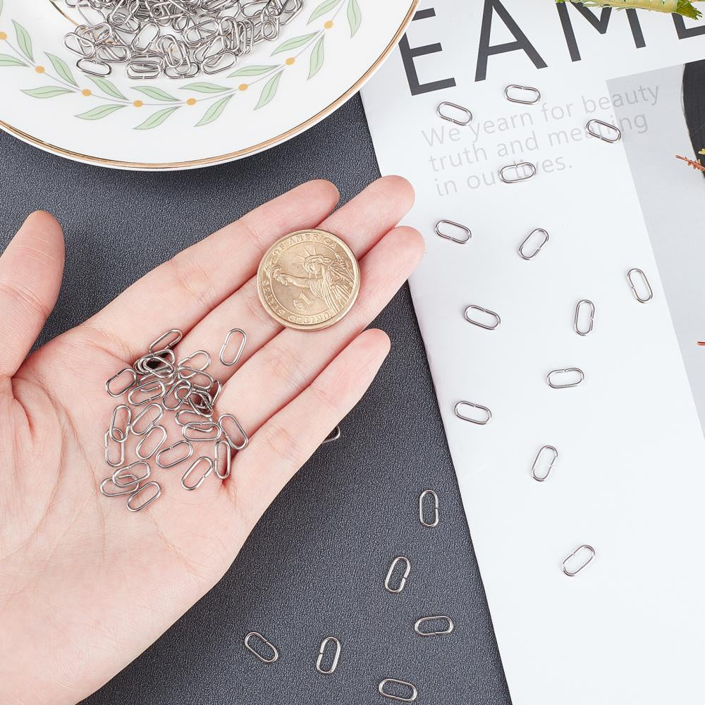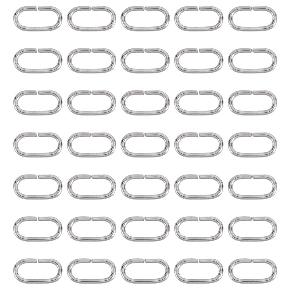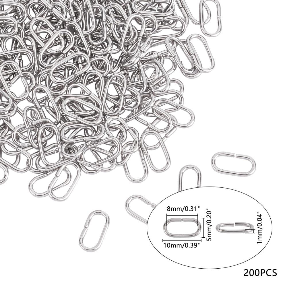 This pack includes 200 oval linking rings made of stainless steel. Perfect for connecting jewelry pieces. Each ring measures 10x5x1mm.