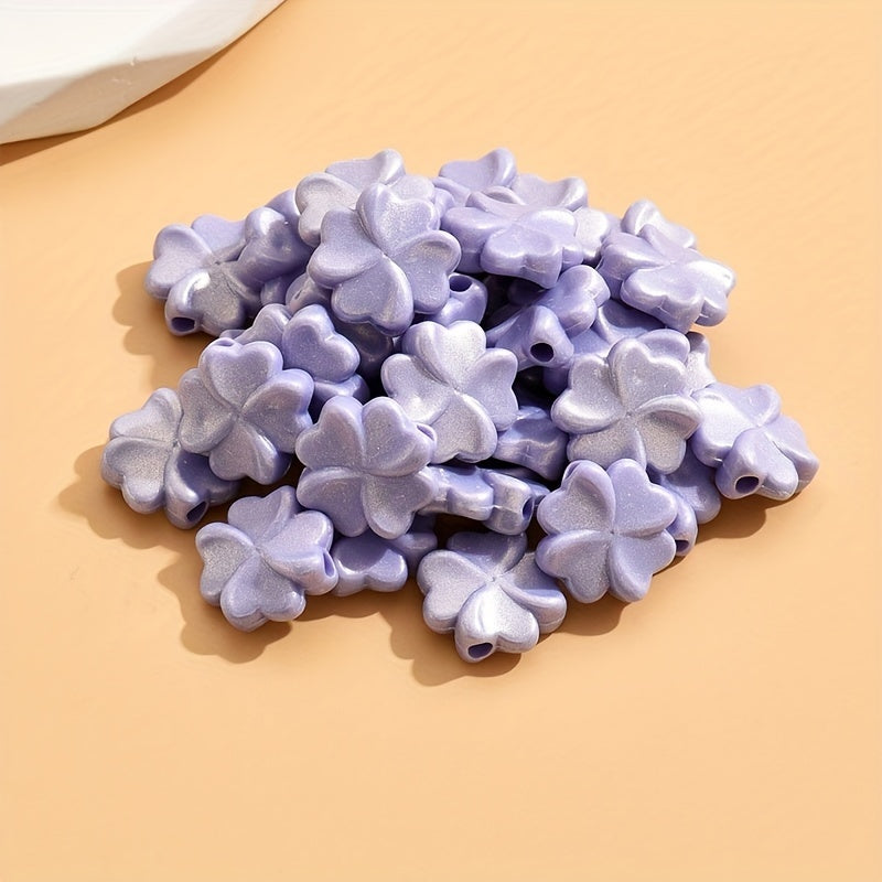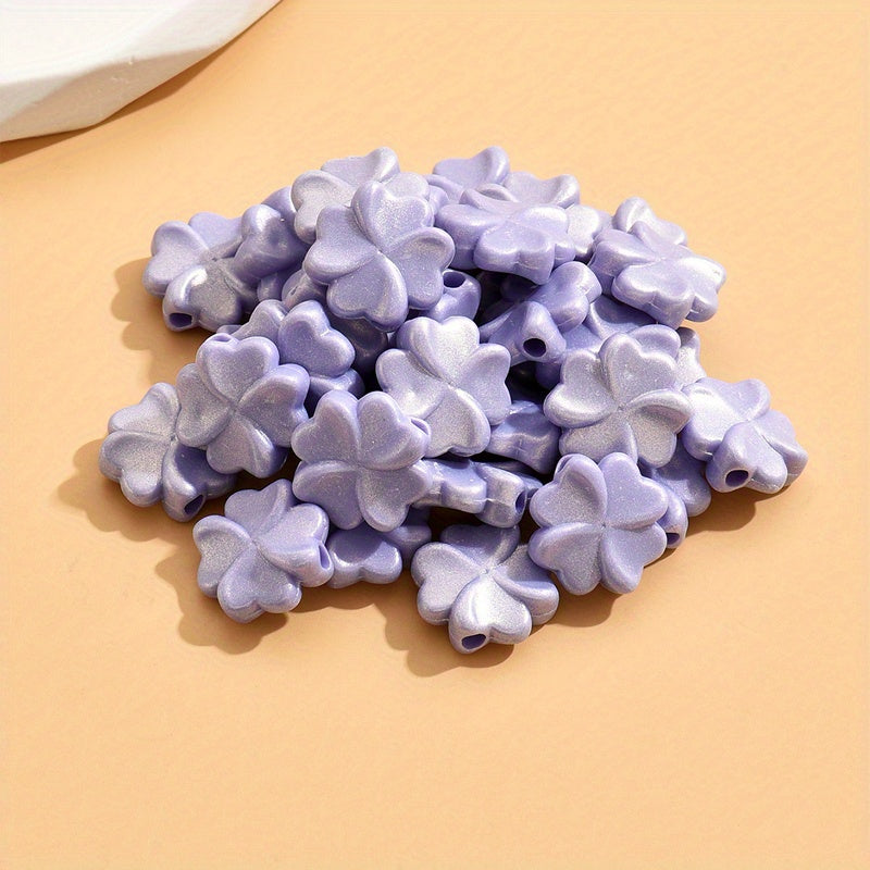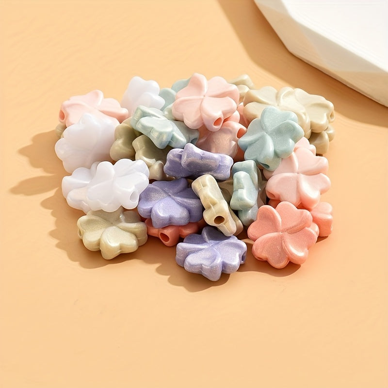 Enhance your creativity with this pack of colorful acrylic beads in lucky clover shapes. Perfect for crafting unique jewelry pieces.