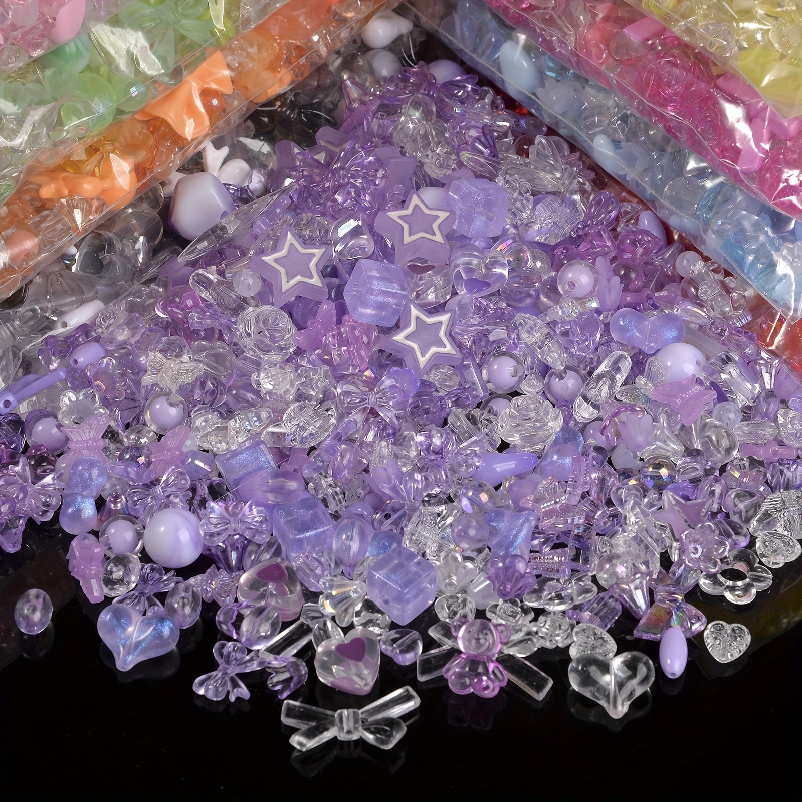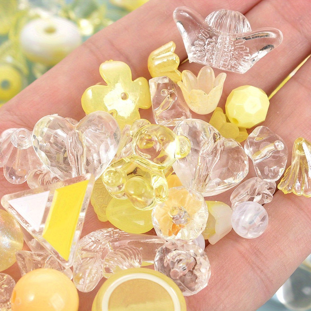 Create beautiful jewelry with this 20g pack of mixed bowknot, star, heart, and butterfly acrylic spacer beads. Perfect for making bracelets and other accessories.