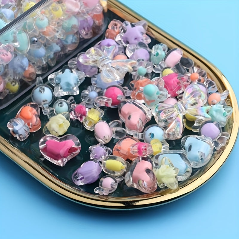 This 20g pack of mixed transparent frosted plating AB acrylic star, heart, and flower beads is perfect for creating unique jewelry pieces. Use these beads to add a touch of sparkle and color to your DIY projects.