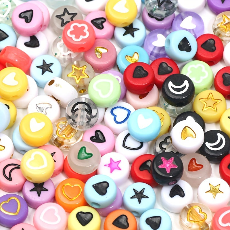 Create your own unique jewelry with this set of mixed letter, star, and moon acrylic beads. Perfect for making bracelets, necklaces, mobile phone chains, and more!