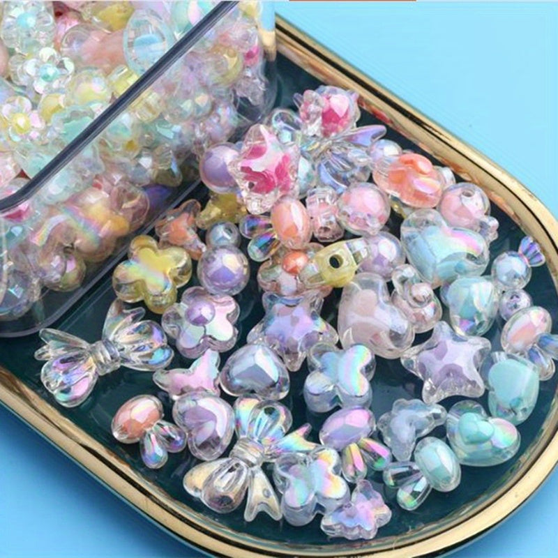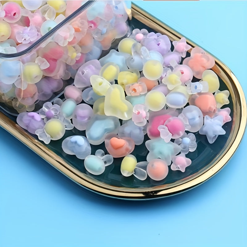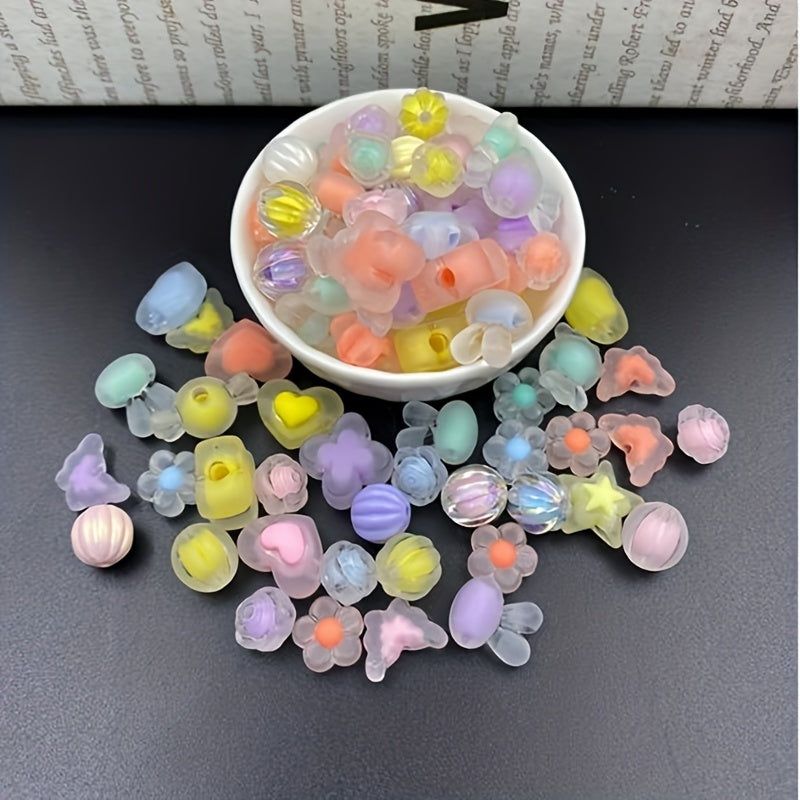 Create unique DIY jewelry with this 20g pack of mixed style acrylic beads. The transparent, frosted, colorful beads feature star, love, and flower designs perfect for bracelets, necklaces, and phone charms.