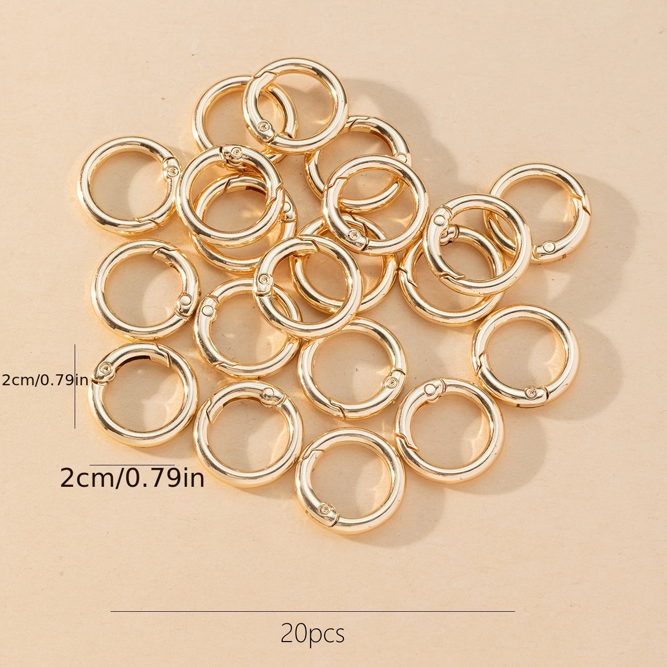 This set includes 20 pieces of environmentally friendly 20mm spring ring round buckles for various hanging applications.