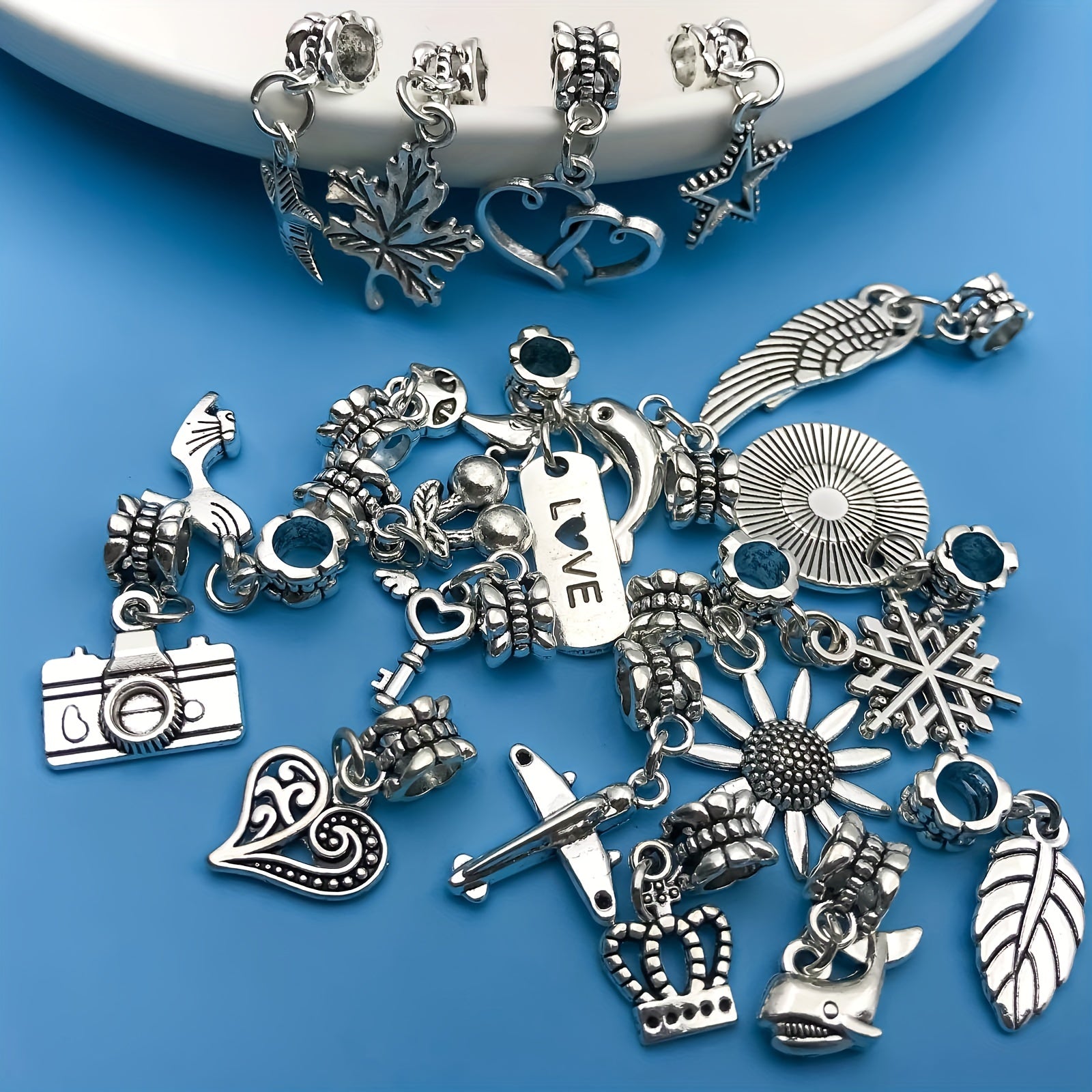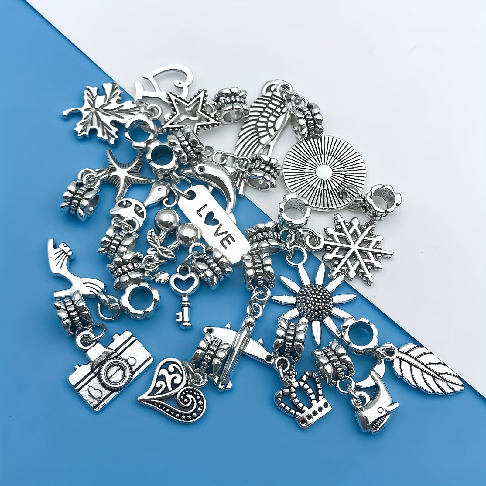 Create your own unique jewelry with this set of 20 zinc alloy antique silver spacer beads in winged heart and star shapes. Perfect for DIY necklaces, bracelets, and earrings.