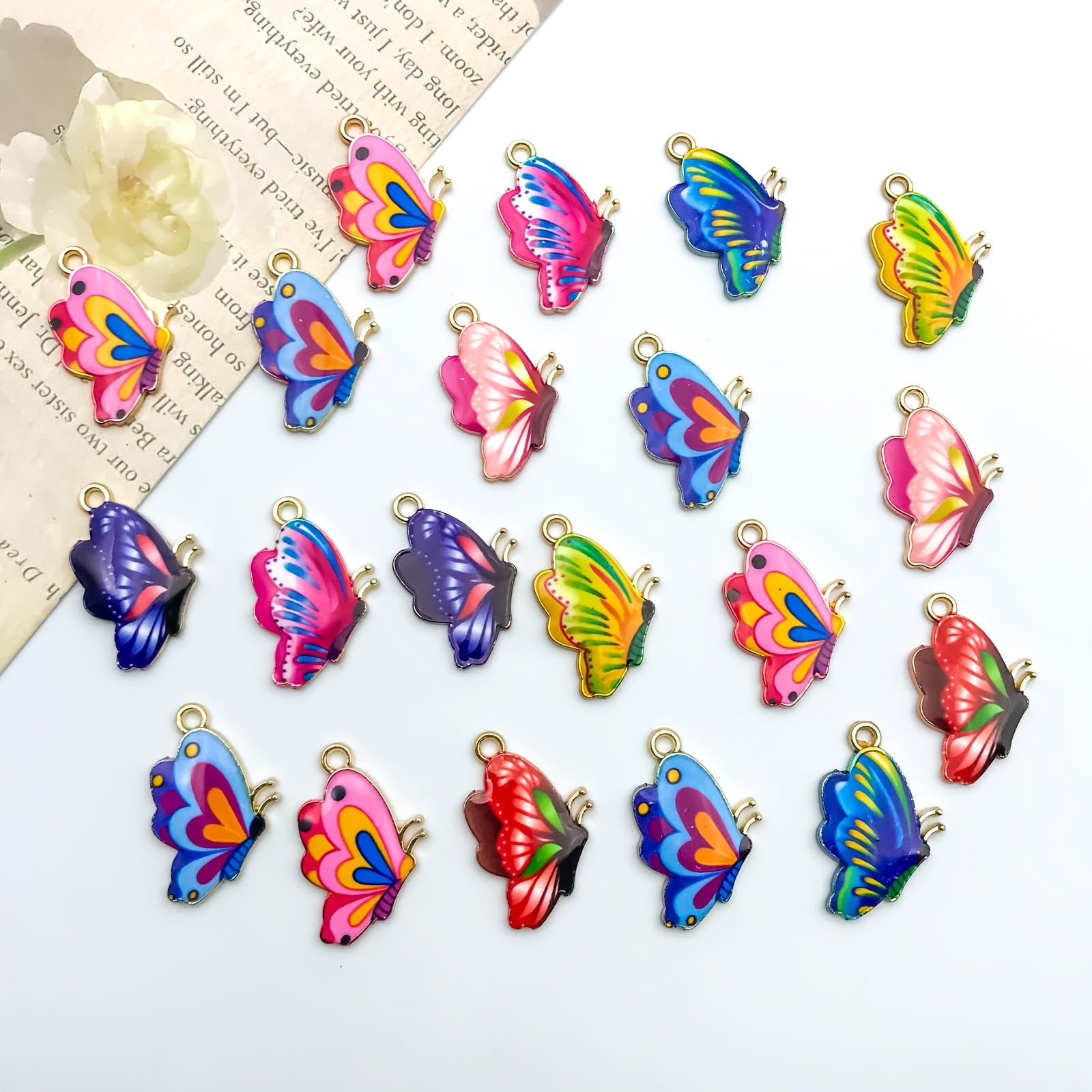 Create stunning jewelry with this set of 20 enamel dripping oil butterfly charms. Perfect for necklaces, bracelets, and earrings.