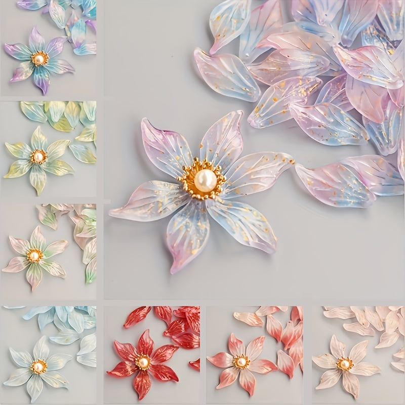 Add a touch of elegance to your decor with these colorful lily flower heads featuring faux pearls and golden sequins. Perfect for vase, wreath, or hanging floral decorations.