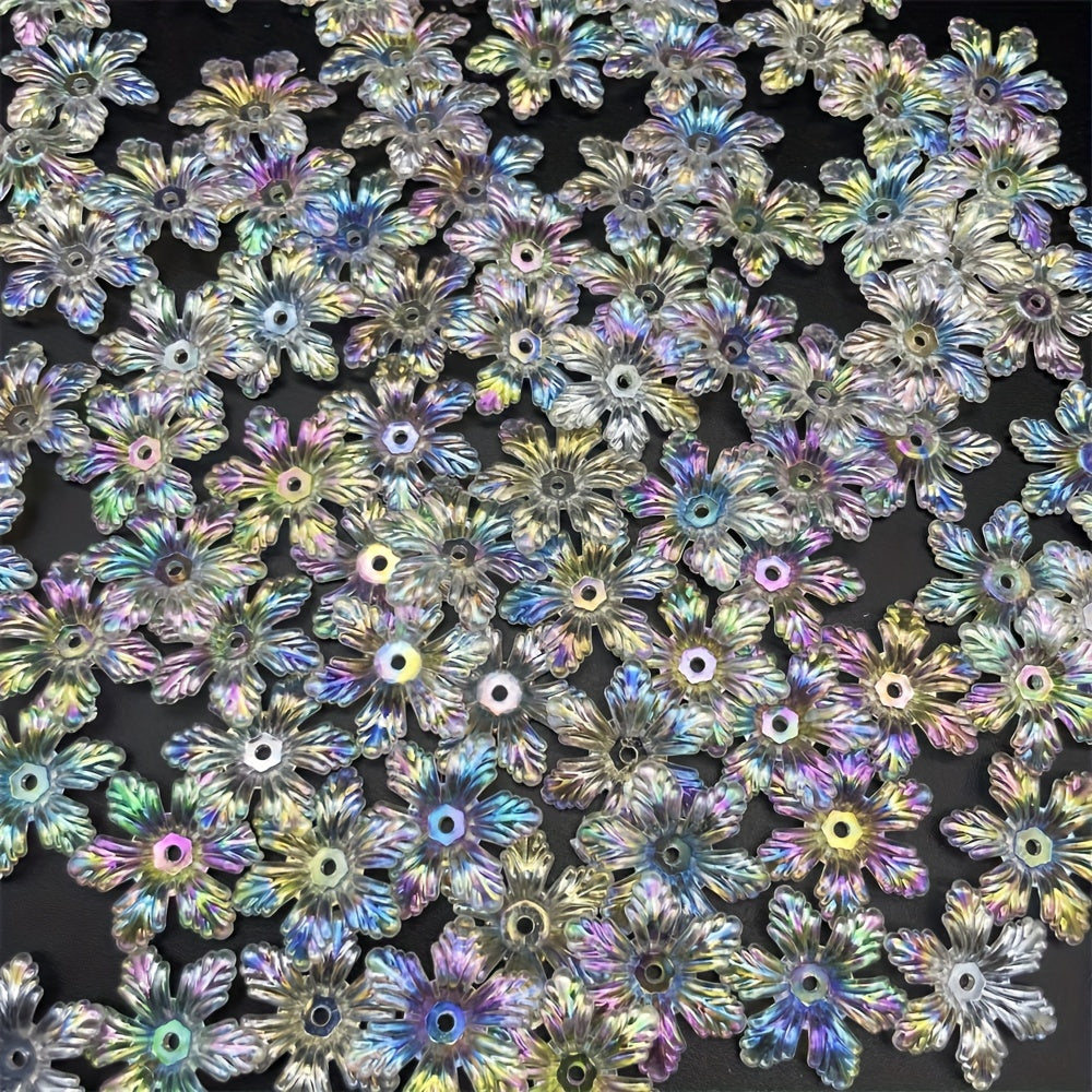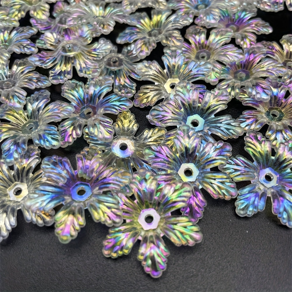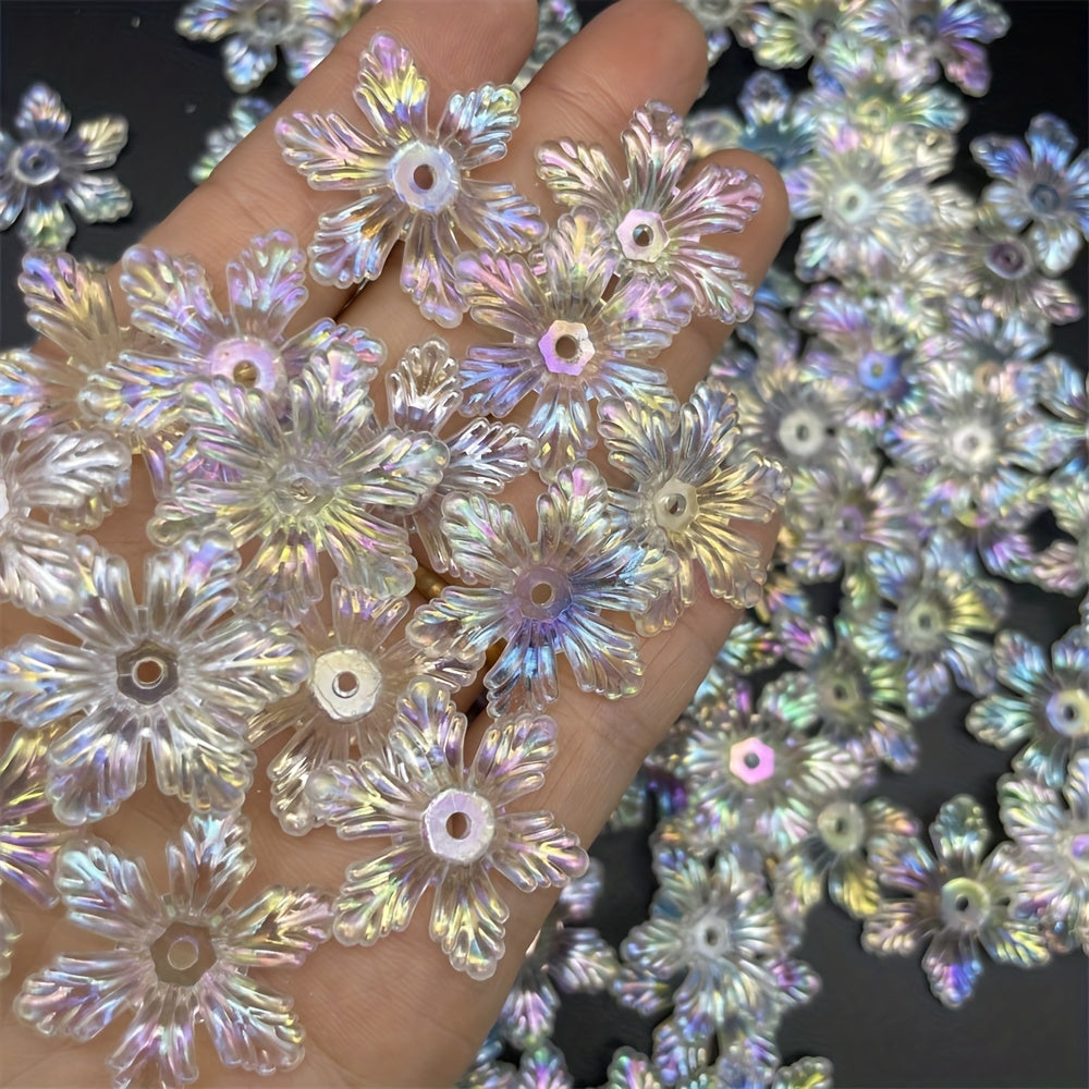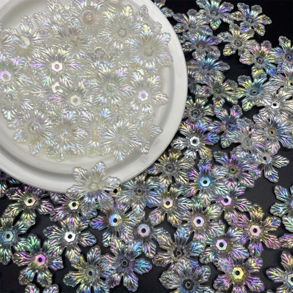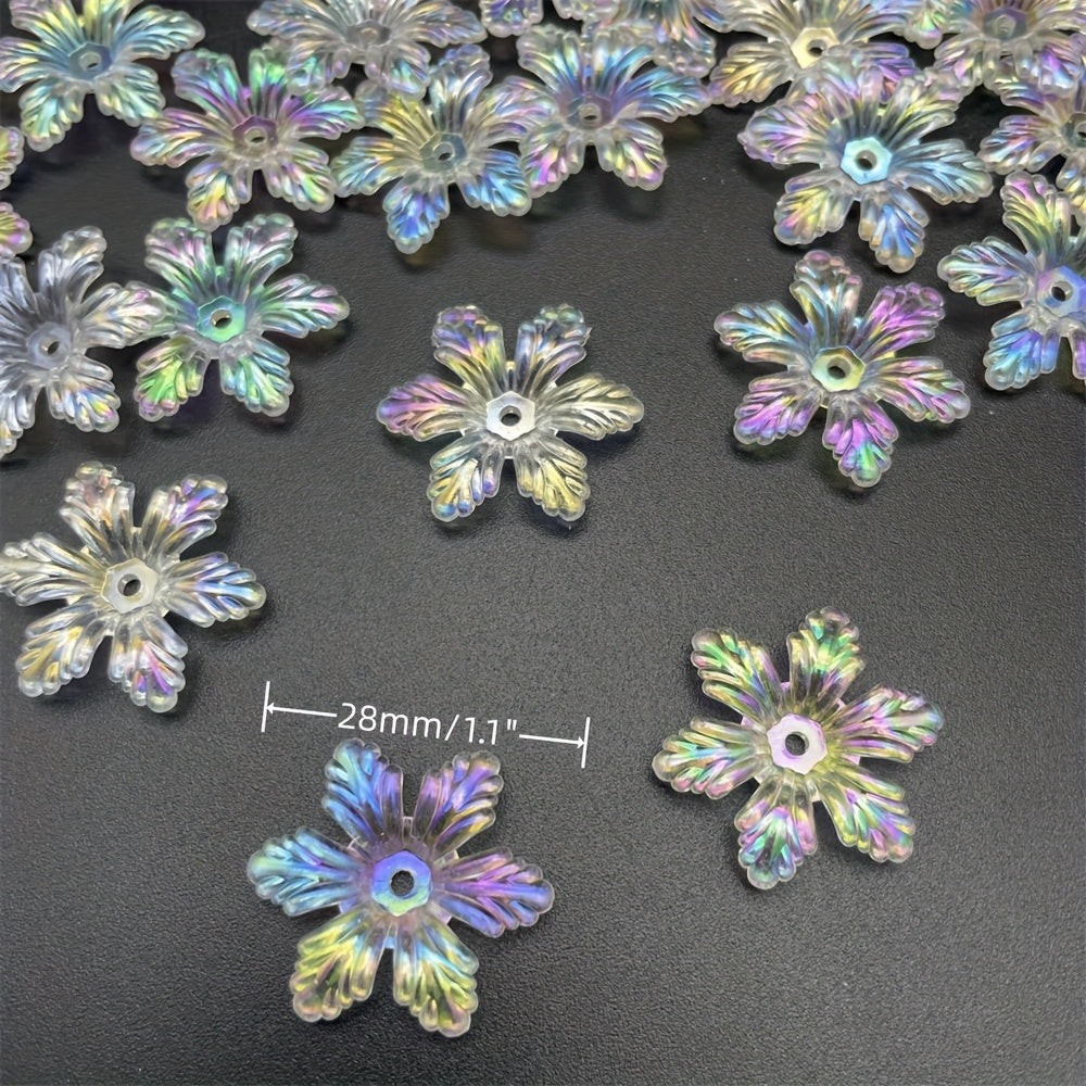 Add a touch of elegance to your jewelry pieces or clothing with these 28mm transparent flower acrylic beads. Perfect for creating earrings, bracelets, necklaces, and more.