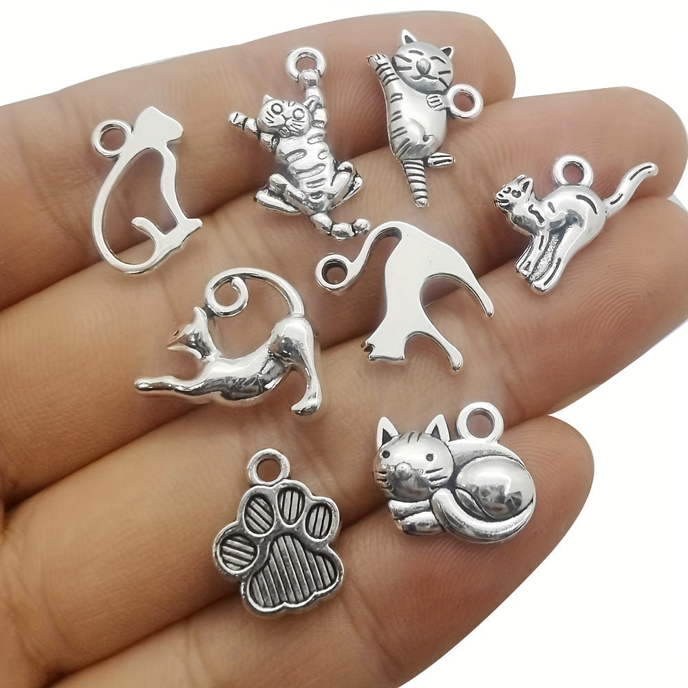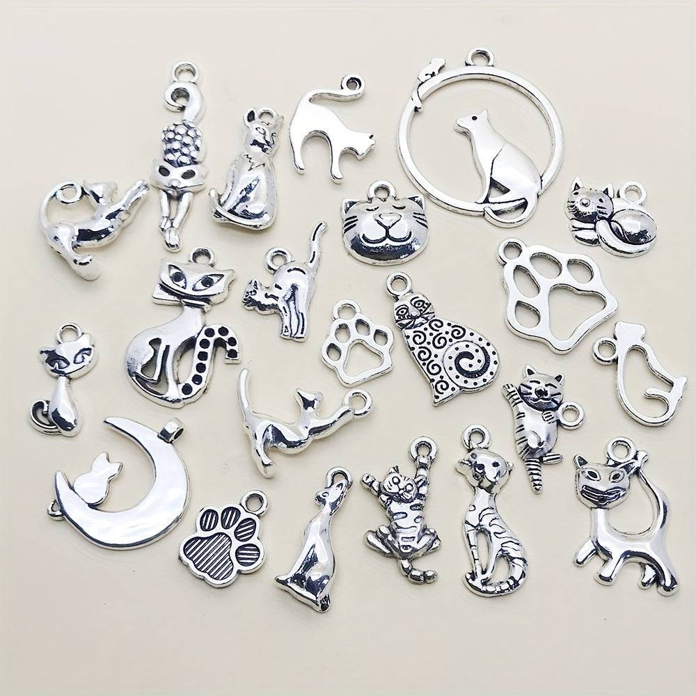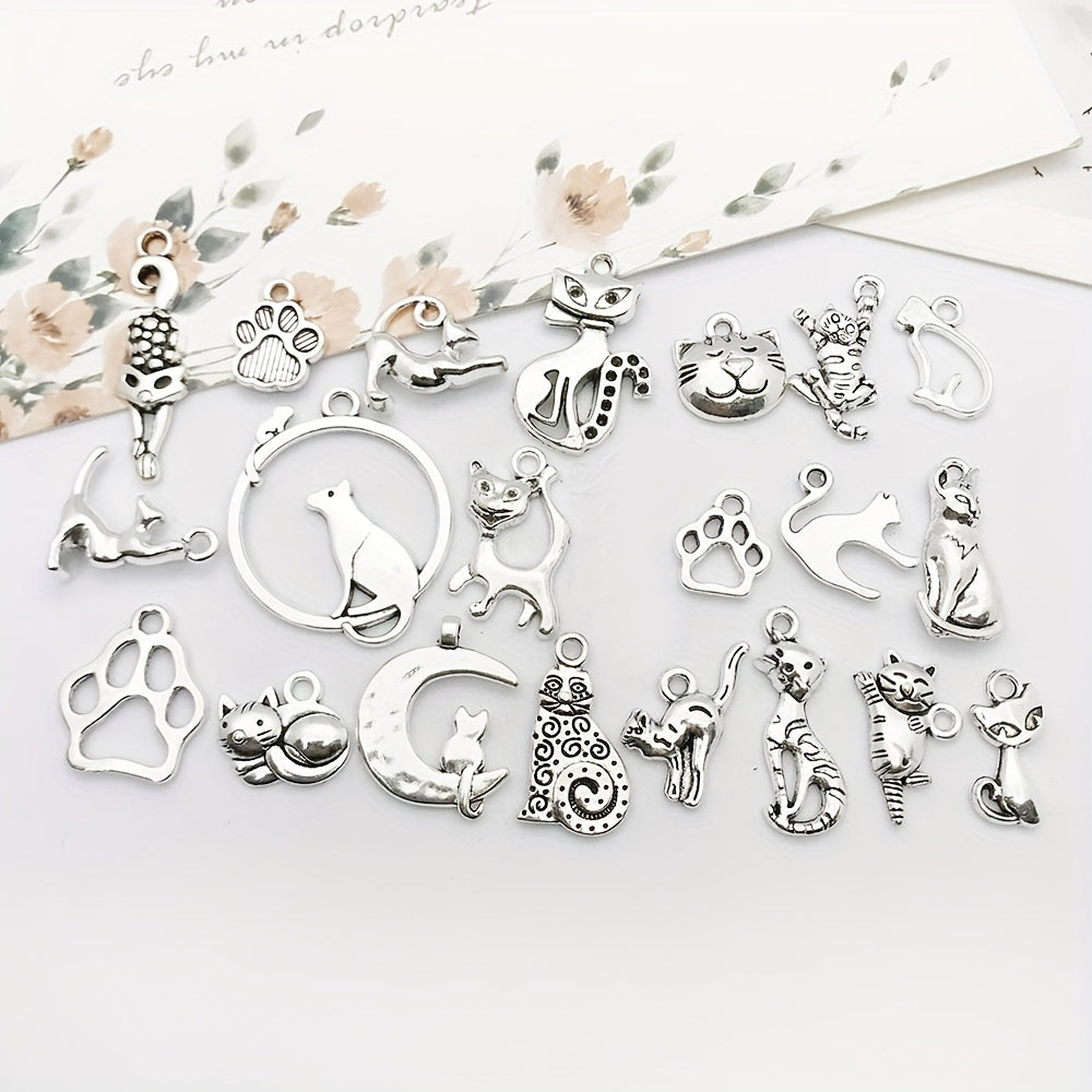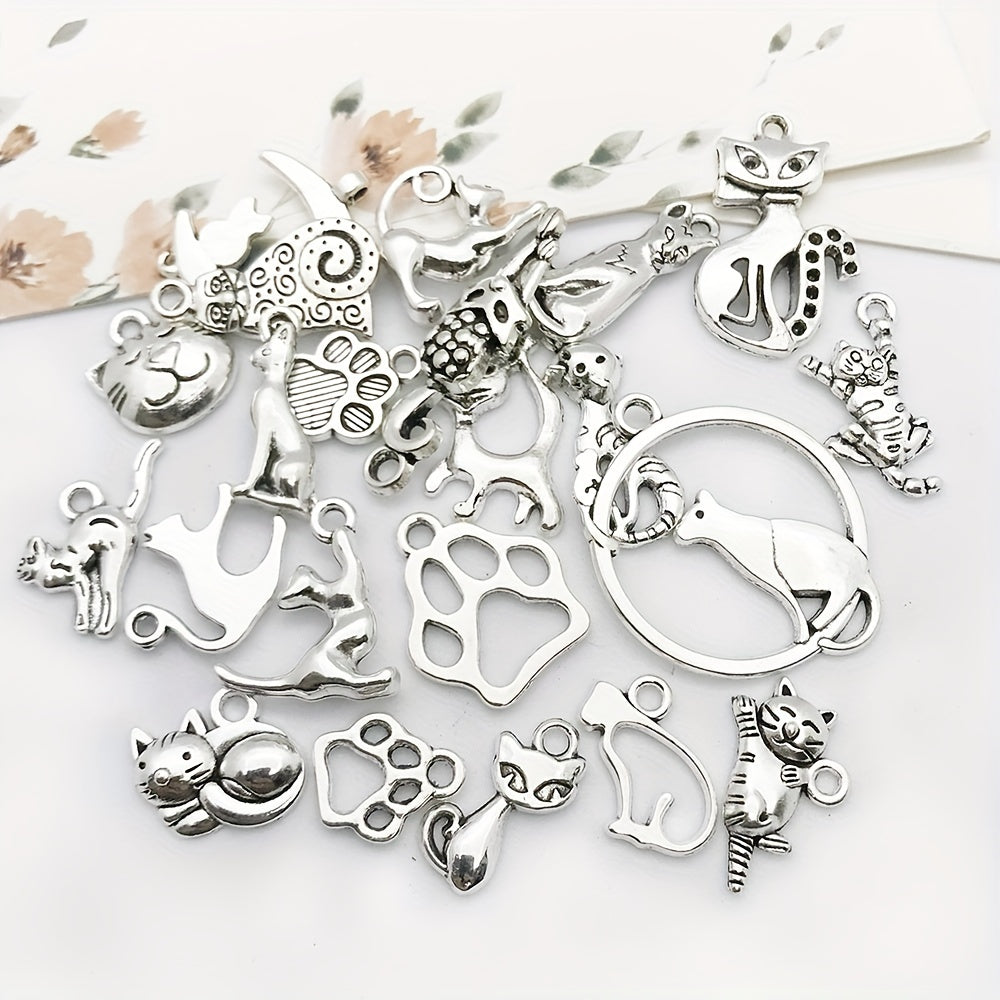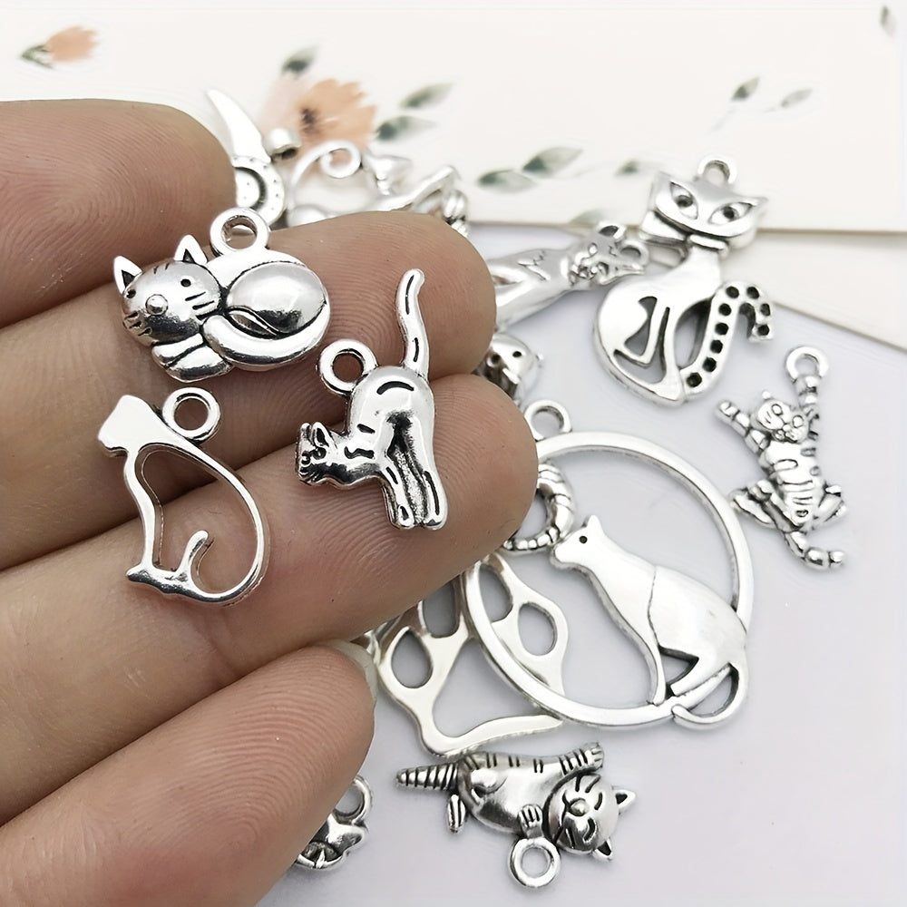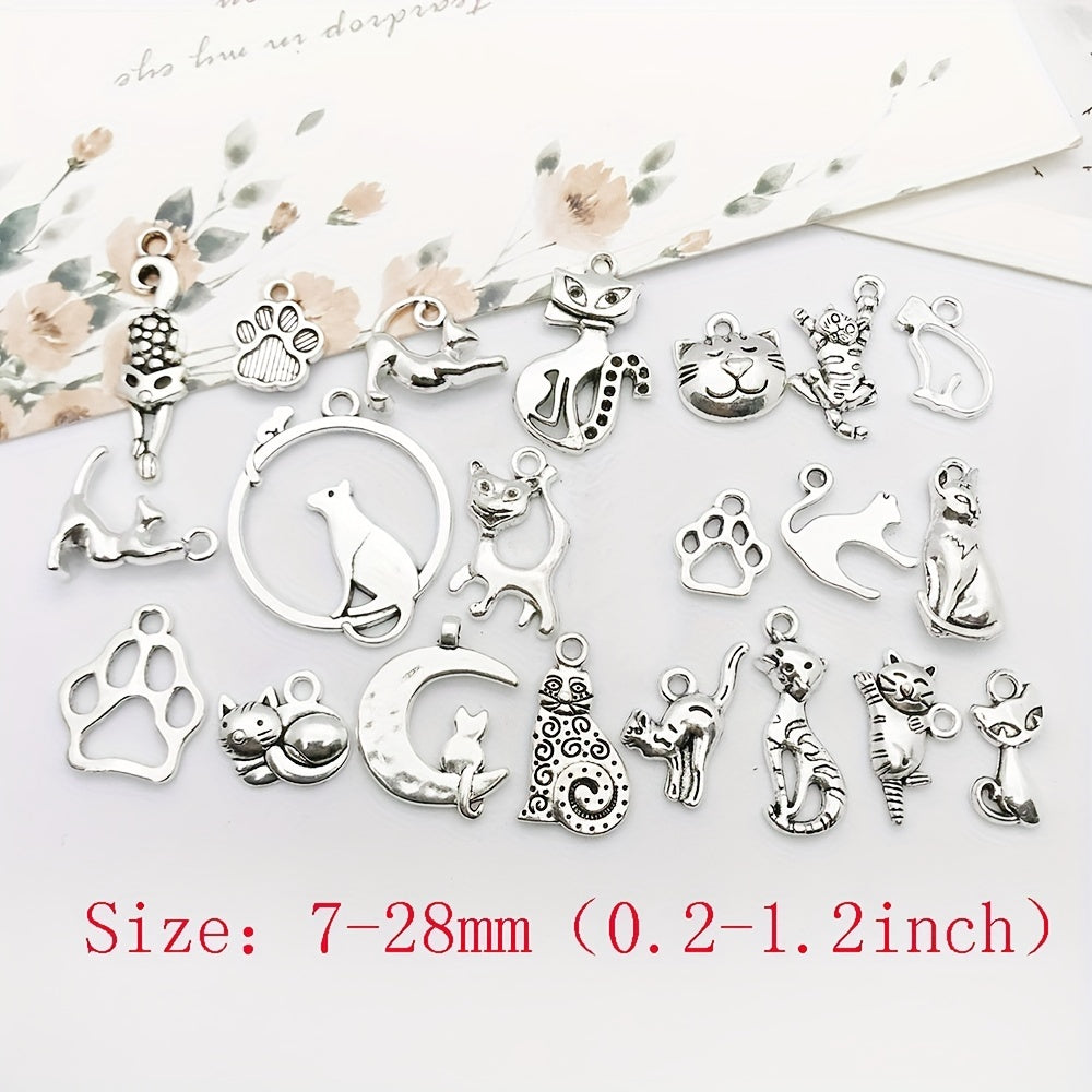 Create stunning jewelry pieces with these 20 antique silver cat charms pendants. Perfect for necklaces, bracelets, and other crafting projects.