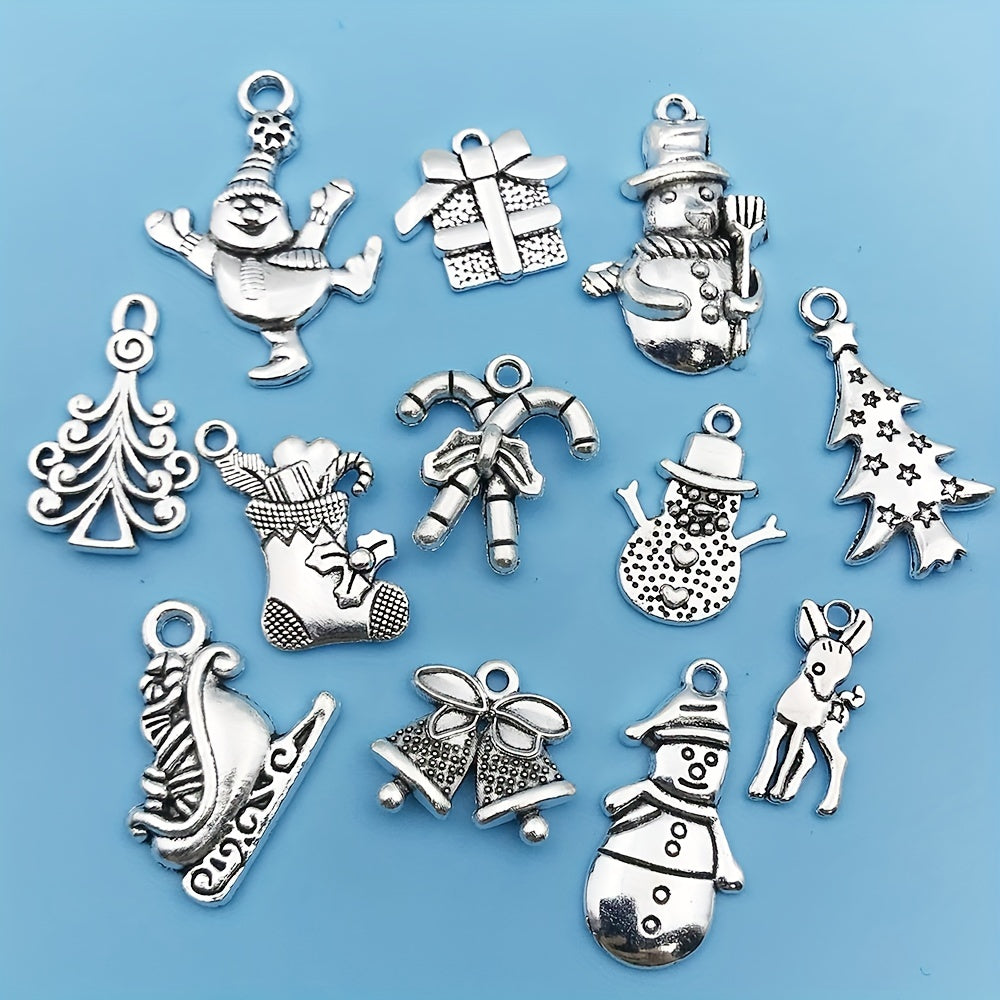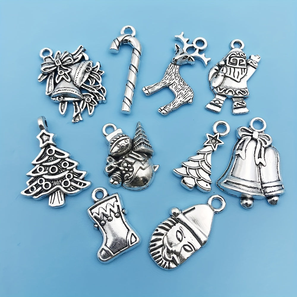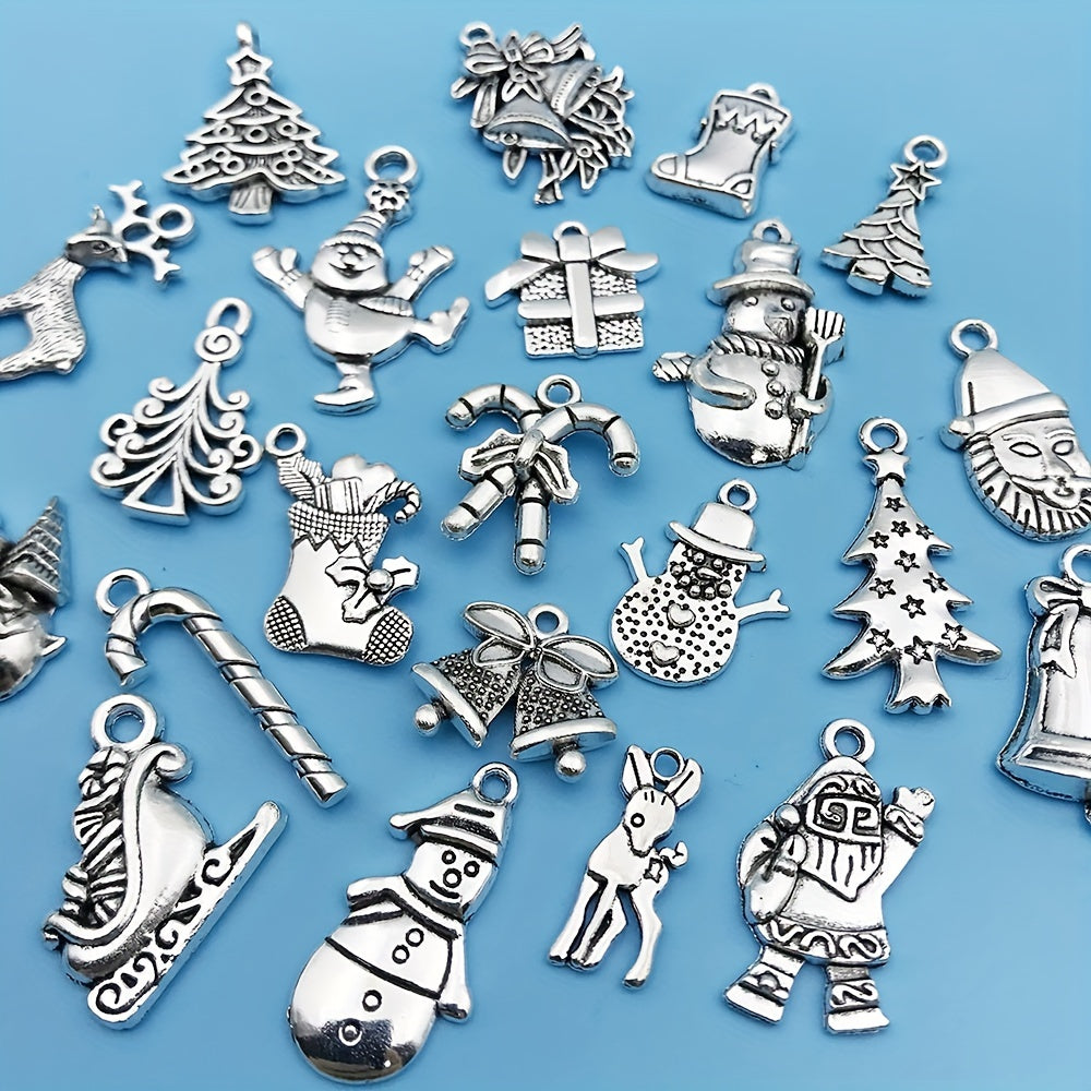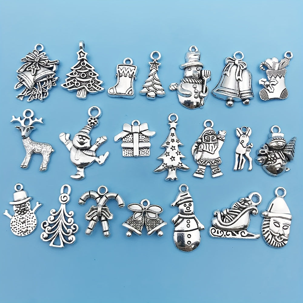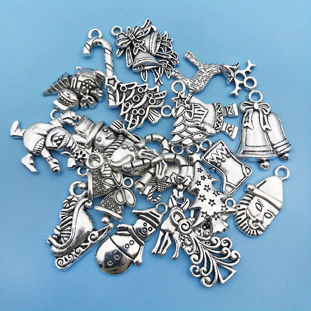Add a festive touch to your jewelry creations with these antique silver Christmas charms. Each set includes 20 pieces featuring Santa, snowman, bell, reindeer, and more. Perfect for necklaces, bracelets, and crafting projects.