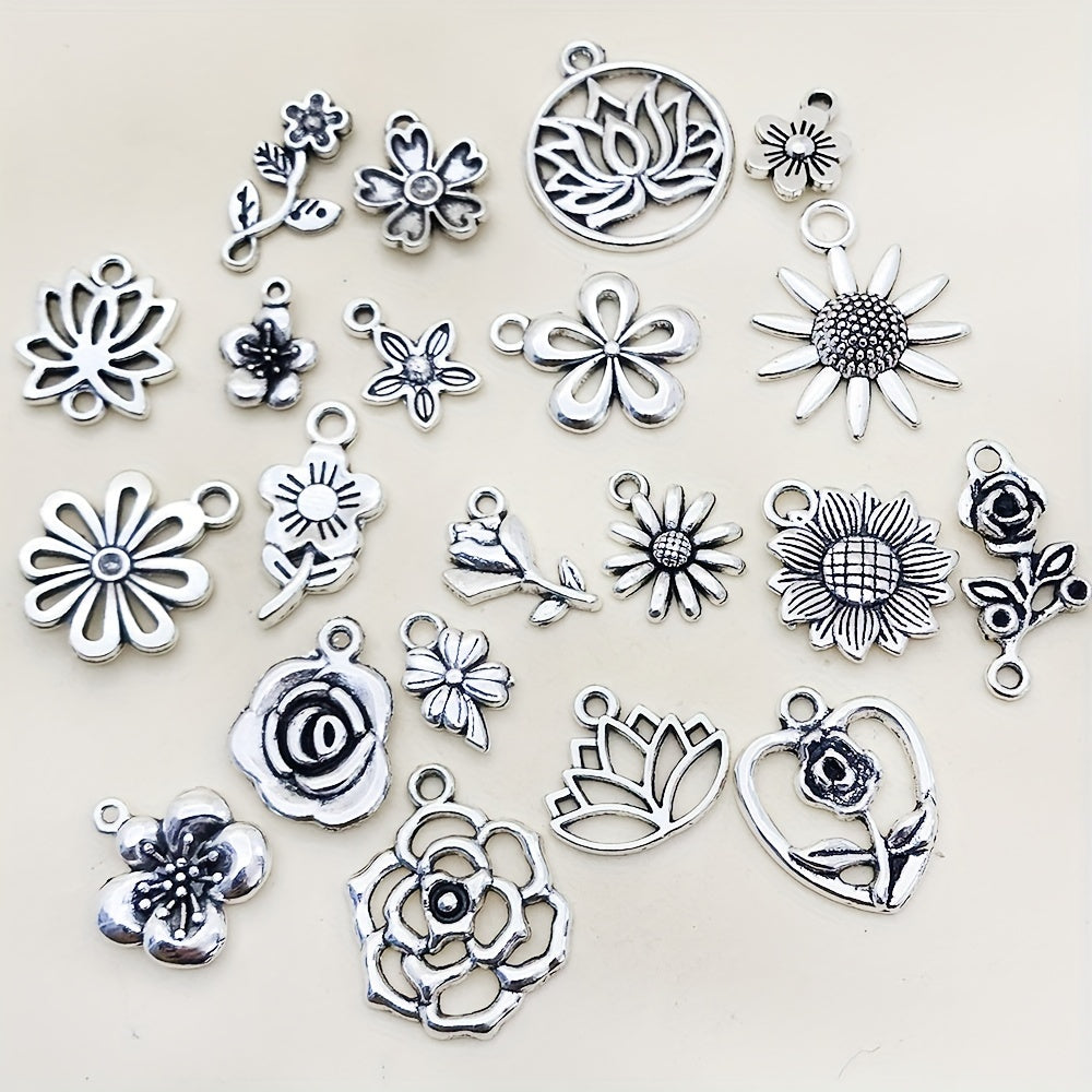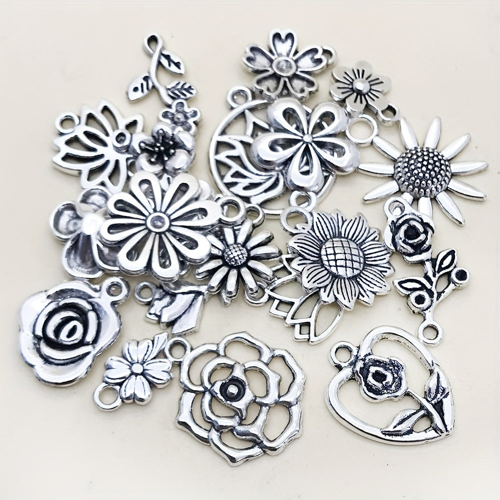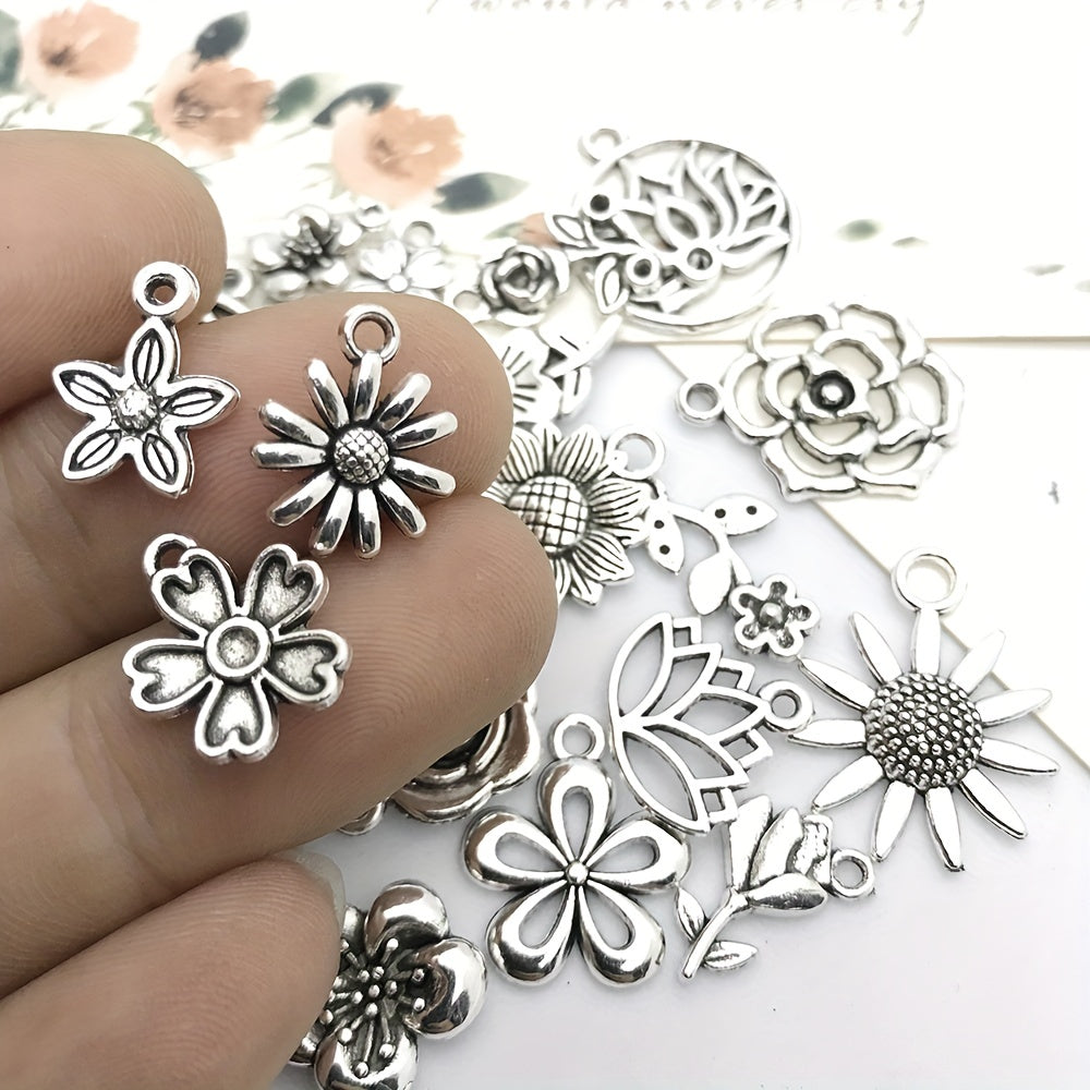 Add a touch of vintage charm to your jewelry projects with these antique silver flower charms pendants. Perfect for creating unique necklaces and bracelets. Made of high-quality materials to ensure durability and style.
