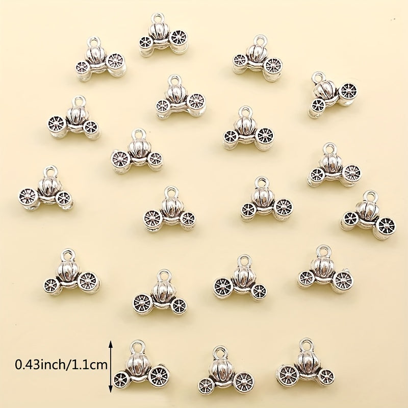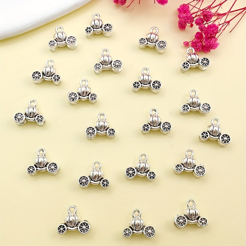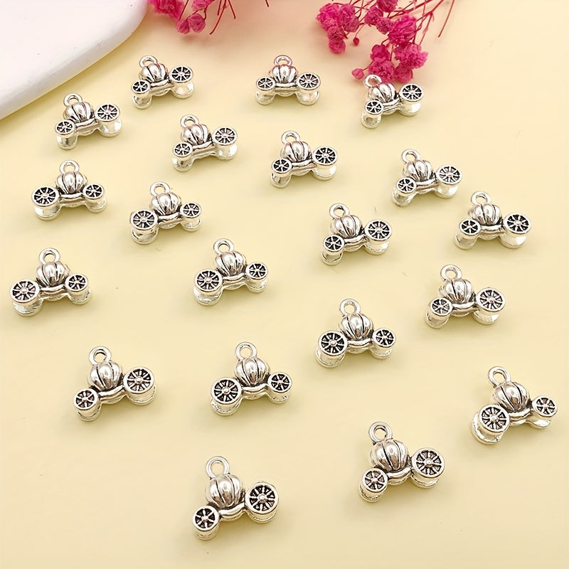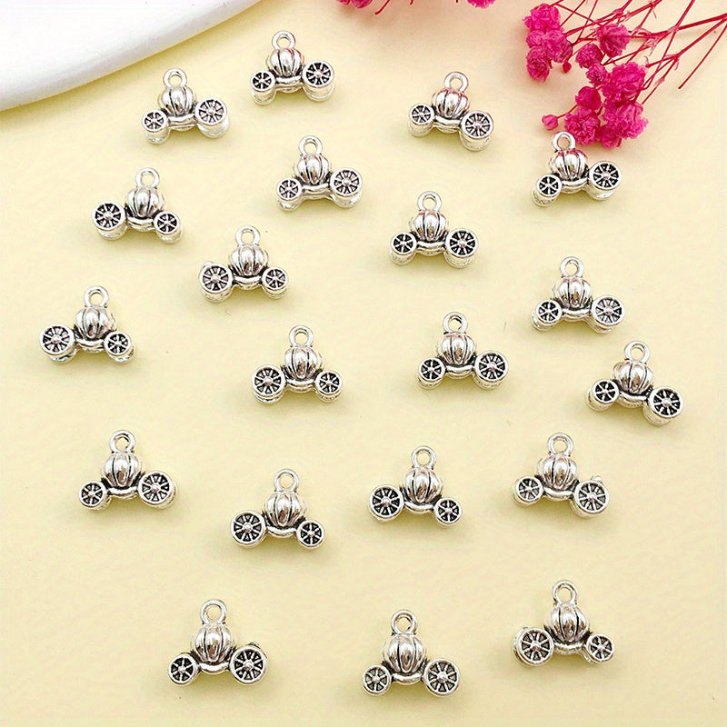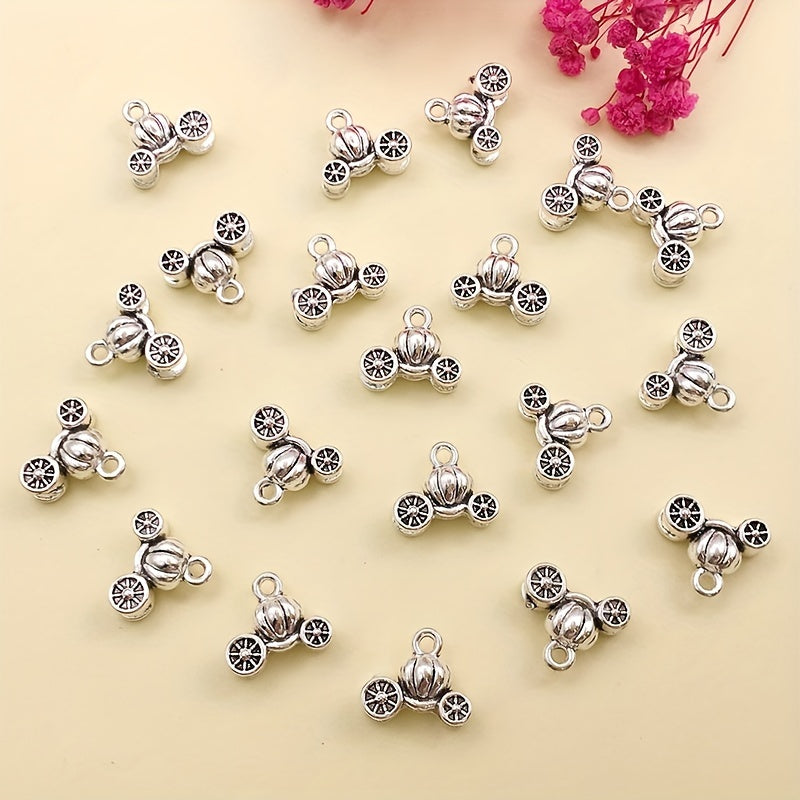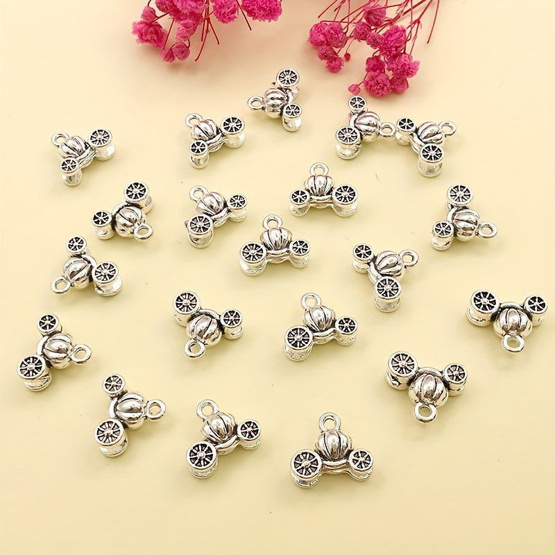 Includes 20 zinc alloy antique silver pumpkin carriage pendants ideal for creating necklaces, bracelets, and earrings for Halloween decorations and jewelry making projects.