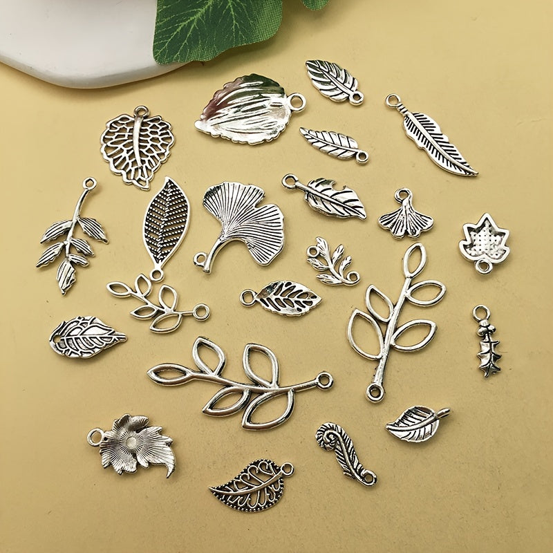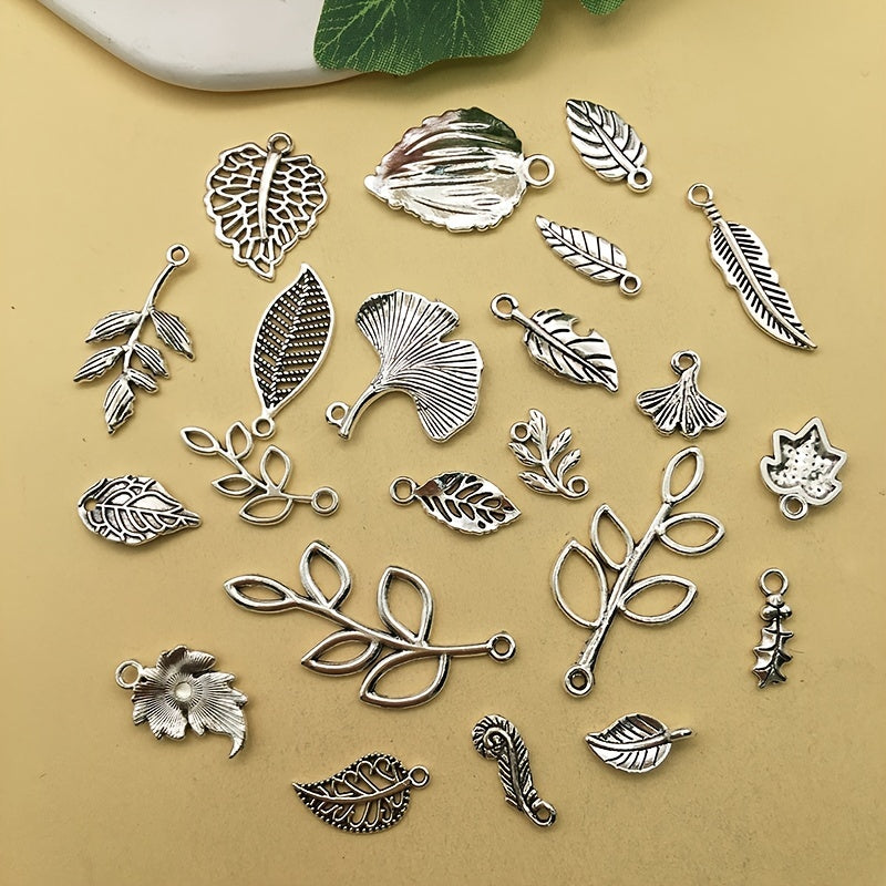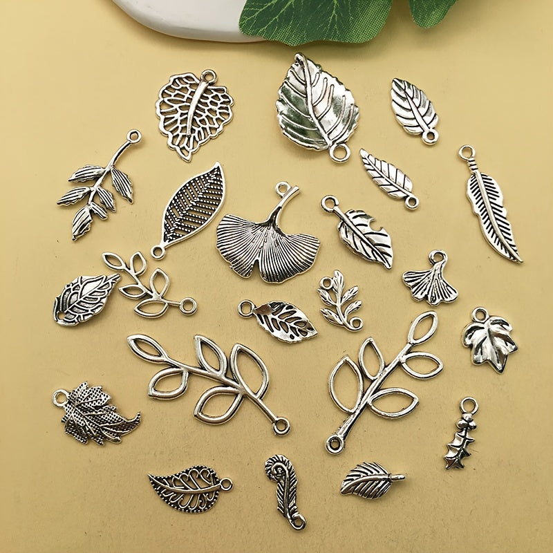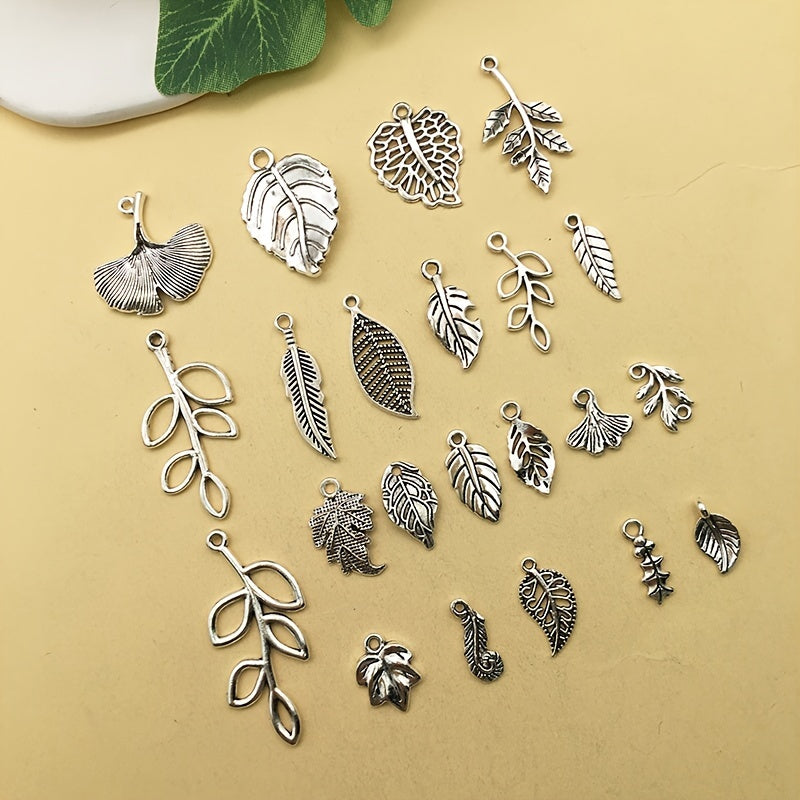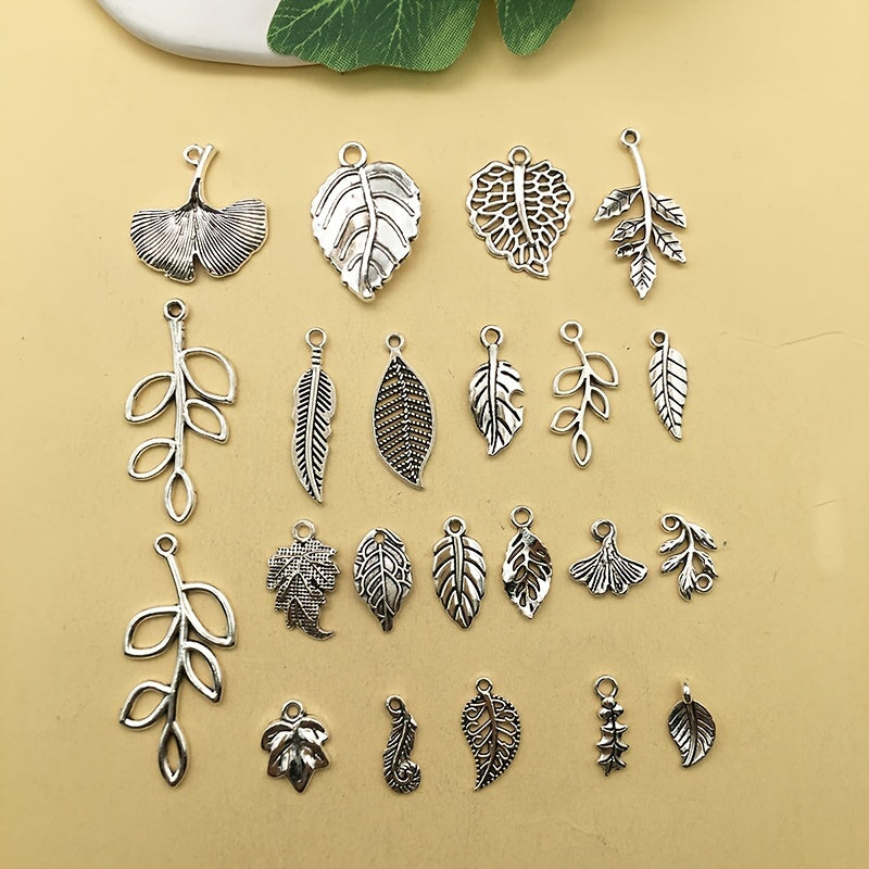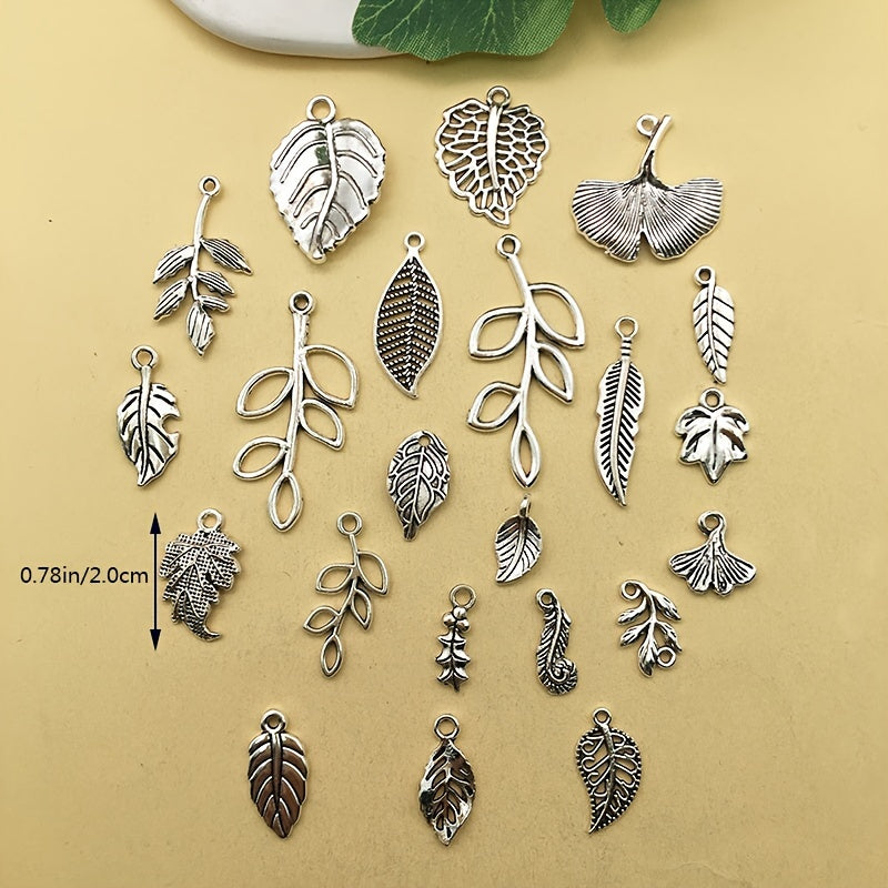 Enhance your jewelry making projects with this set of 20 antique silver leaf charms. Perfect for necklaces, bracelets, and more.