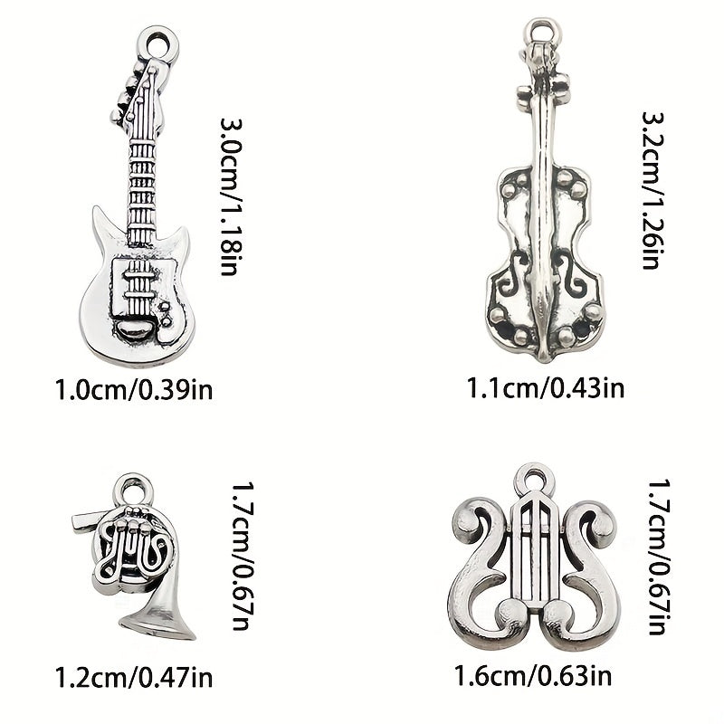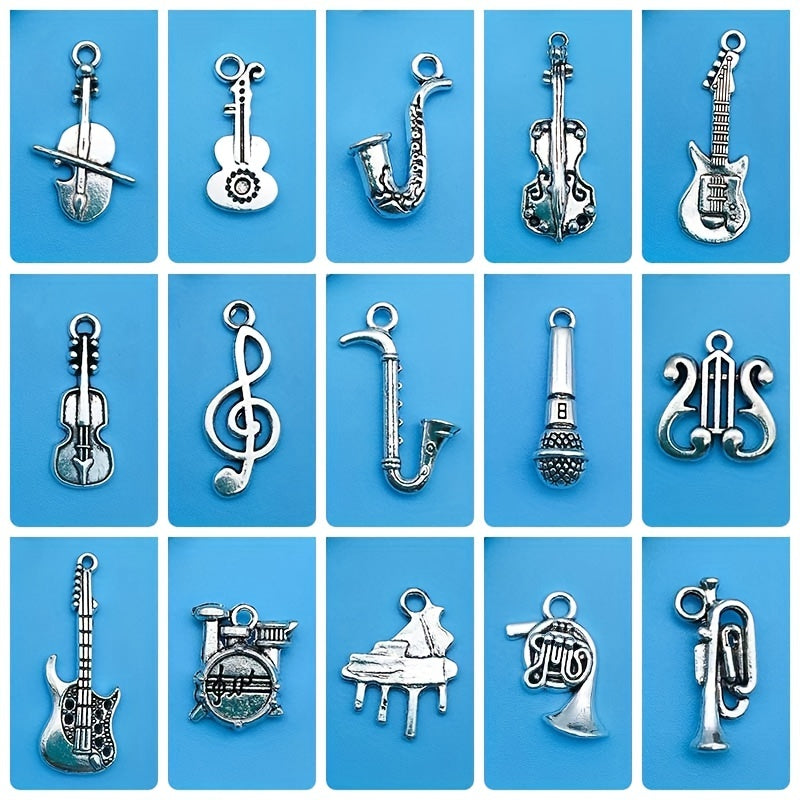 Create unique jewelry pieces with this set of 20 zinc alloy pendants in musical instrument designs. Perfect for necklaces, bracelets, and more.