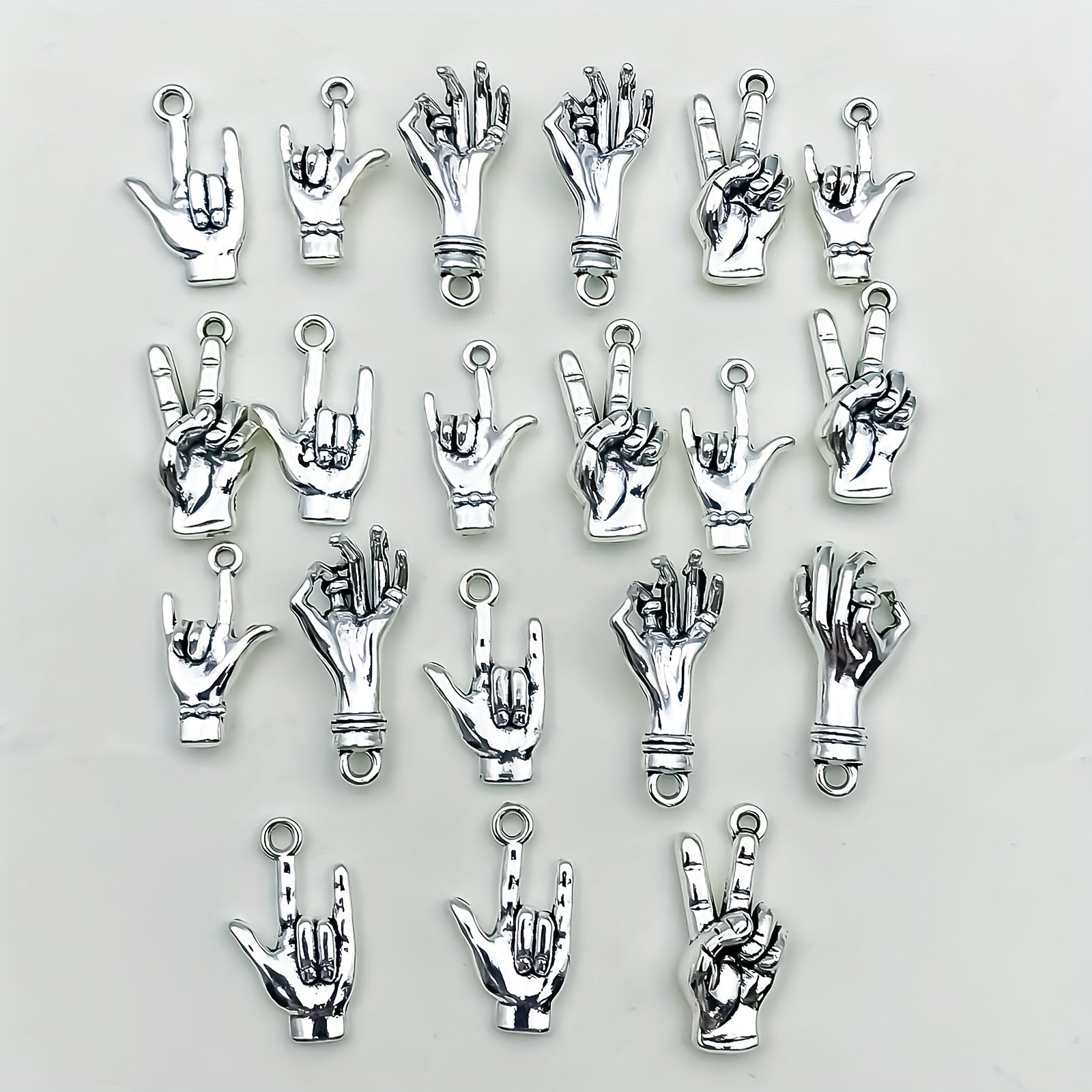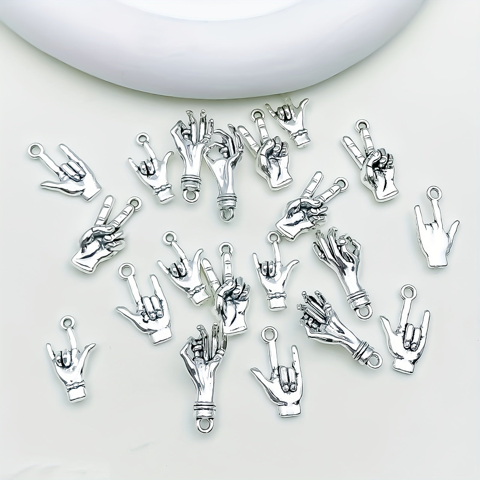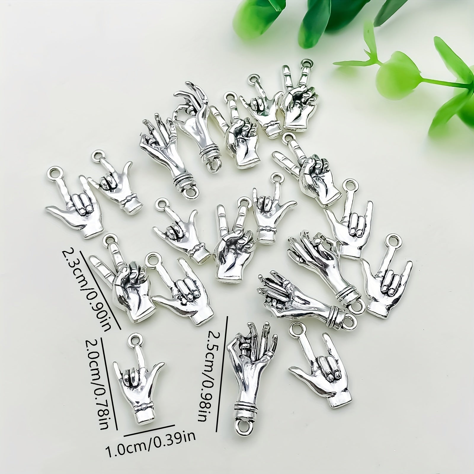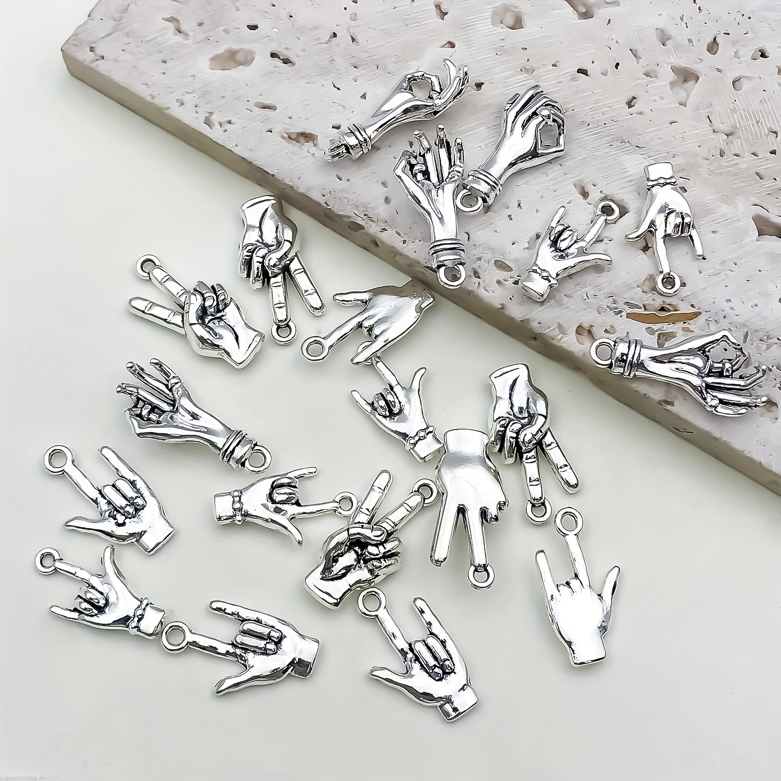 Create unique earrings, bracelets, and necklaces with this set of 20 antique silvery hand gesture shaped alloy pendants. Perfect for crafting projects and adding a personal touch to your accessories.