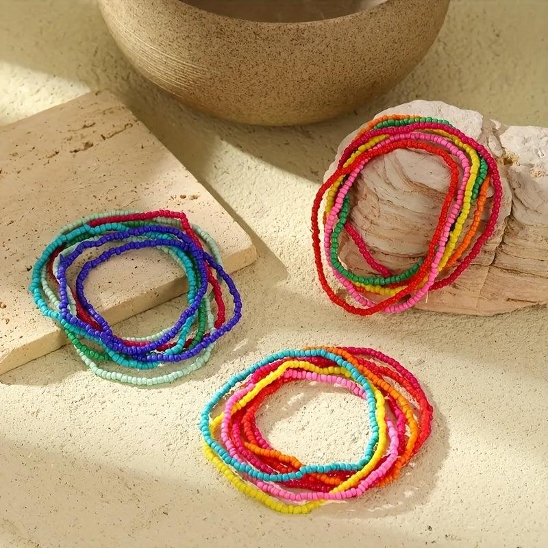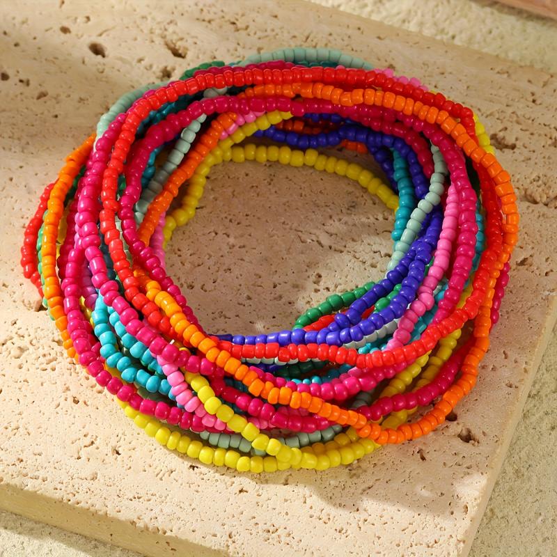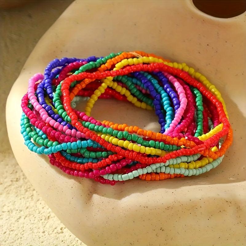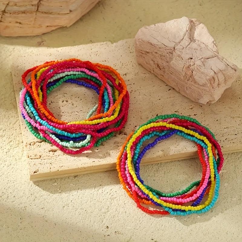 Elevate your holiday and outdoor party look with this trendy set of 20 random bohemian rice bead bracelets. Perfect for beach vibes and high jewelry gifts.