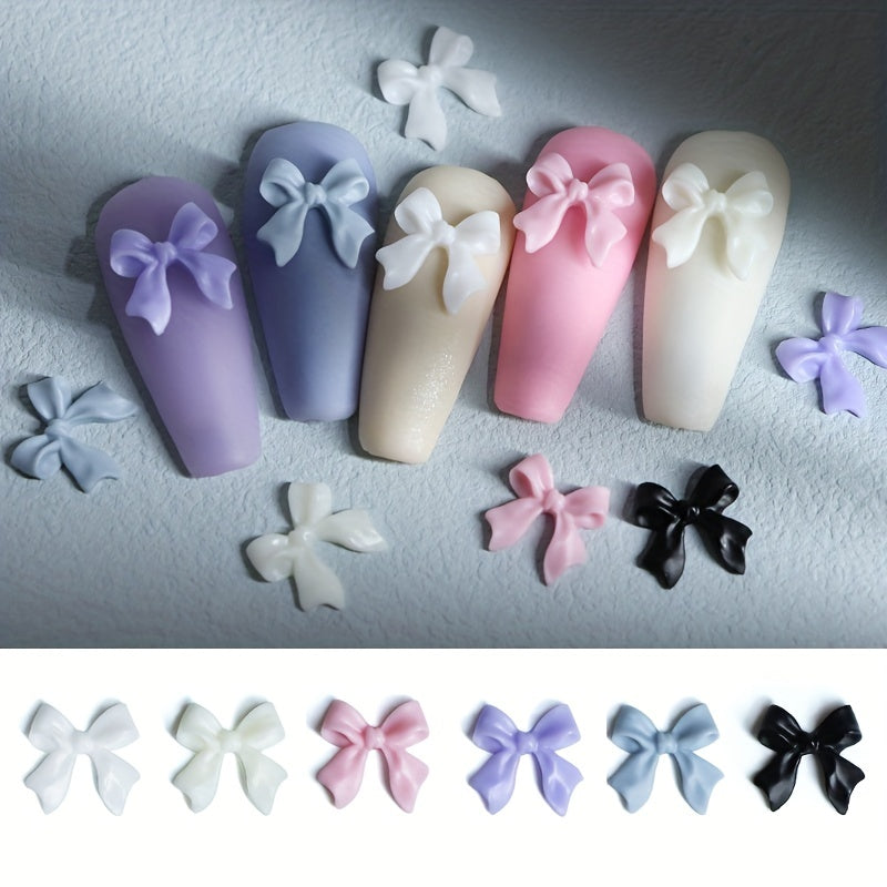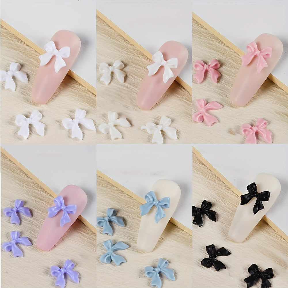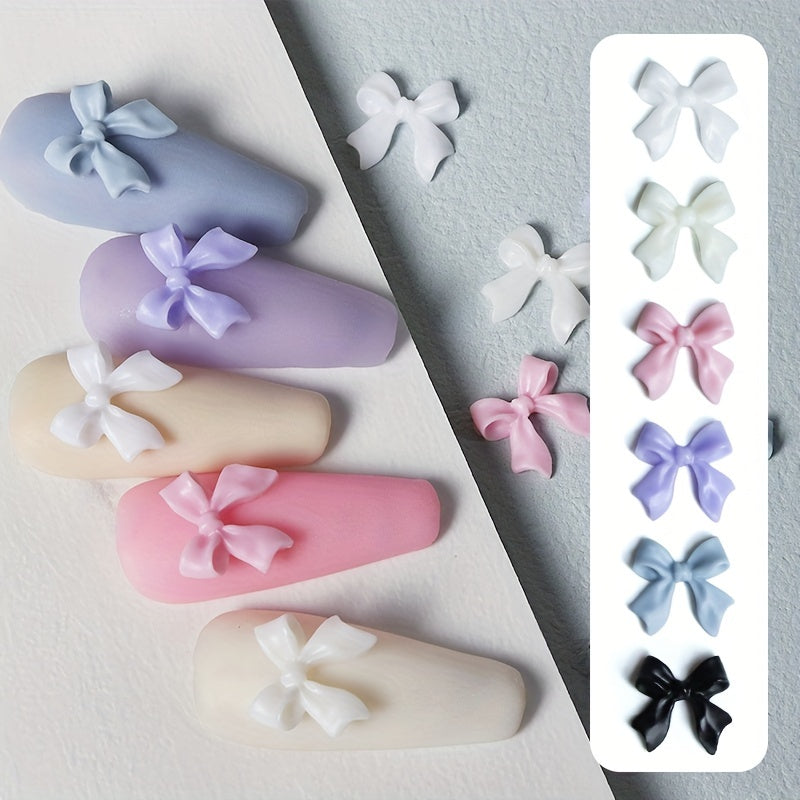 Enhance your manicure with these charming bow nail decorations. Perfect for DIY nail art, these acrylic resin charms add a touch of glamour to your nails.