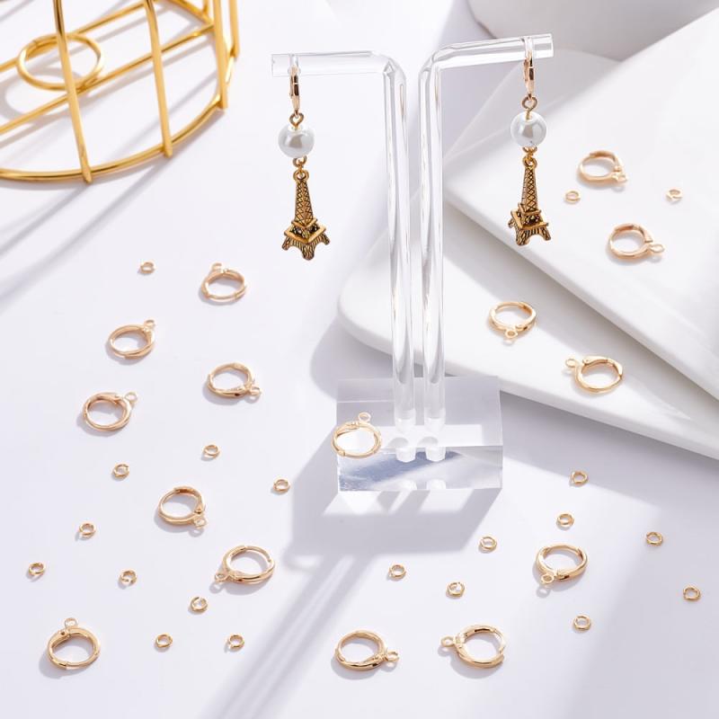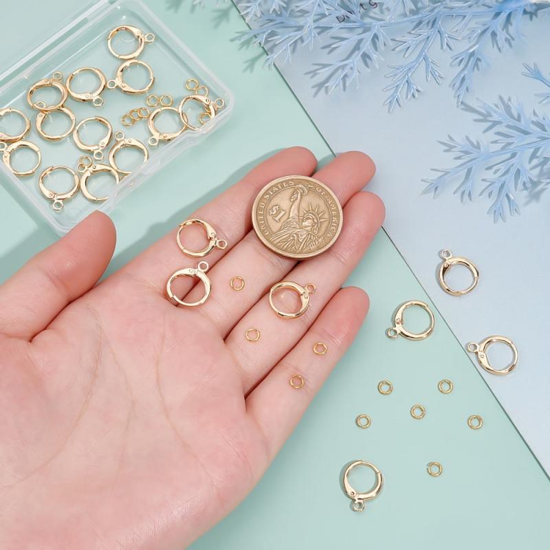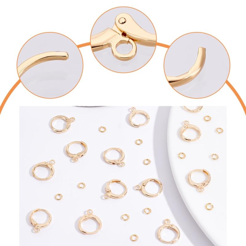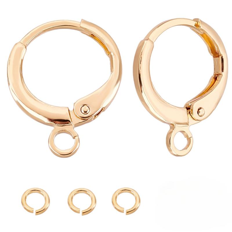 Enhance your earring-making projects with this set of 20 brass huggie hoop earring findings. Each piece includes a loop for easy attachment and comes with 20 open jump rings. Make personalized earrings with these golden findings.