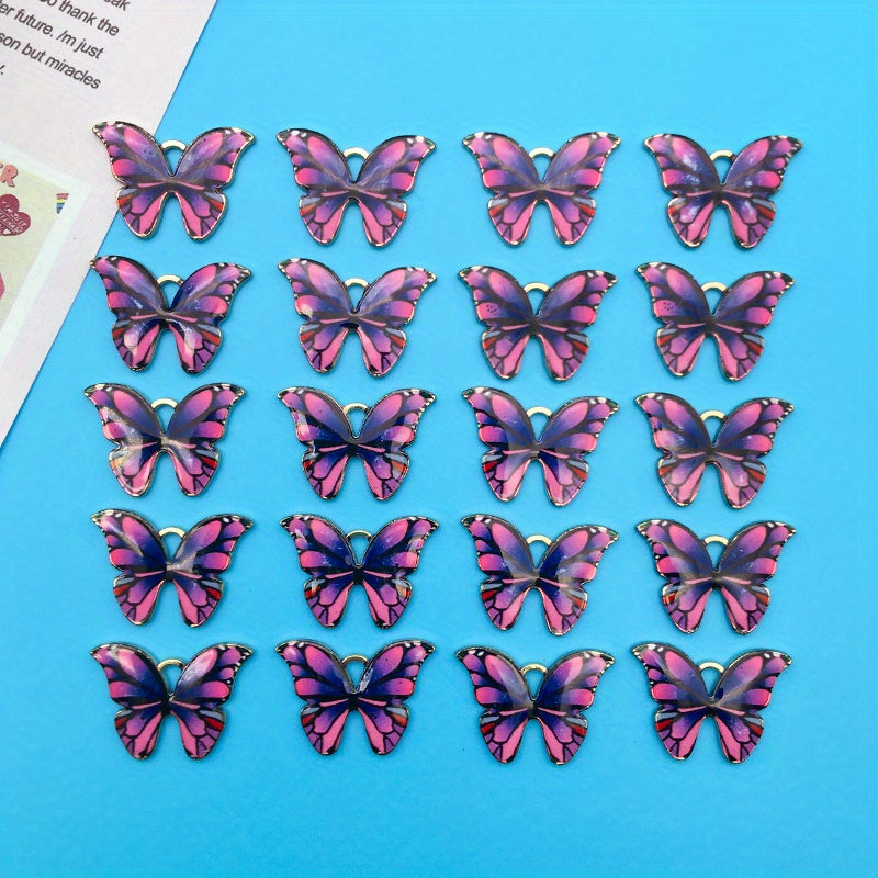 Create stunning jewelry pieces with this set of 20 Zinc Alloy Enamel Butterfly Pendants. Each pendant measures 21x15mm and comes in 8 vibrant colors. Perfect for necklaces, bracelets, and earrings.