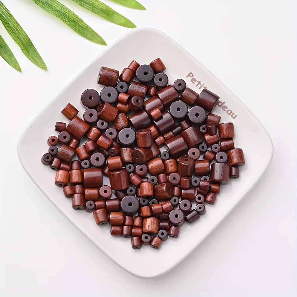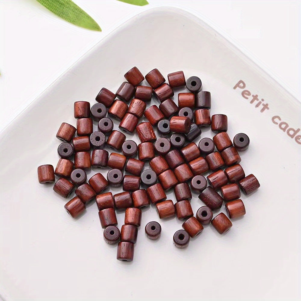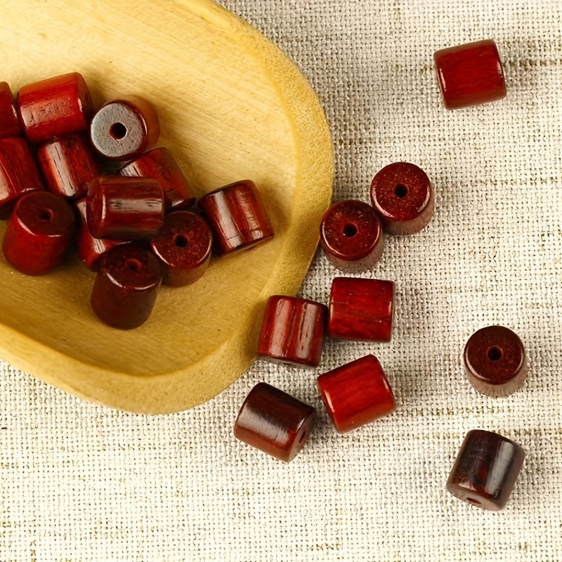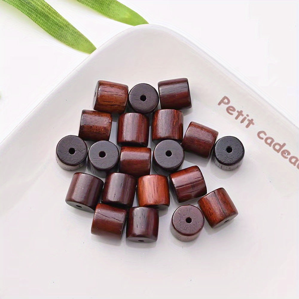 Create unique and stylish jewelry with this set of 20 dark colored cylindrical wooden bucket beads. Perfect for bracelets and pendants.