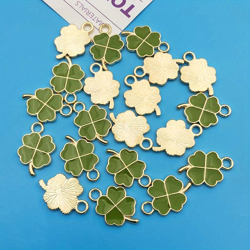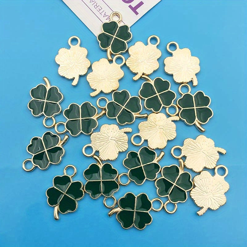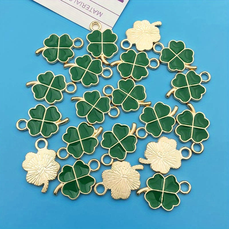 Add a touch of luck to your jewelry creations with these enamel green clover charms. Perfect for St. Patrick's Day themed projects, these charms can be used to make bracelets, earrings, necklaces, and more.