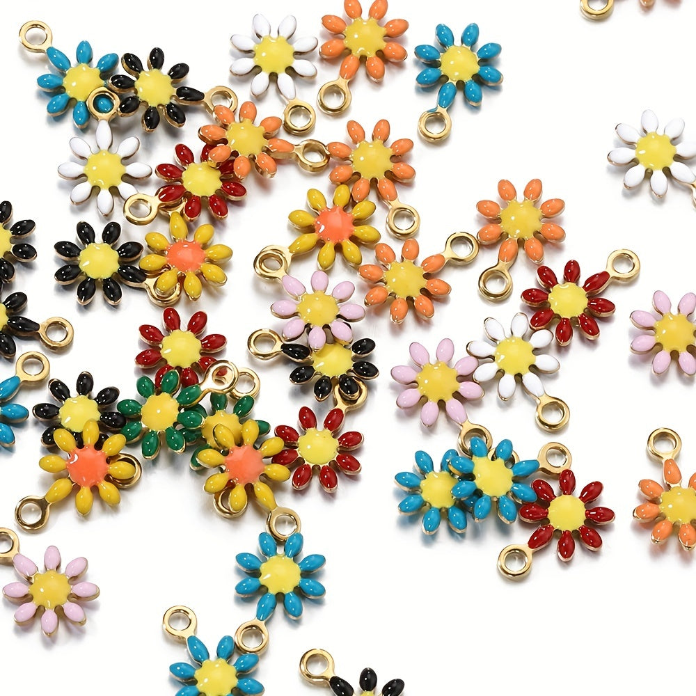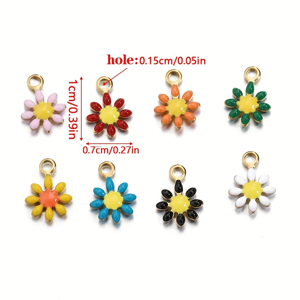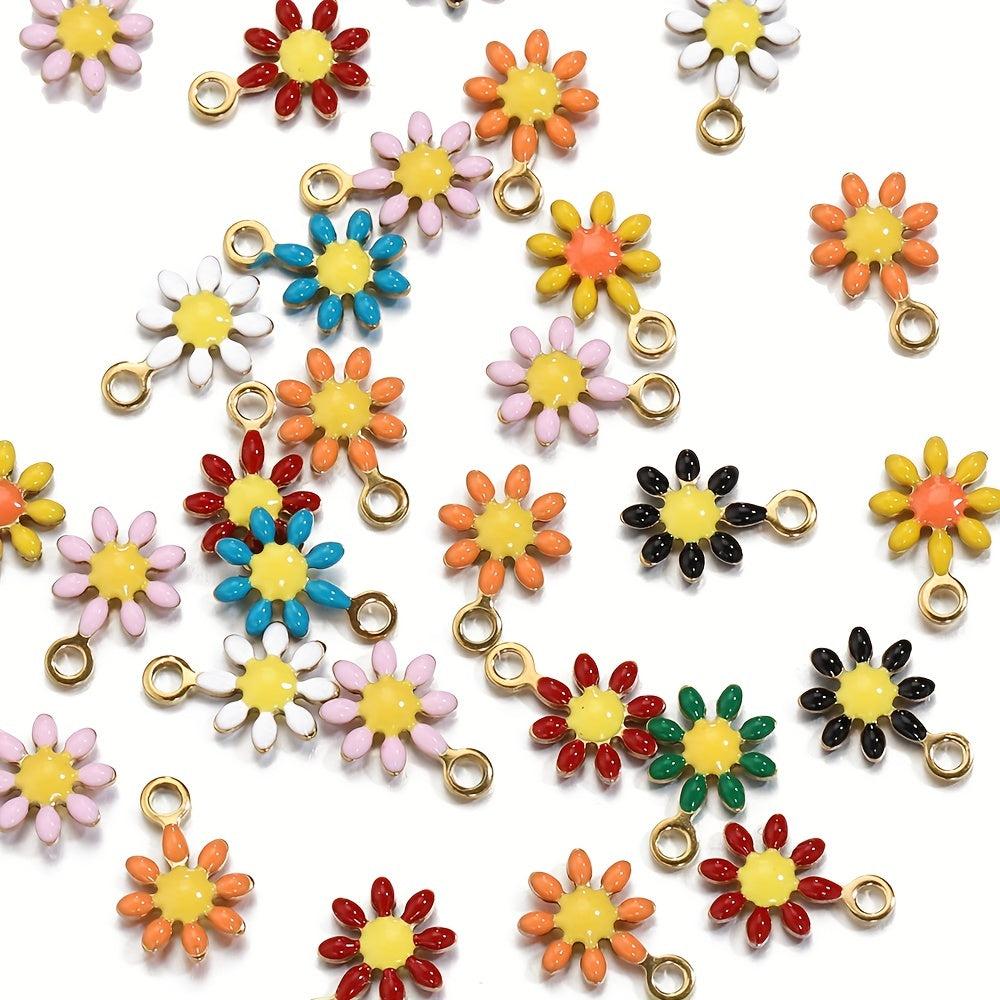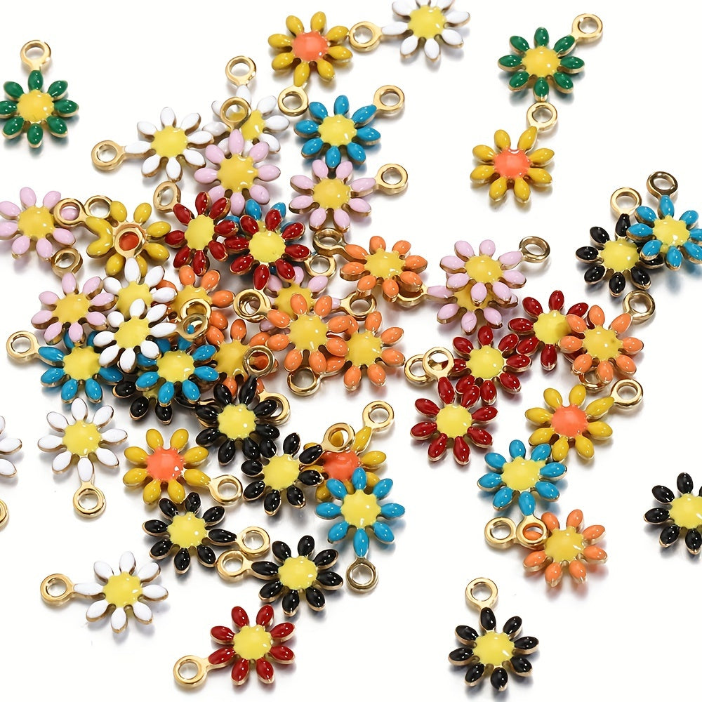 These stainless steel enamel daisy flower charms pendants are perfect for bracelets, necklaces, and other jewelry making projects. They are golden in color and won't fade over time.