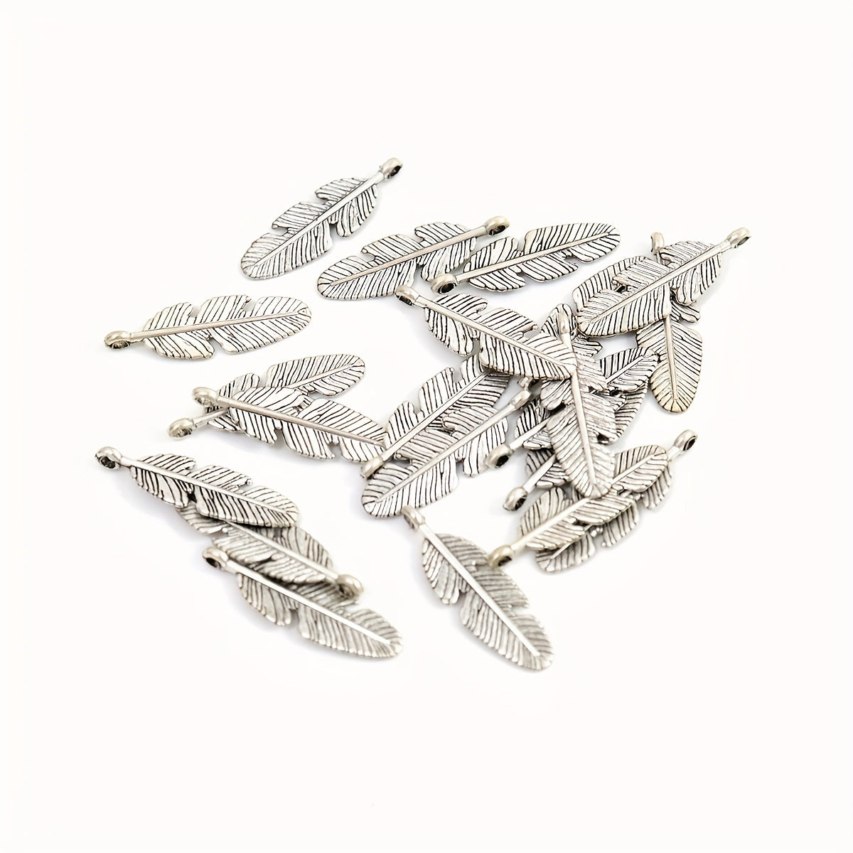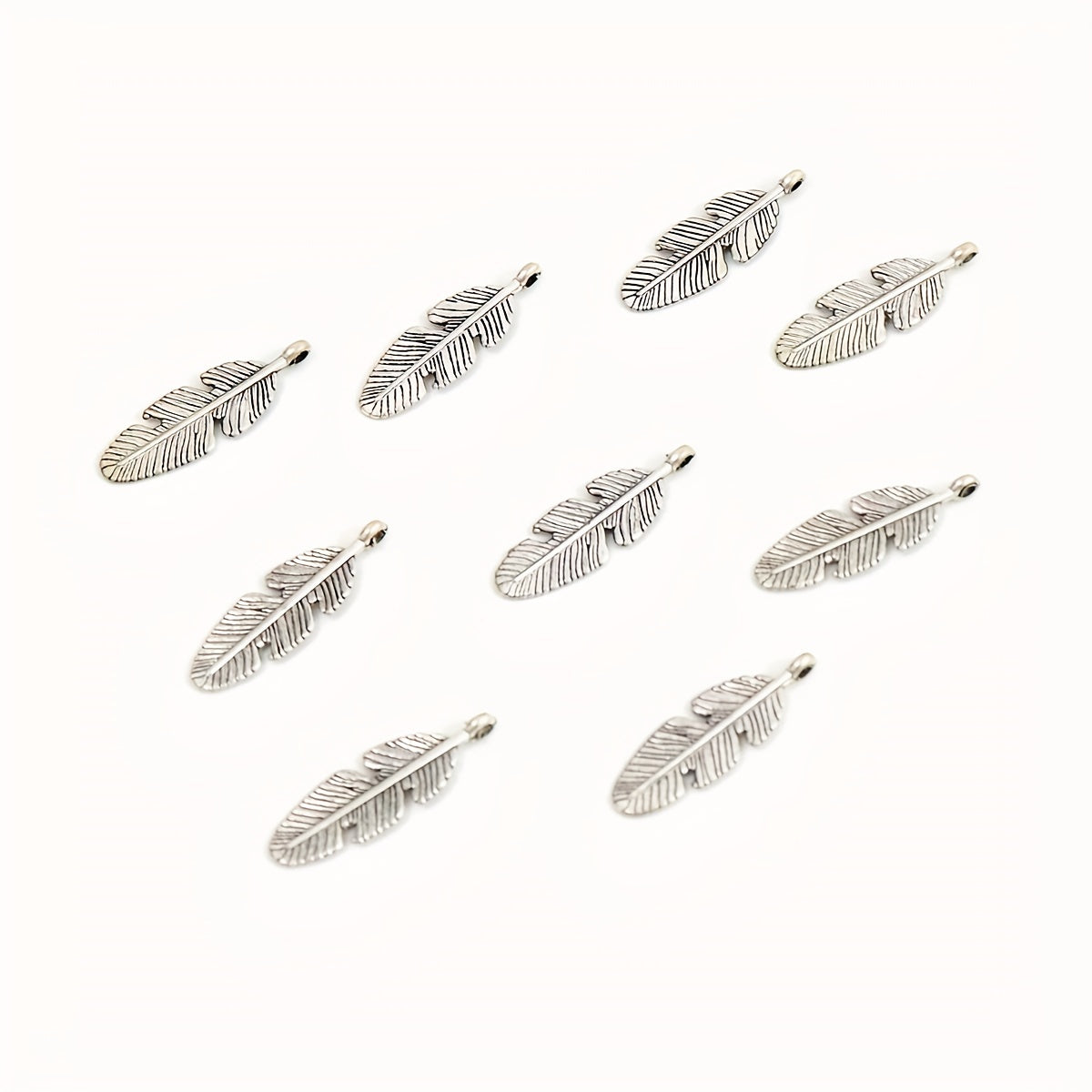 Enhance your DIY jewelry projects with these 20 feather-shaped alloy pendants. Perfect for creating unique necklaces and bracelets.