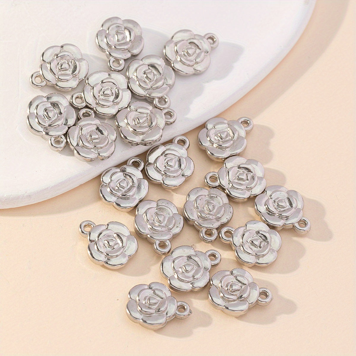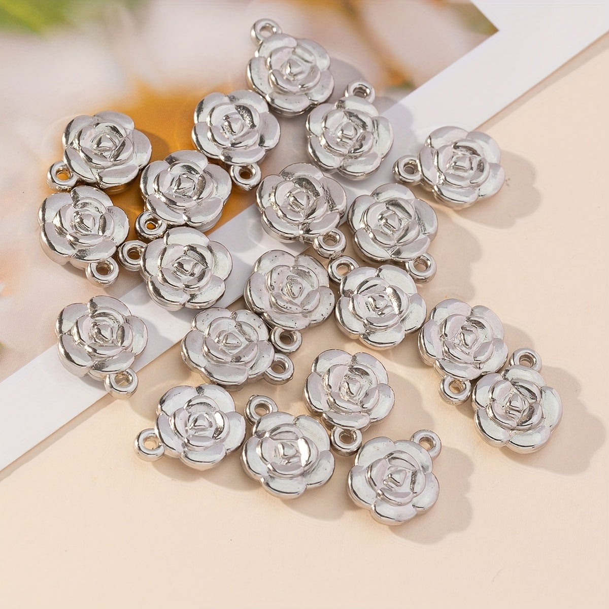 This set includes 20 flower shape pendants for making necklaces, bracelets, and earrings.