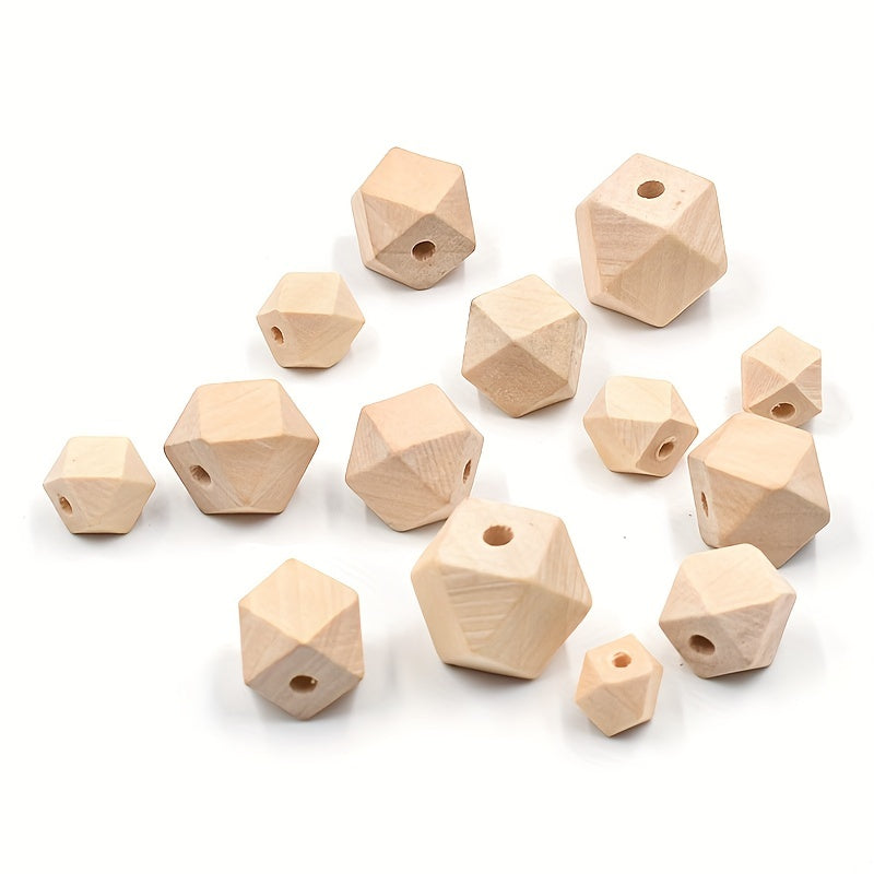 Enhance your jewelry making projects with this set of 20 geometric loose wooden beads. Ideal for creating unique necklaces and charms.