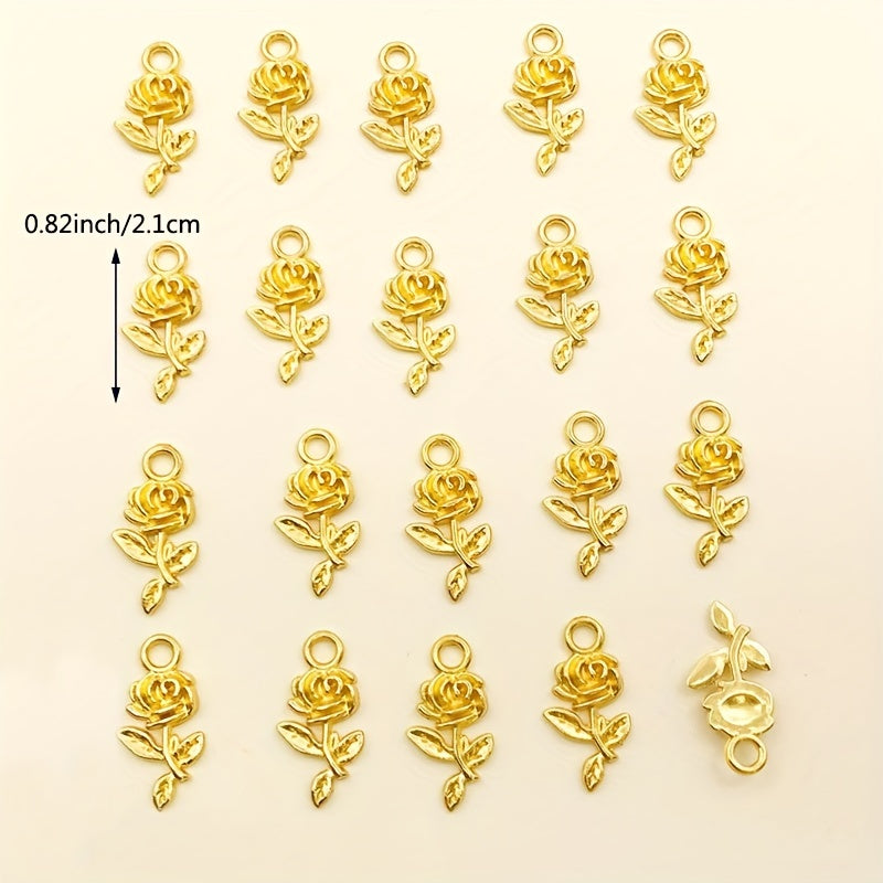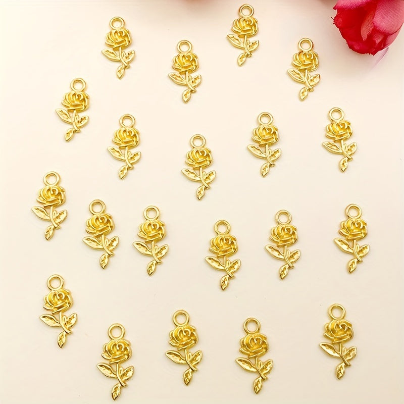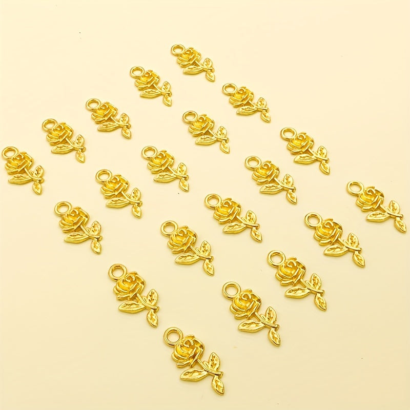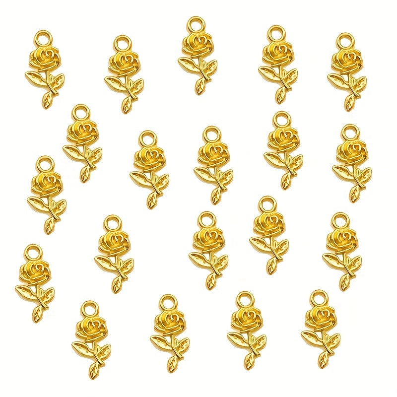 20pcs Golden Rose Flower Charms for DIY Necklace Bracelets
