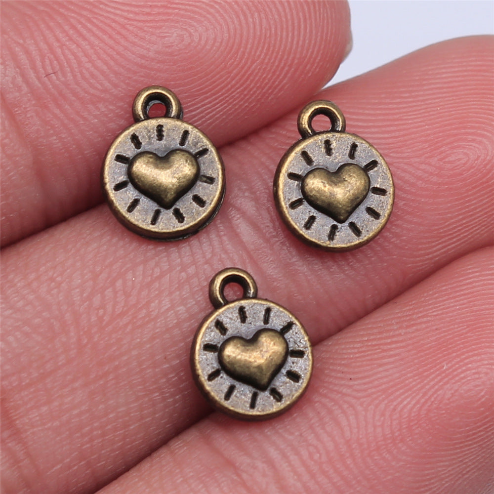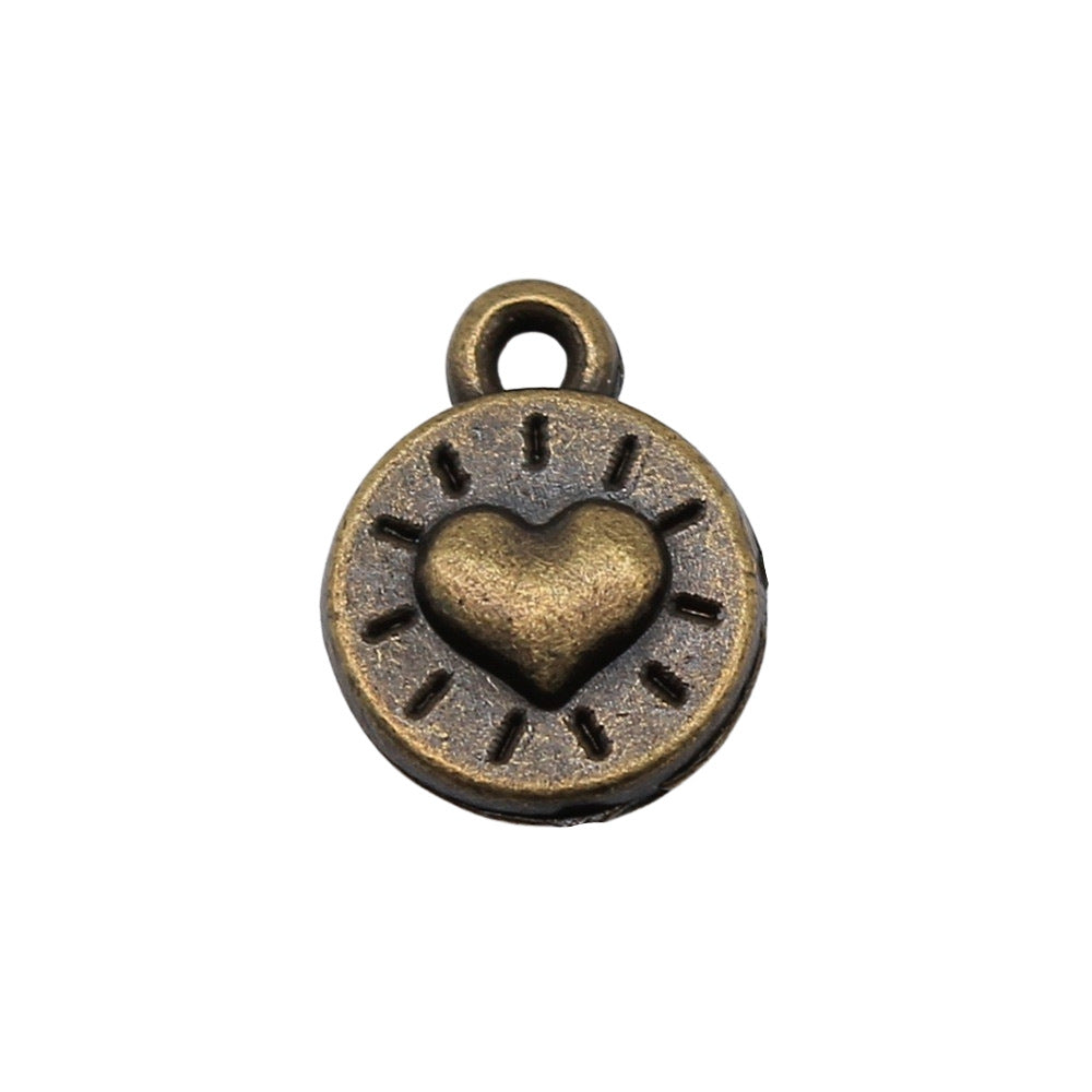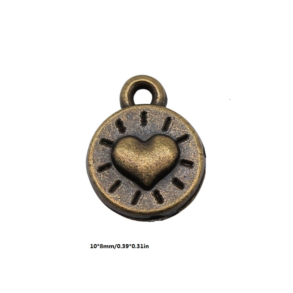 These ancient silvery or bronze pendants feature a heart pattern design, ideal for making your own earrings, bracelets, necklaces, and other accessories.
