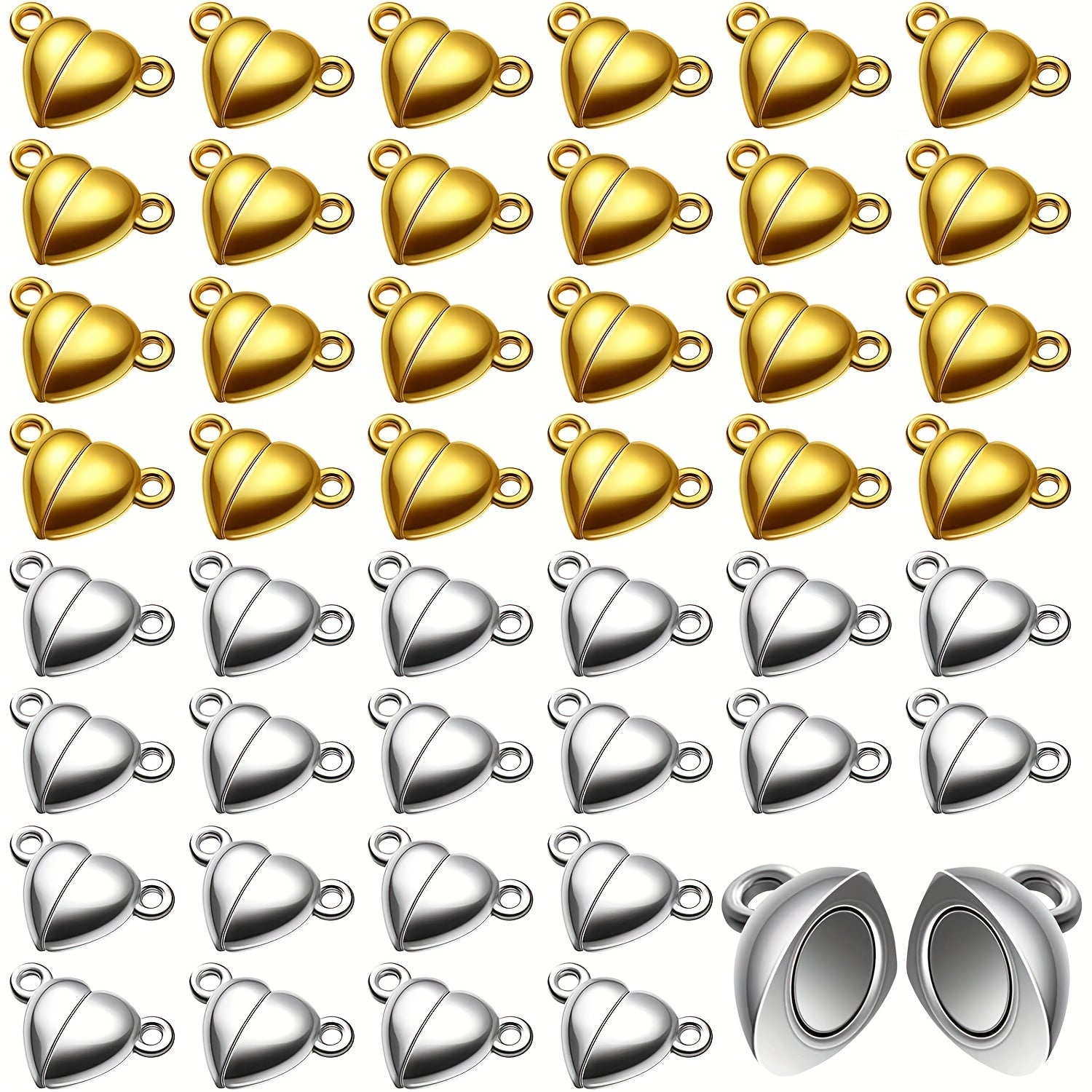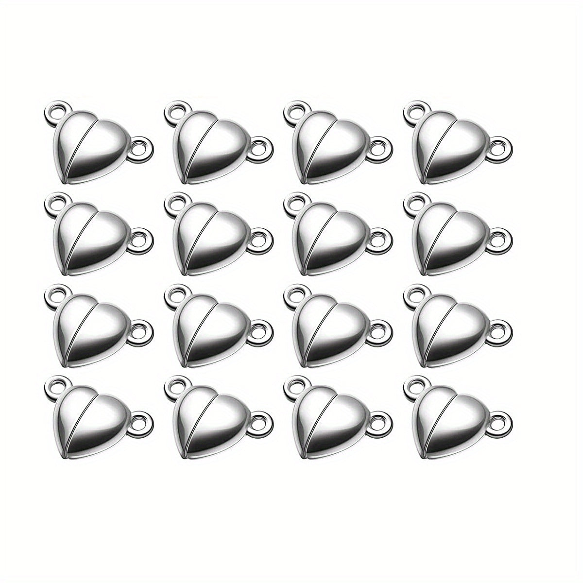 Enhance your bracelet or necklace designs with these 20 heart shaped magnetic clasps in golden and silvery colors. Perfect for creating secure and stylish jewelry pieces.