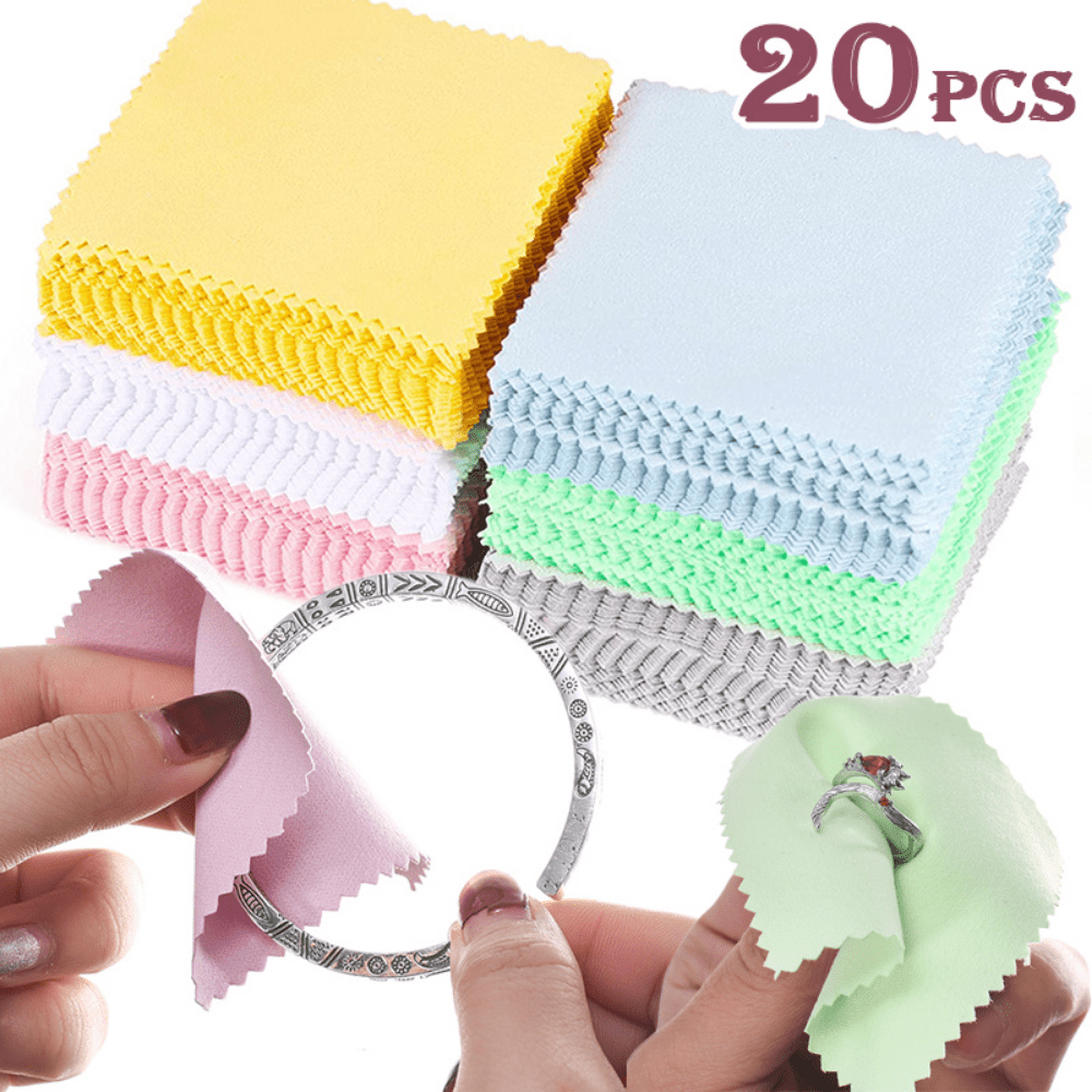 Keep your jewelry sparkling with this set of 20 soft cleaning and polishing cloths. Suitable for various types of jewelry, these cloths effectively remove dirt and tarnish to restore shine and luster.