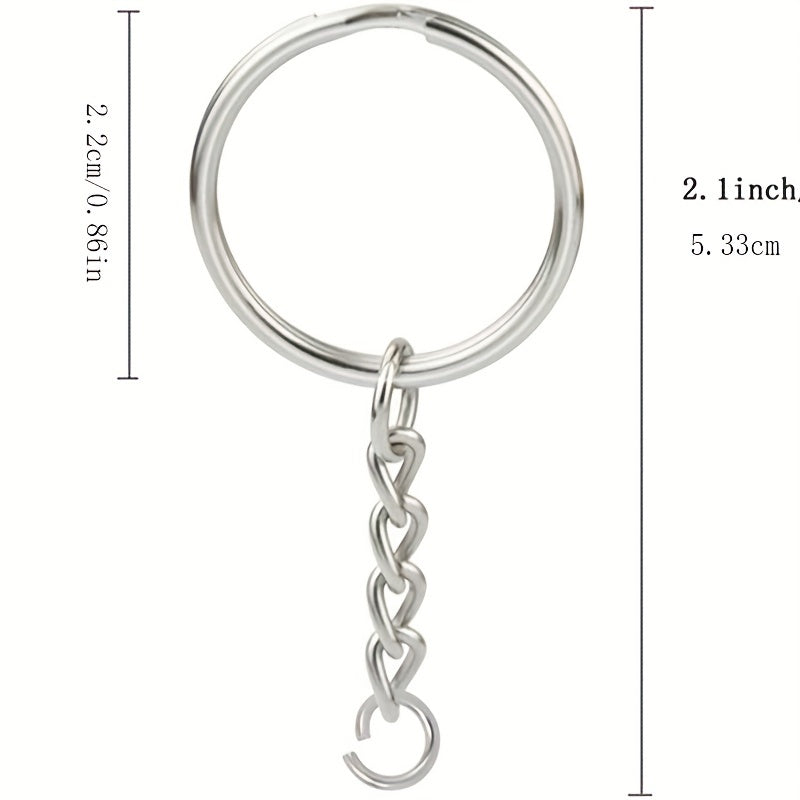 This pack includes 20 separated key rings with 25mm chains and open jump rings, perfect for creating your own custom keychains.