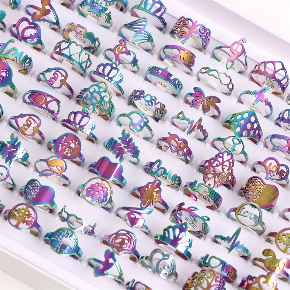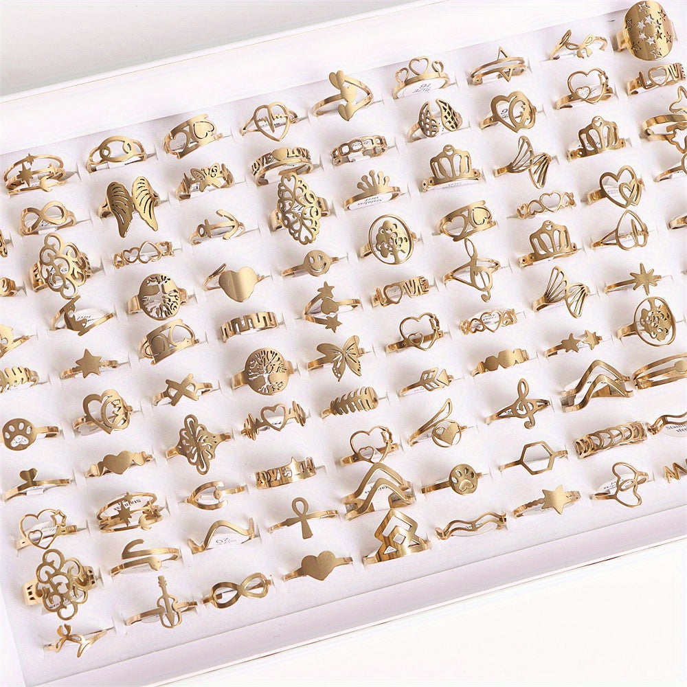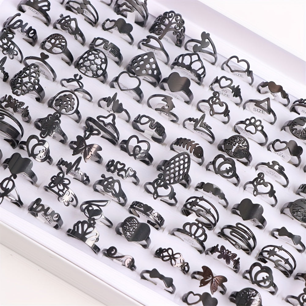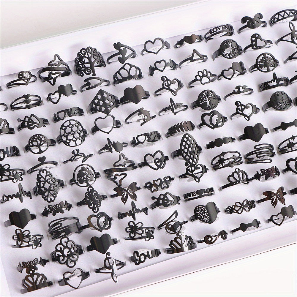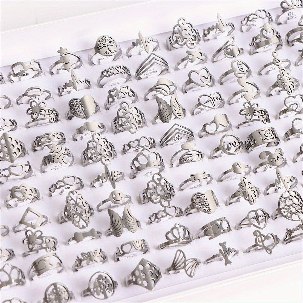 These stainless steel rings feature lover heart, crown, and musical note design, perfect for parties and everyday wear.