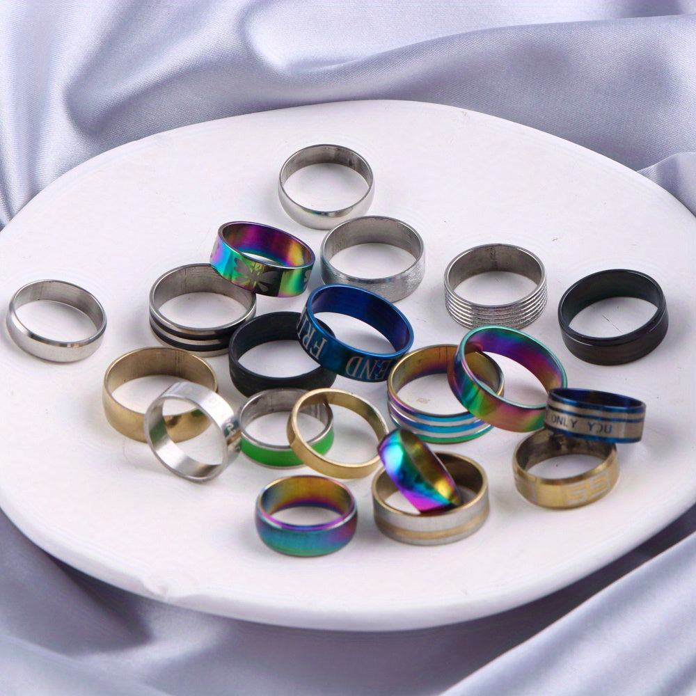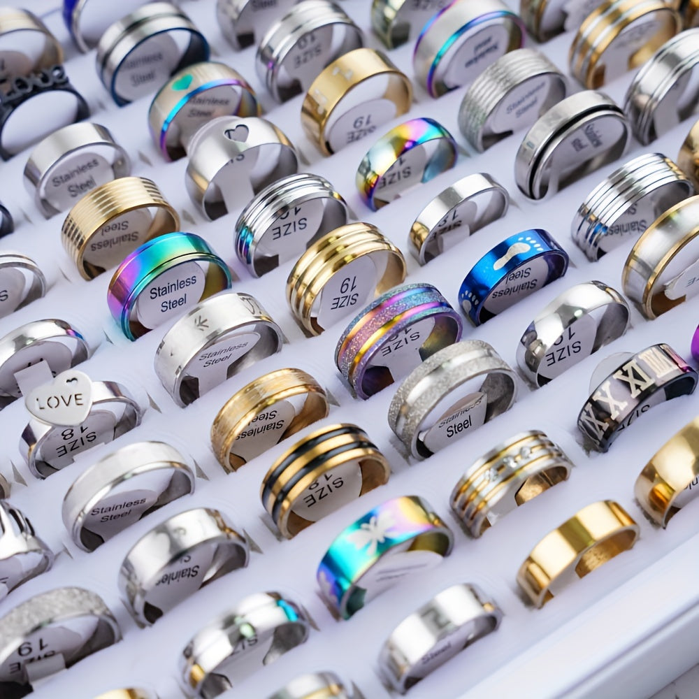 This lot includes 20 stainless steel rings with classic mixed styles that are perfect for weddings and parties.
