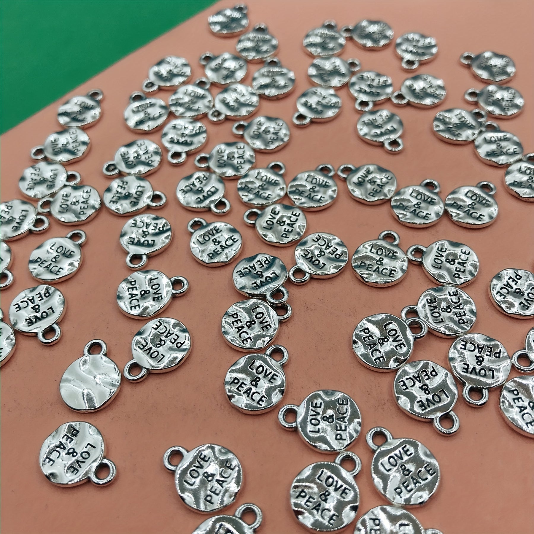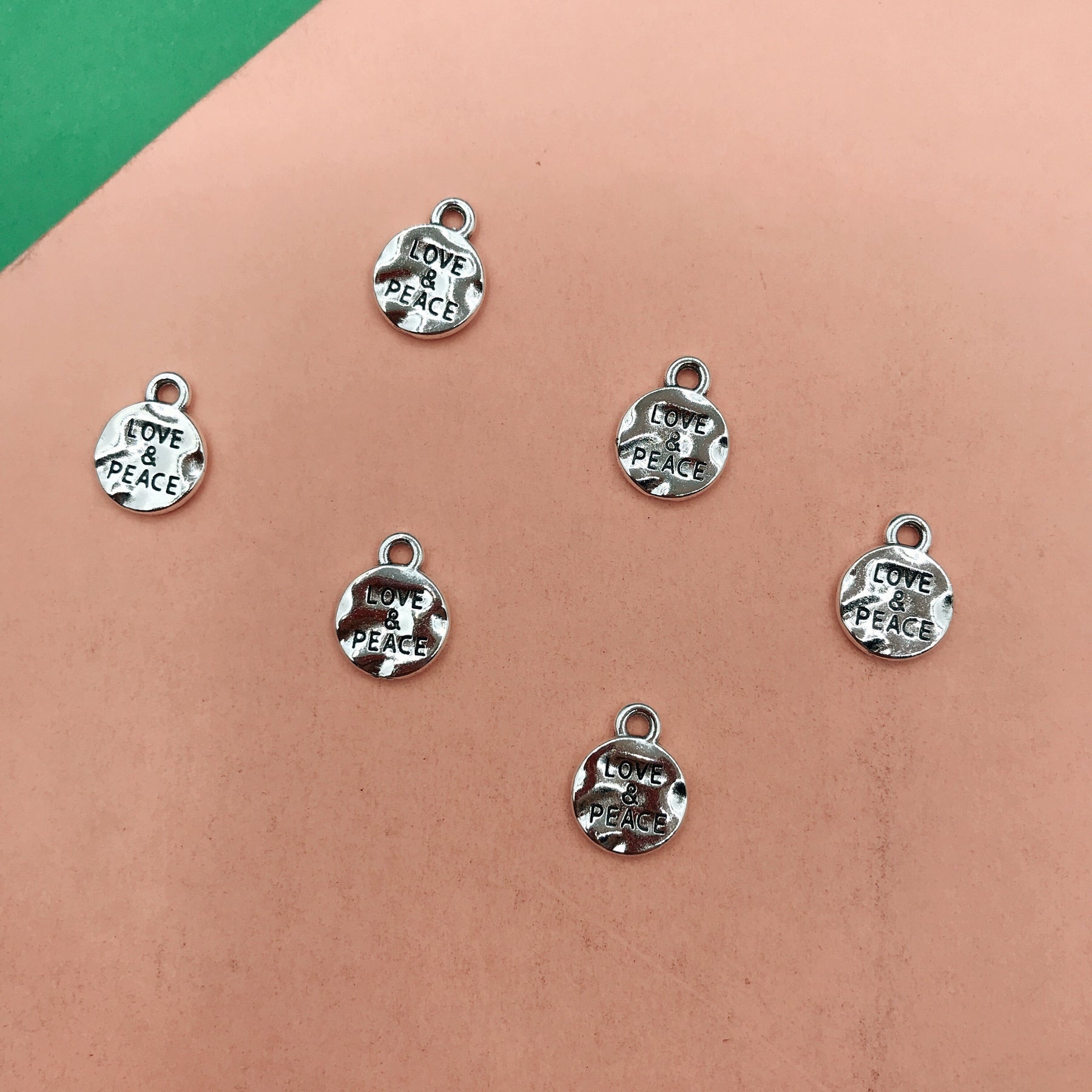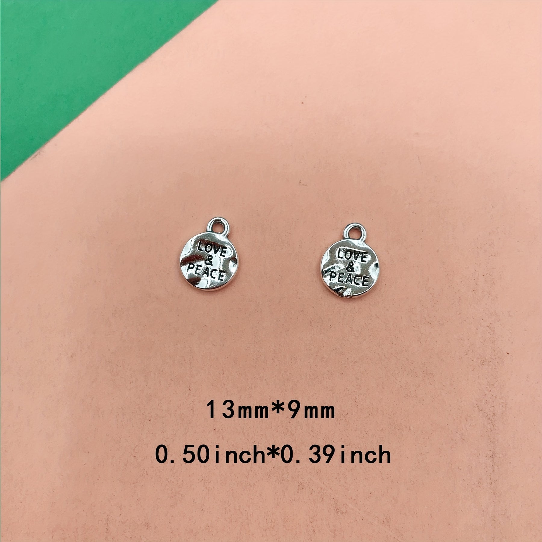 Enhance your bracelets, necklaces, earrings, and other jewelry with these 20pcs Love & Peace round pendants. Perfect for creating unique accessories.