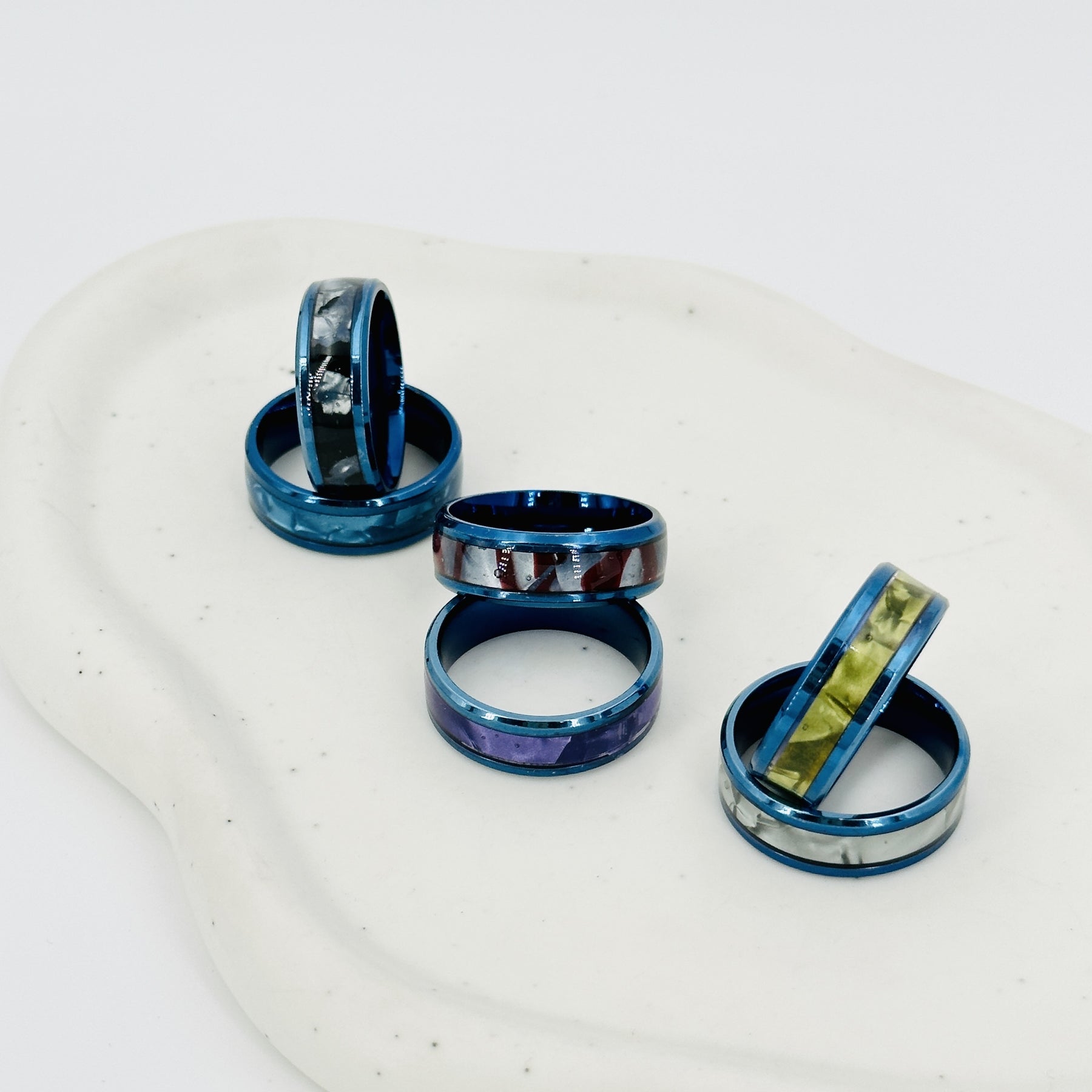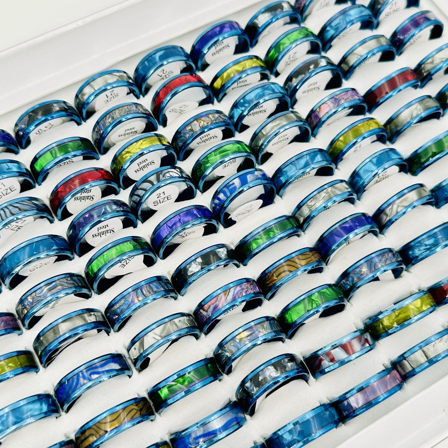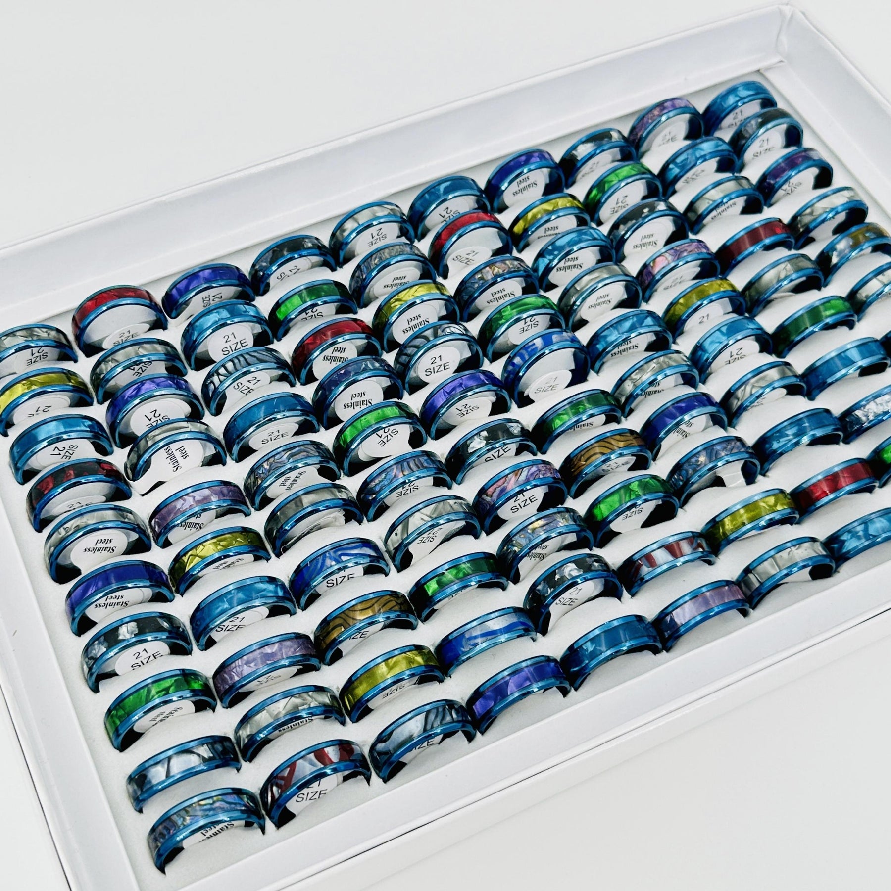 These rings are made of stainless steel with shell accents, perfect for everyday wear or special occasions. Ideal for birthdays, anniversaries, or any occasion.