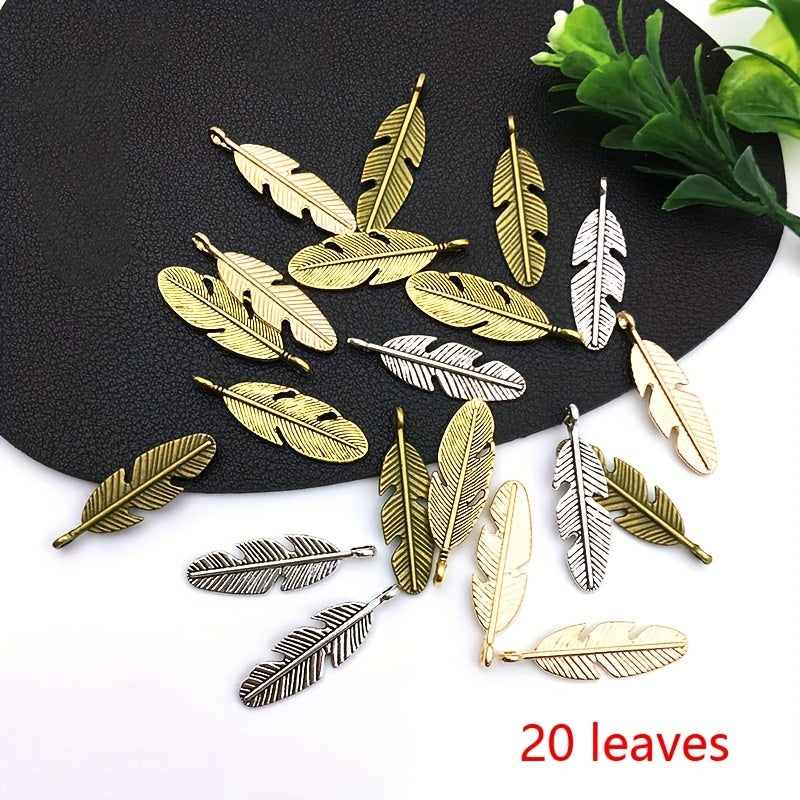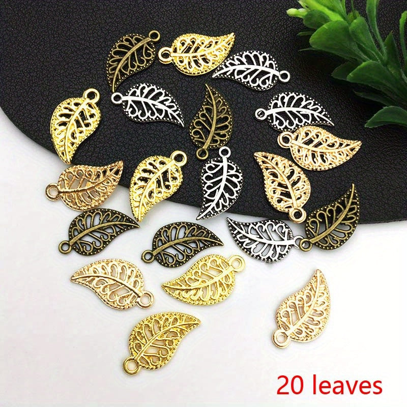 This set includes 20 zinc alloy mini leaf charm pendants, perfect for creating necklaces, bracelets, earrings, and other jewelry pieces. Ideal for DIY projects and crafting.