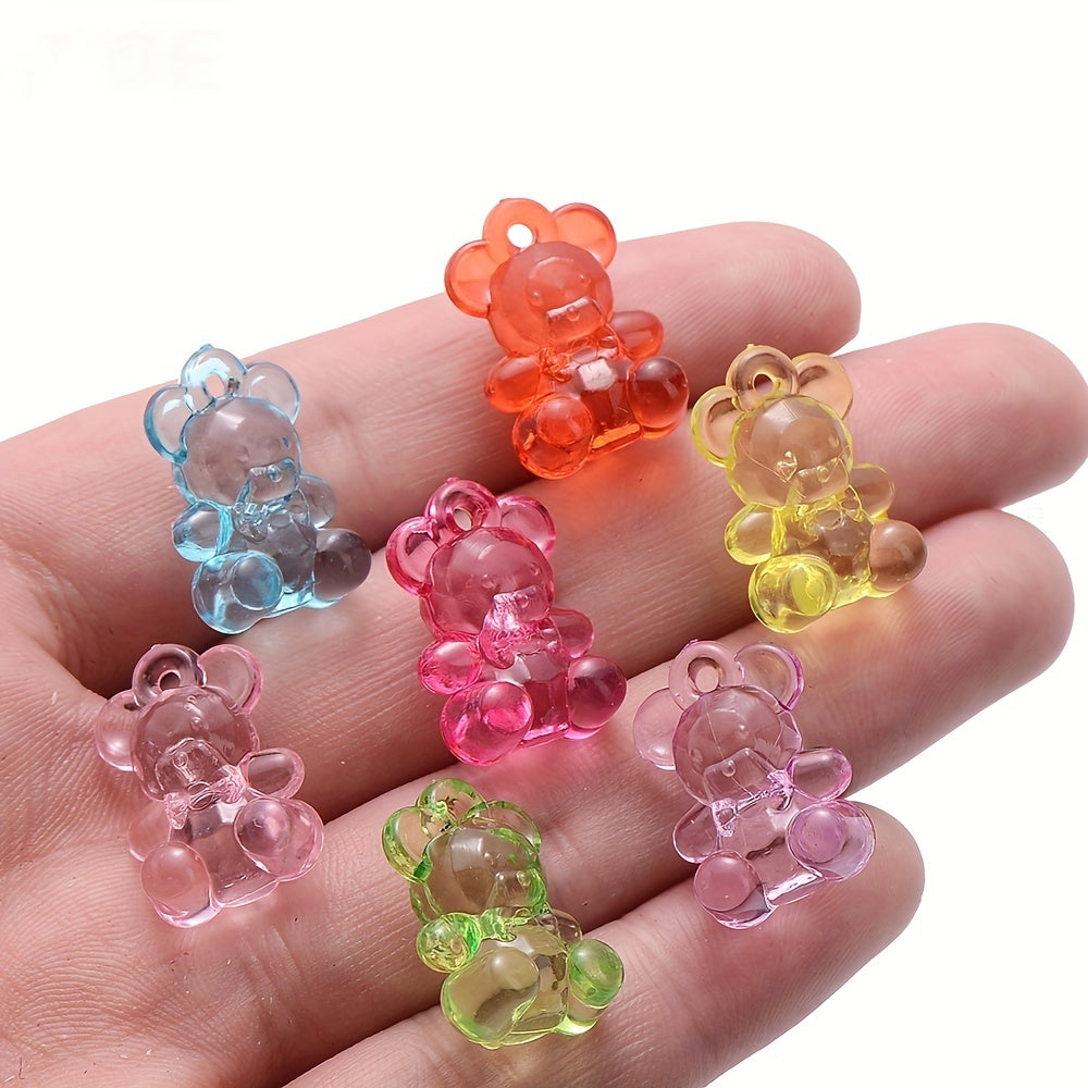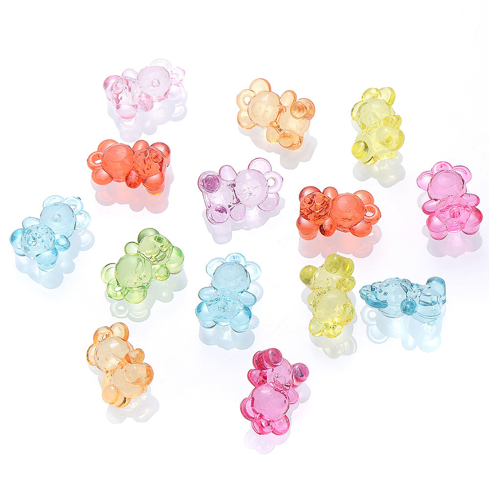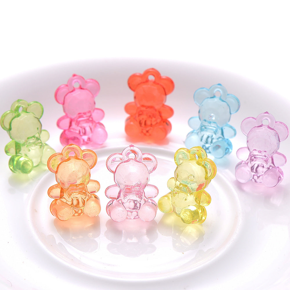 This set includes 20pcs of 19x13mm transparent cartoon bear acrylic beads, perfect for creating bracelets, necklaces, pendants, and earrings.