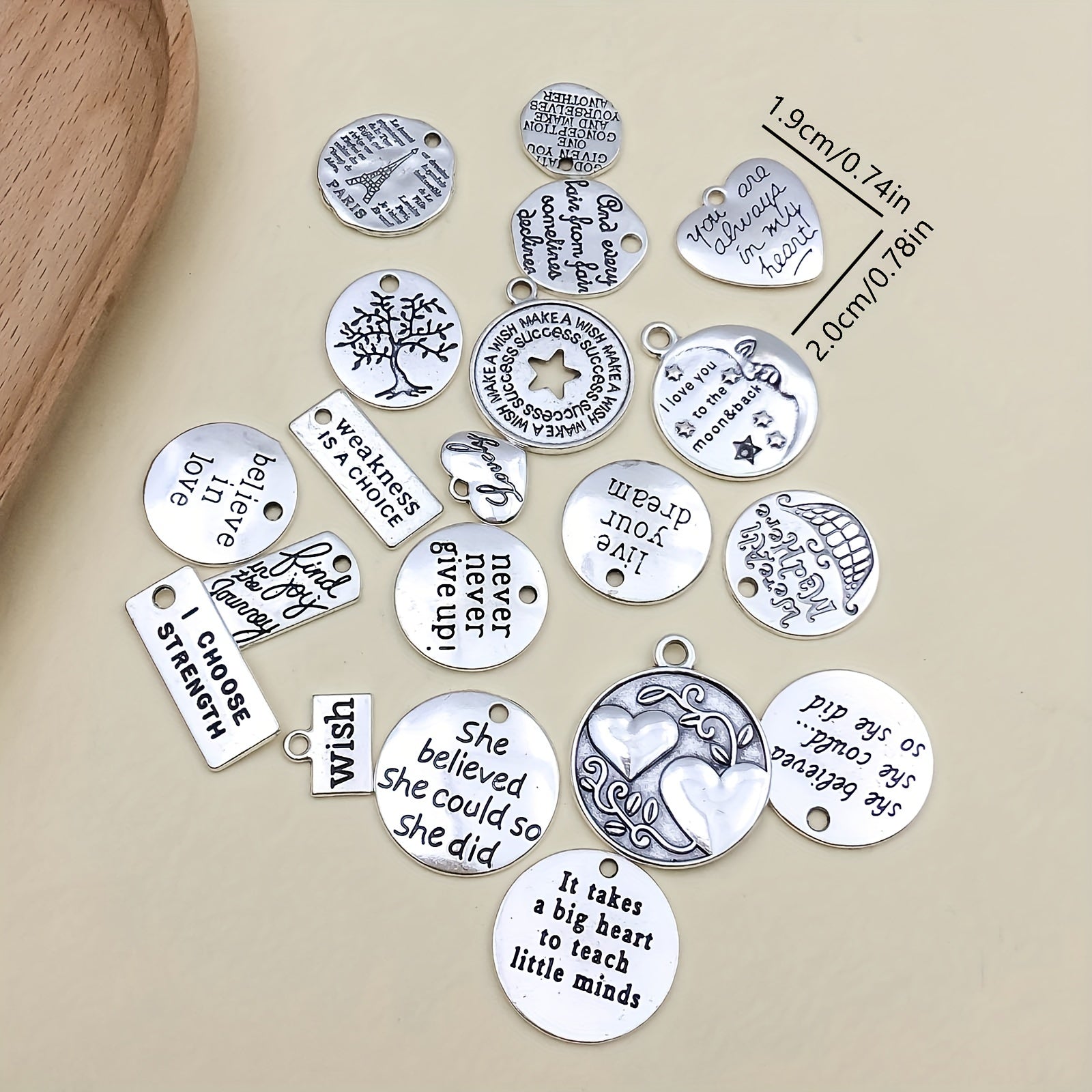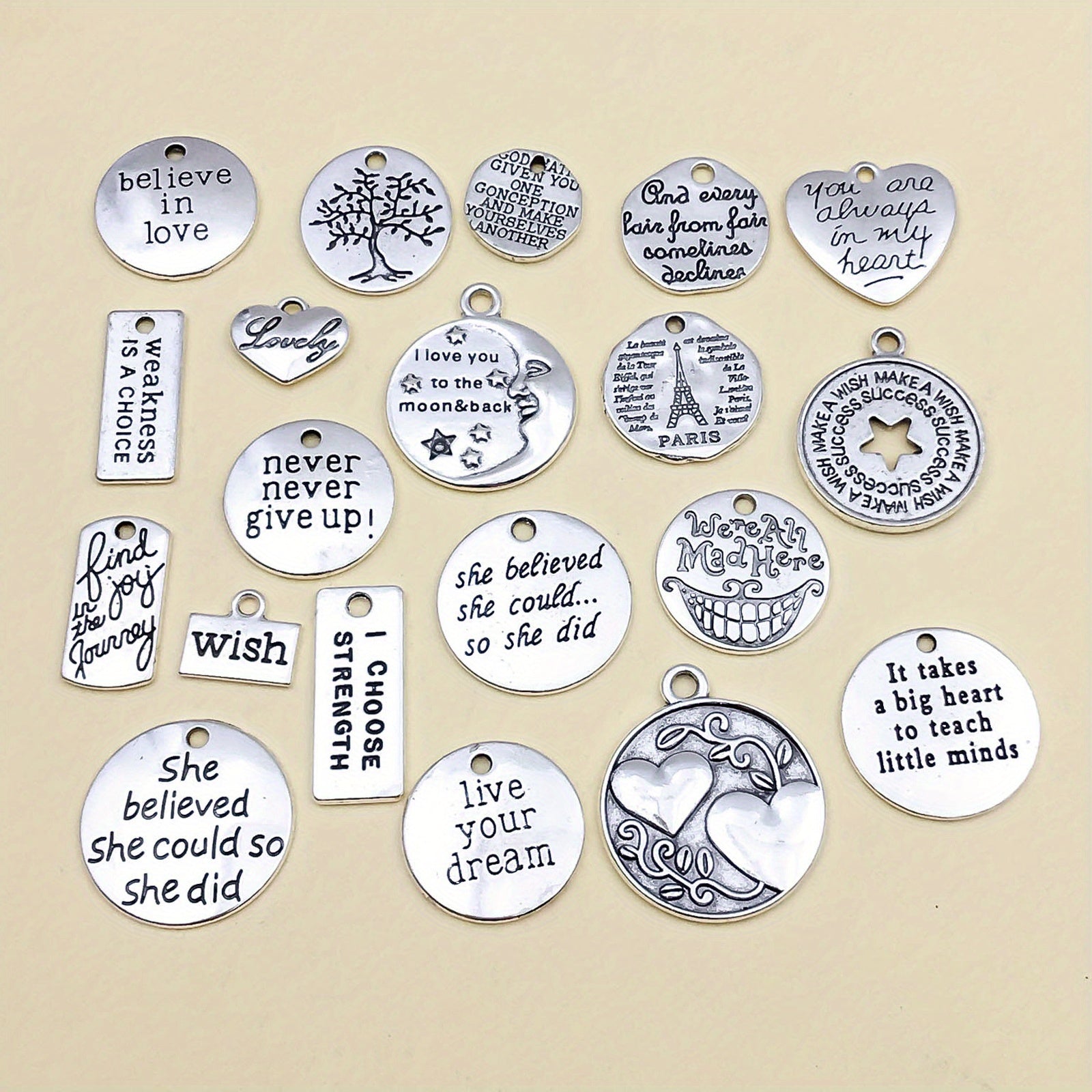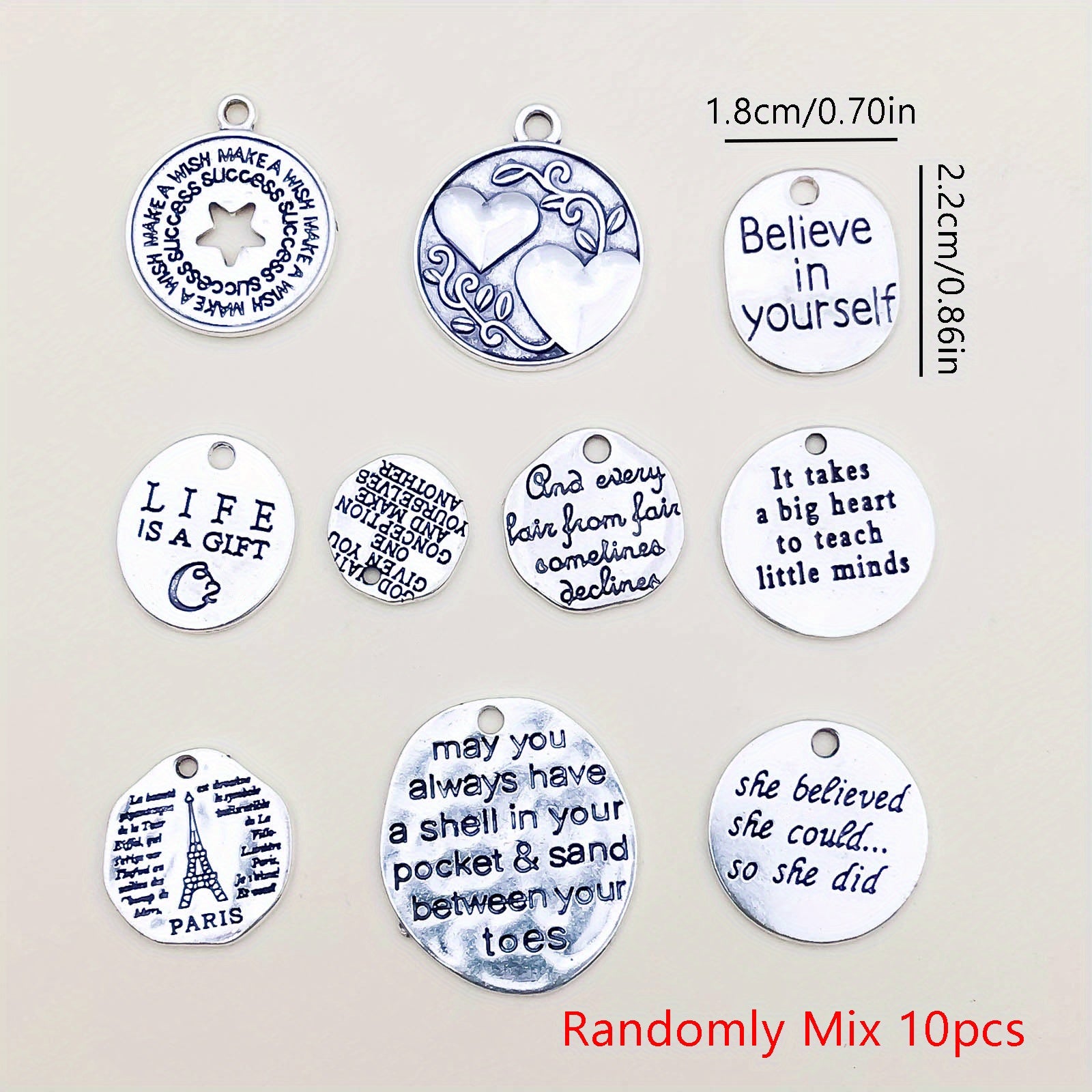 This set includes a random assortment of circular and square letter heart shaped charms. Perfect for creating necklaces, bracelets, earrings, and more.