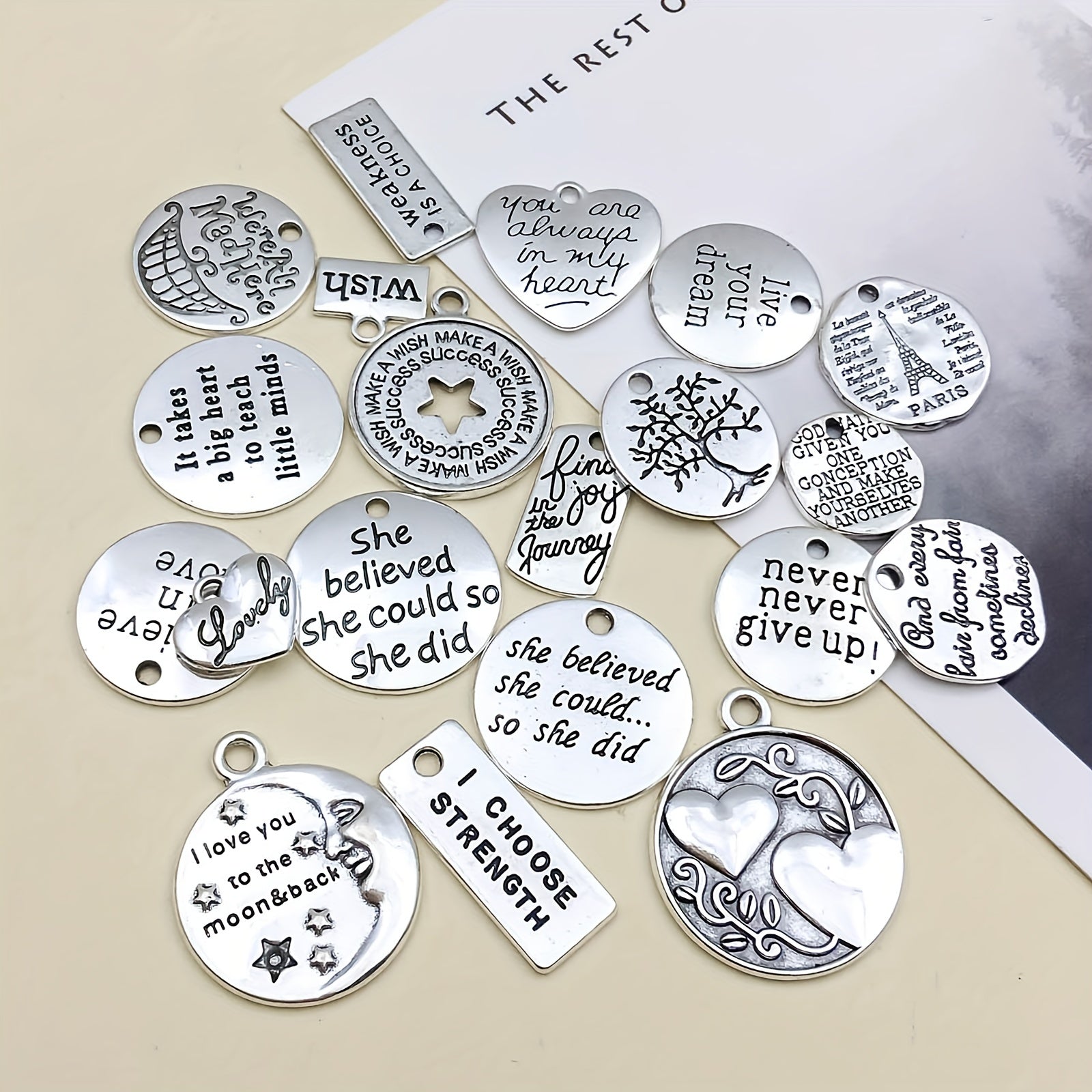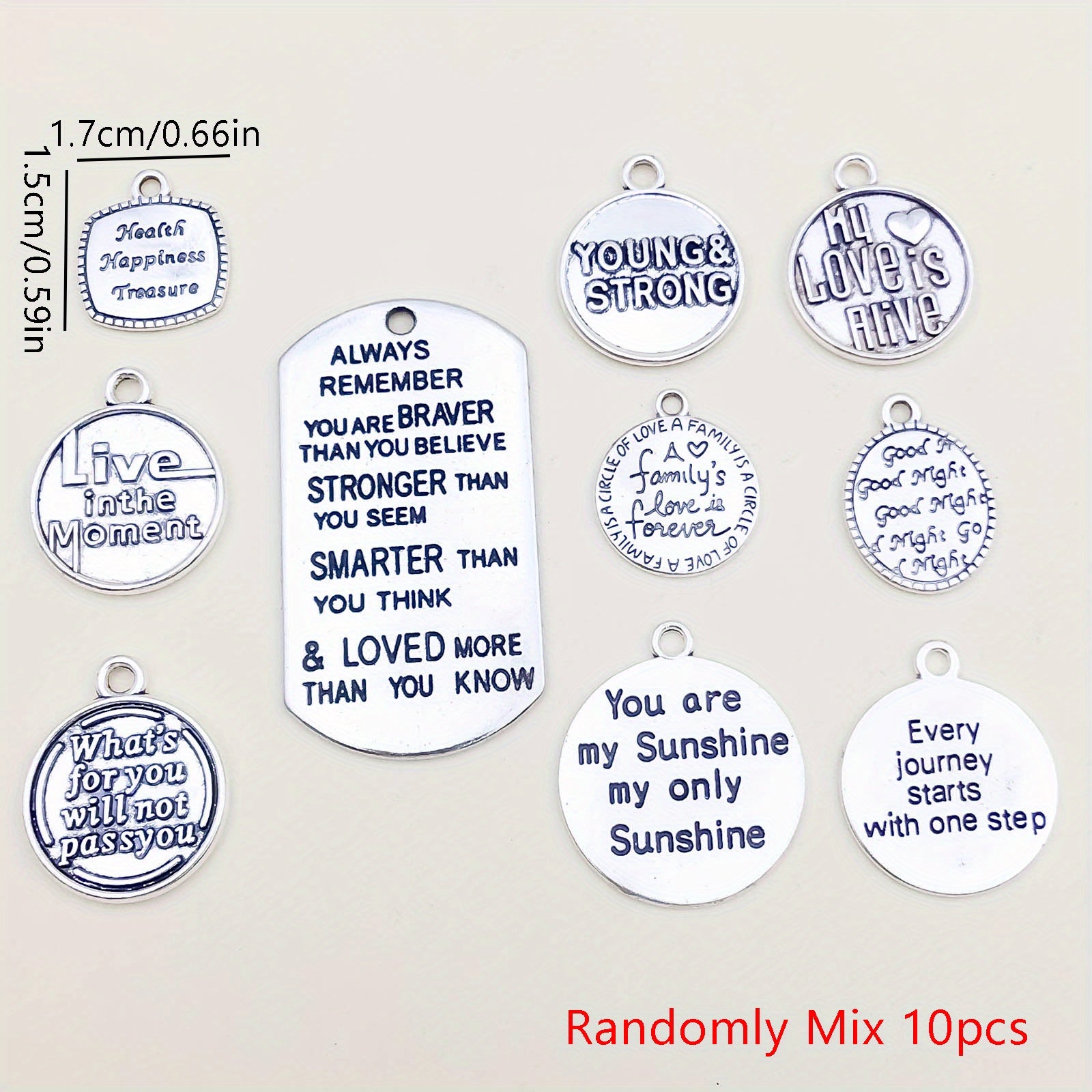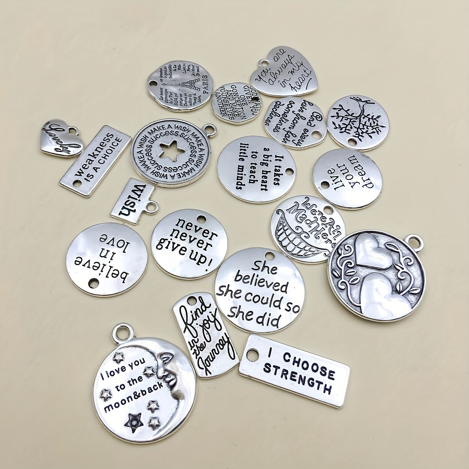 This set includes a random assortment of circular and square letter heart shaped charms. Perfect for creating necklaces, bracelets, earrings, and more.