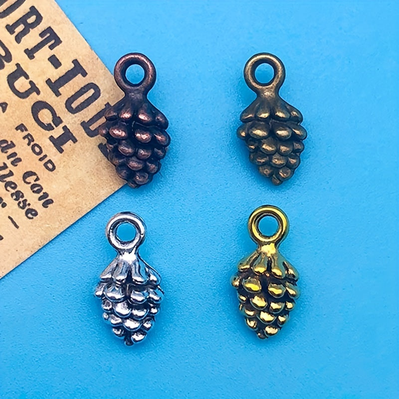 Enhance your jewelry collection with this set of 20 zinc alloy pine cone pendants. Perfect for creating necklaces, bracelets, and earrings. Add a touch of nature-inspired charm to your handmade accessories.