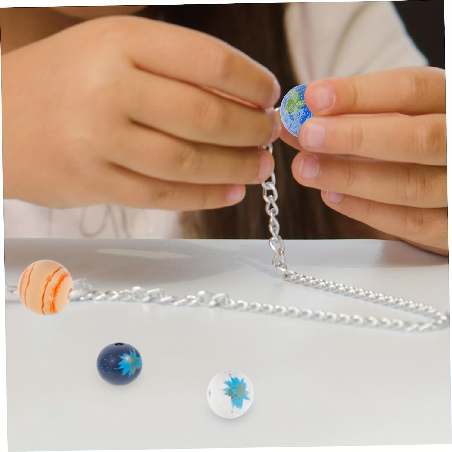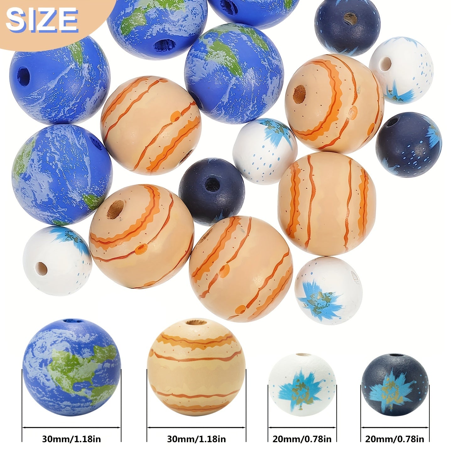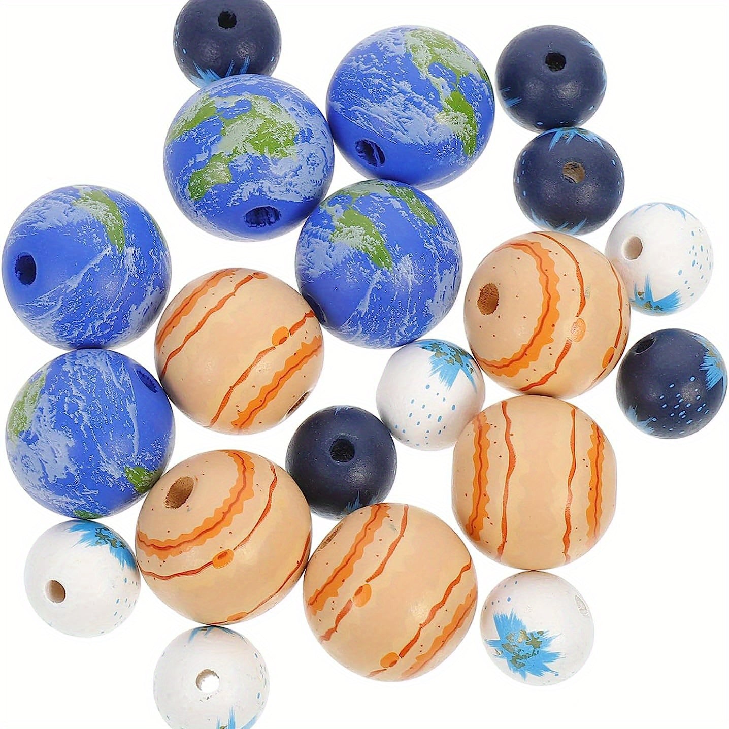 Enhance your jewelry making with this set of 20 planet pattern wooden beads. Perfect for creating unique earrings, bracelets, necklaces, and other accessories.